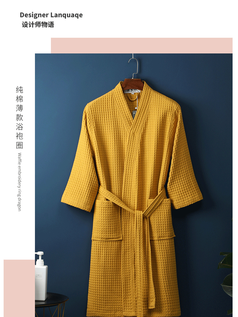 純棉浴袍春夏季薄款晨袍長款華夫格酒店美容院浴袍