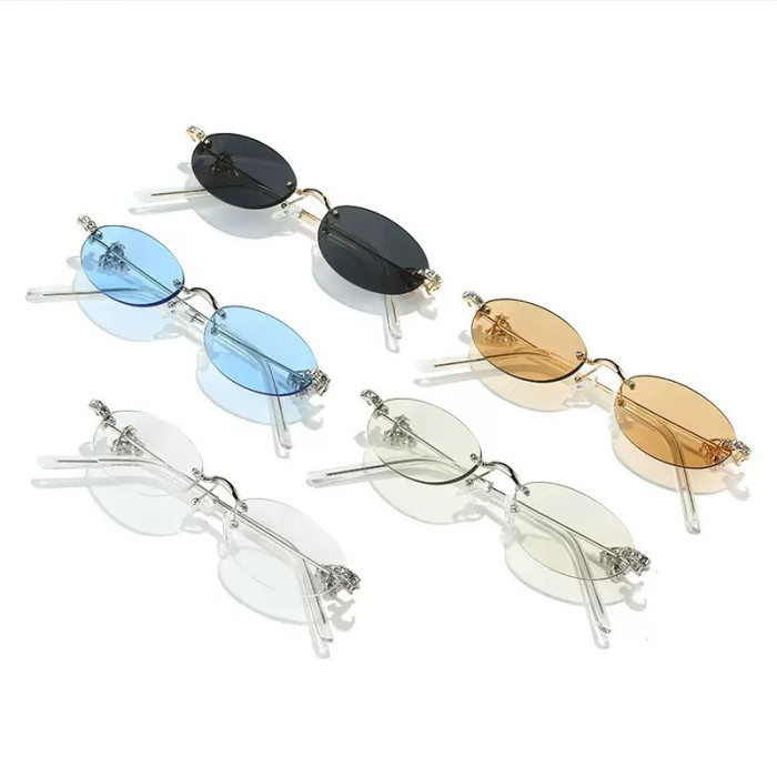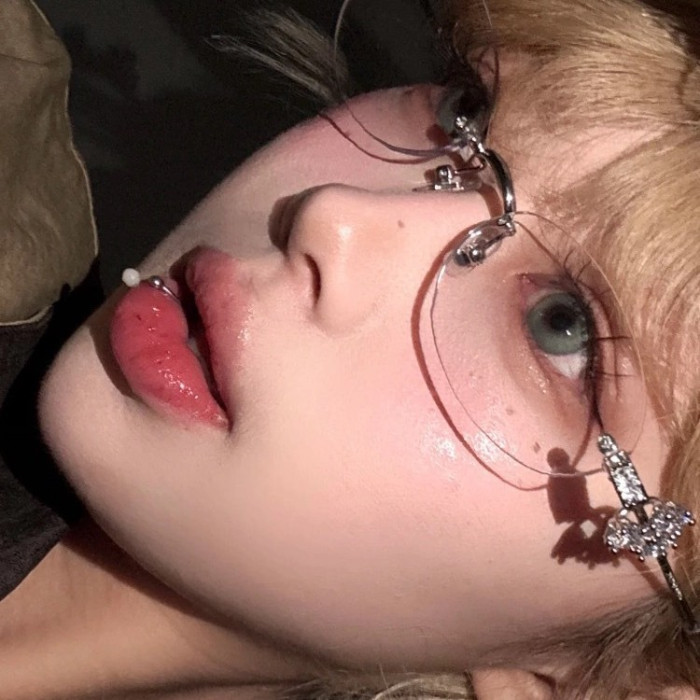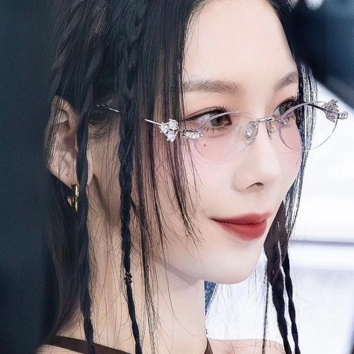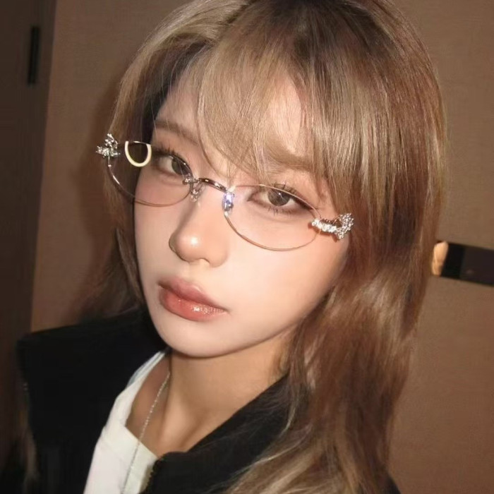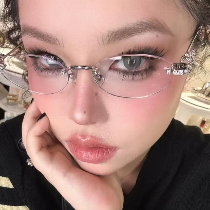 無邊框橢圓貓眼gm珠寶鑲鑽眼鏡女純欲高智感素顔防藍光拍照裝飾鏡