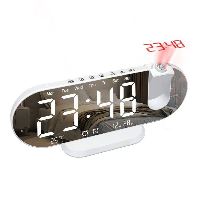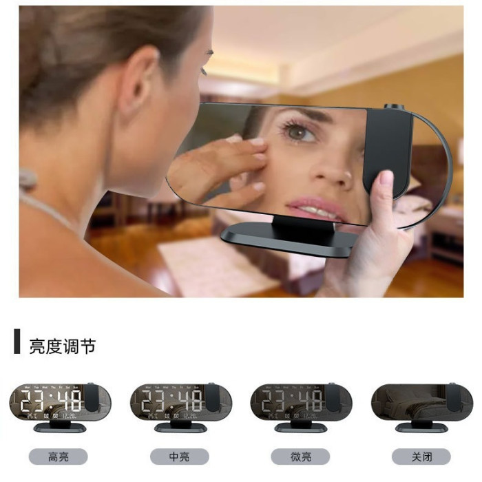 RGB多功能收音機投影鍾創意LED閙鍾溫溼度數字投影時鍾鏡面電子鍾