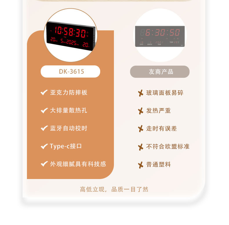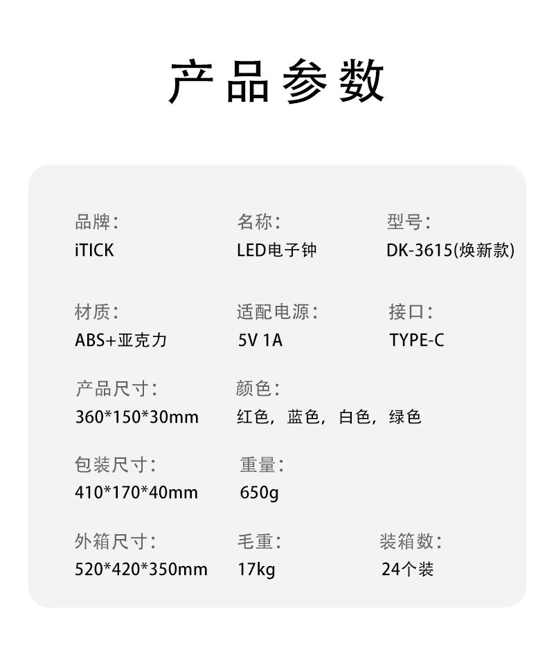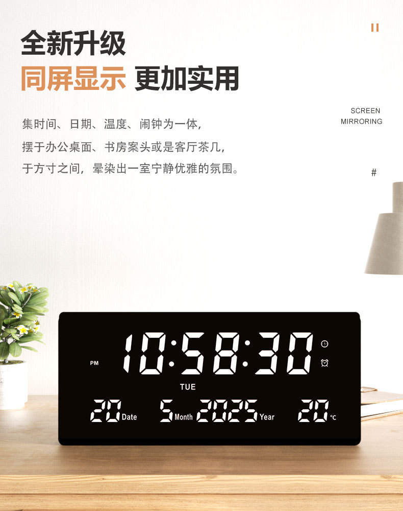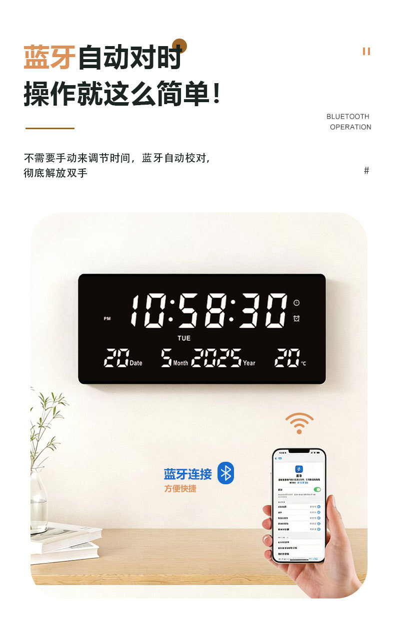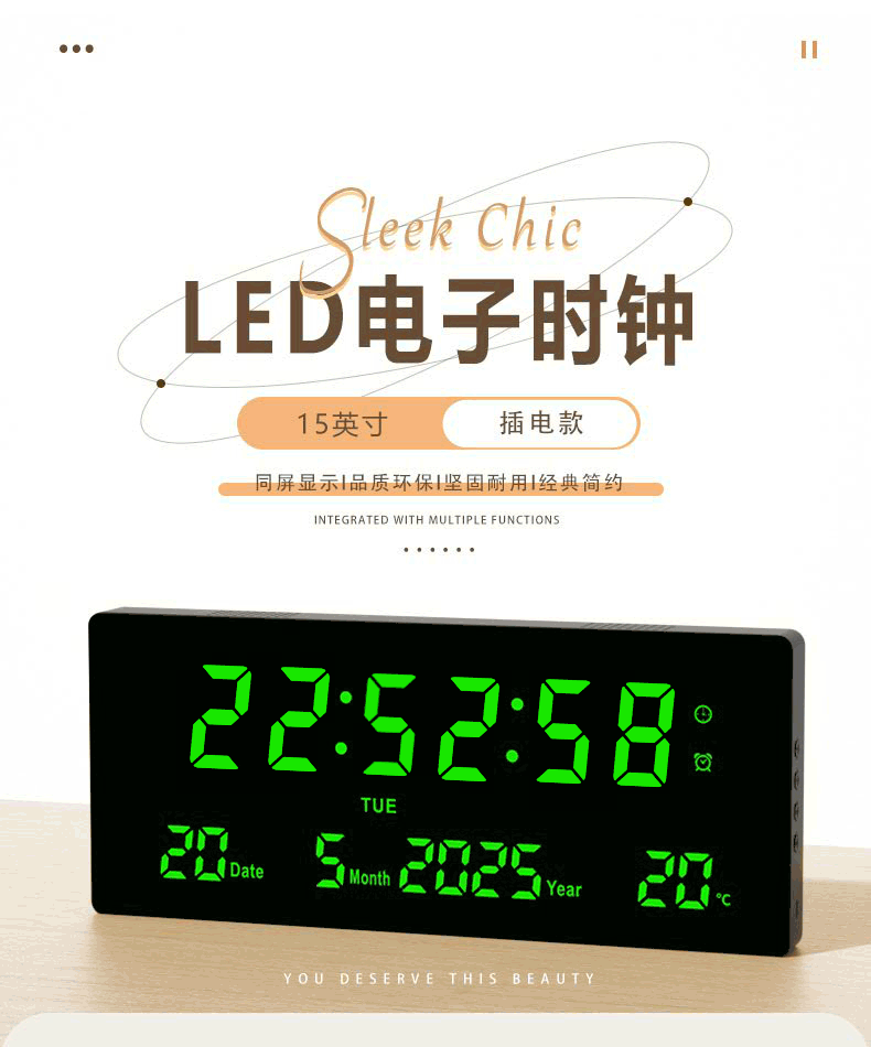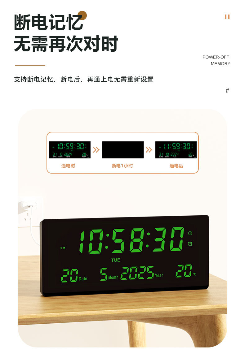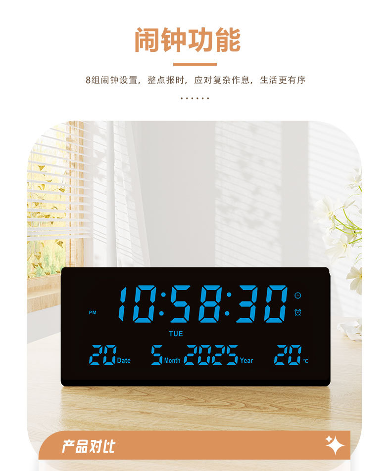 15英寸大屏led電子時鐘數字掛鍾客廳萬年歷中文藍牙3615煥新款