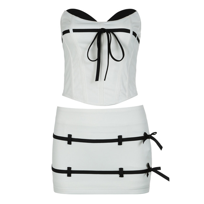MSYOUCAN法式撞色包臀蝴蝶結系帶