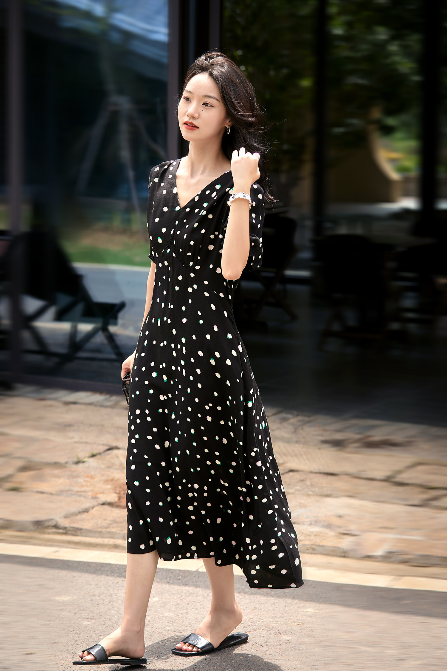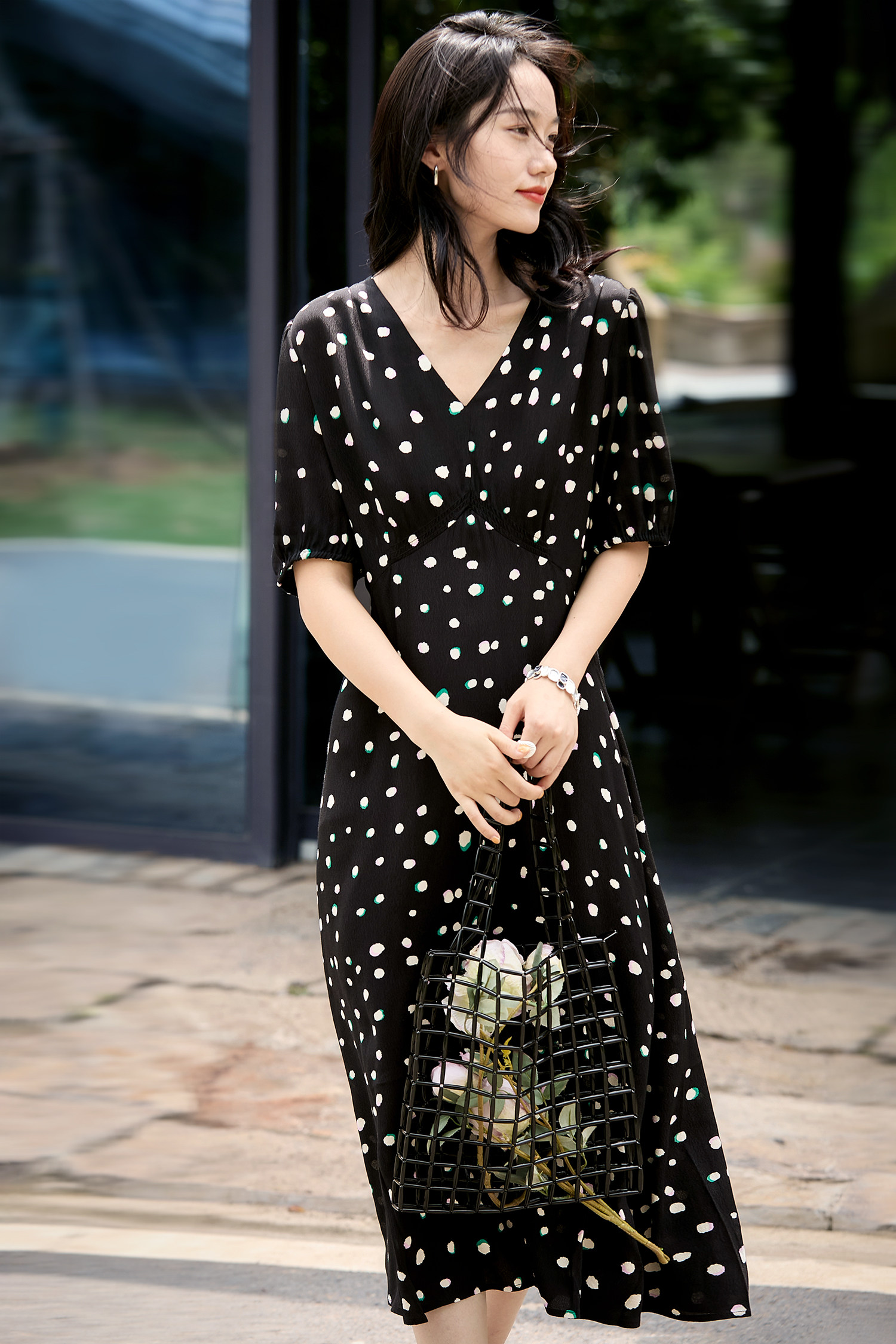 溫柔花海~漫舞裙!優雅法式風/花瓣印花氣質V領連衣裙新笑涵閣の