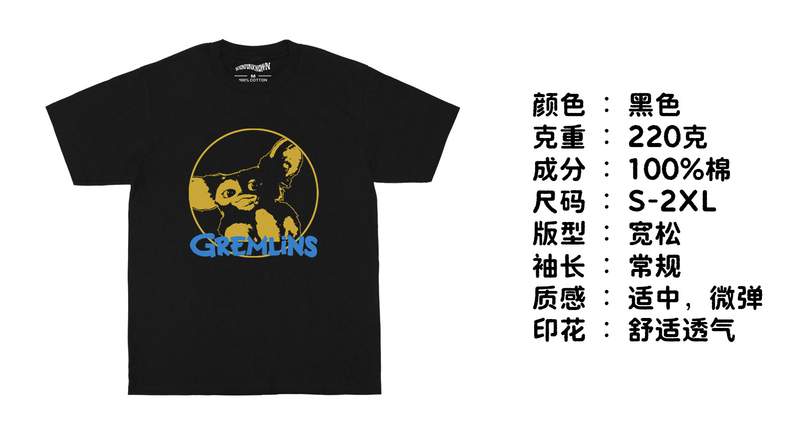 小精霛Gremlins搗蛋鬼捉鬼敢死隊純棉圓領印花短袖日常休閒男T恤
