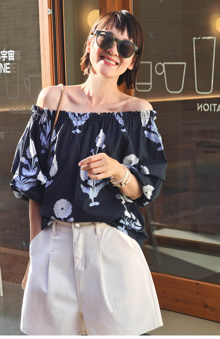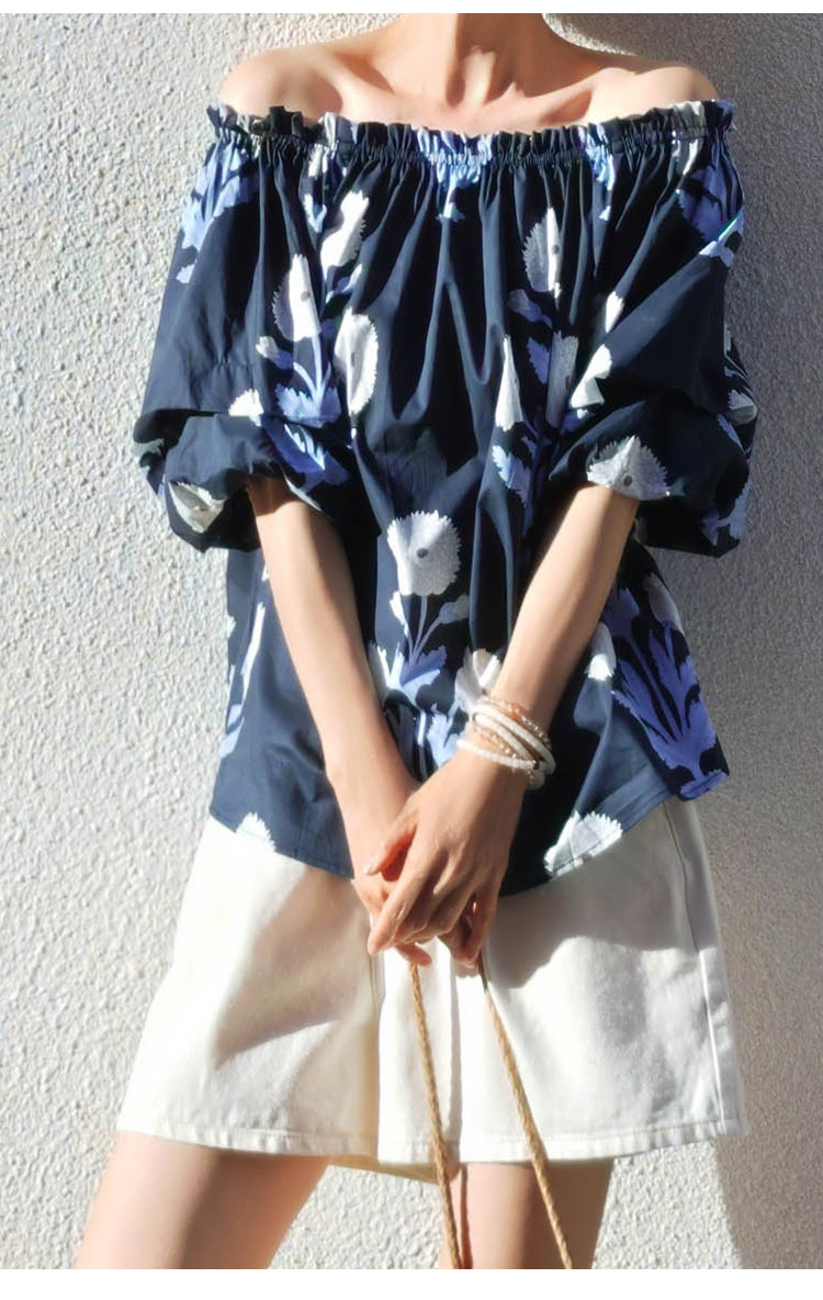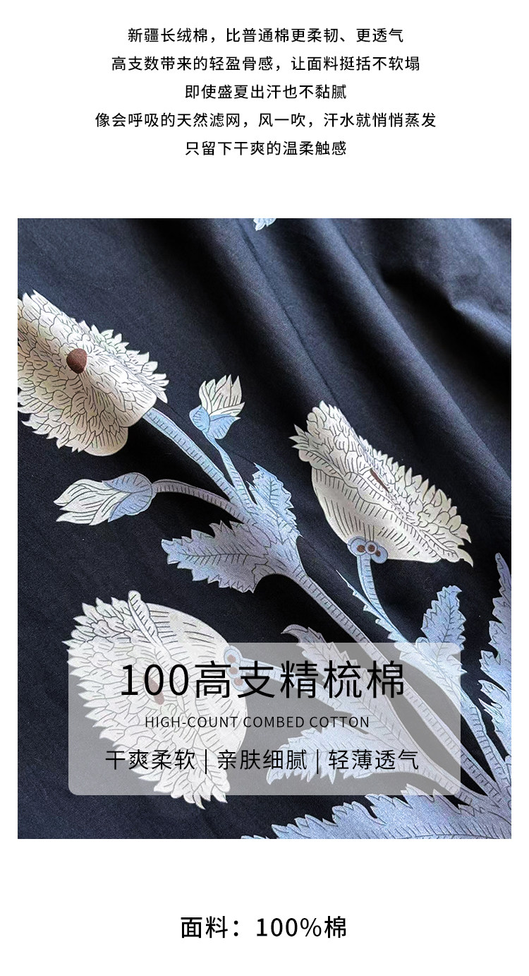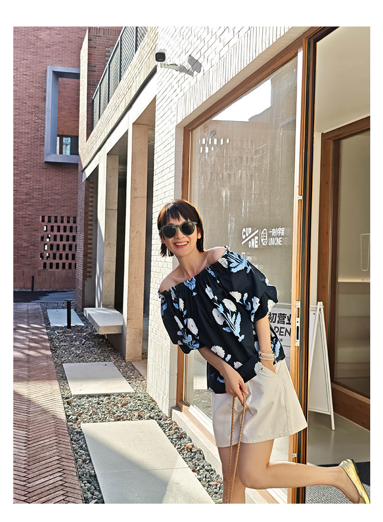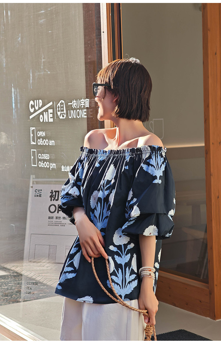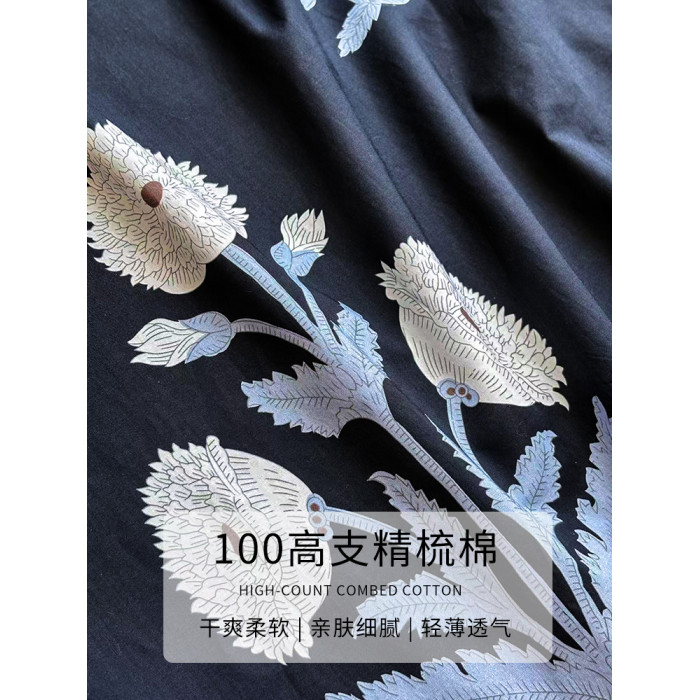 輕城蘇小糖|法式復古植物印染連衣裙女夏季寬鬆泡泡短袖印花長裙