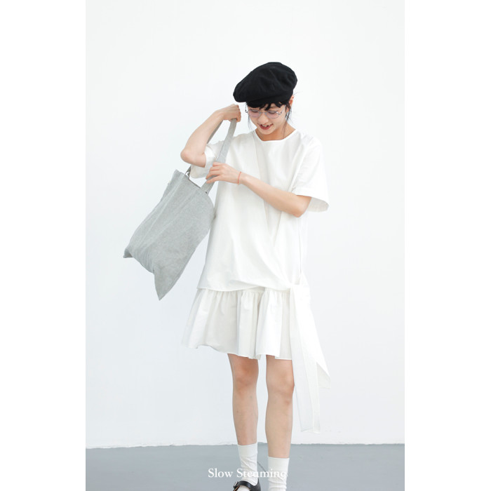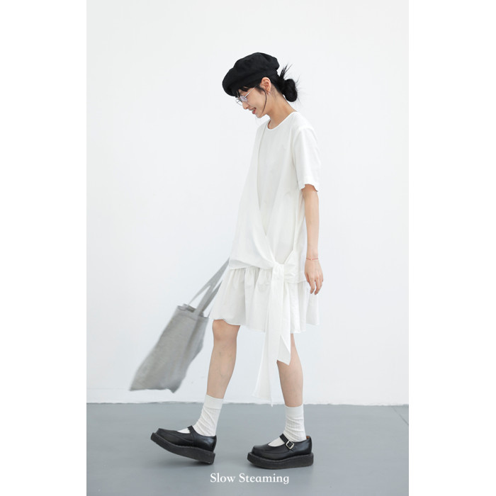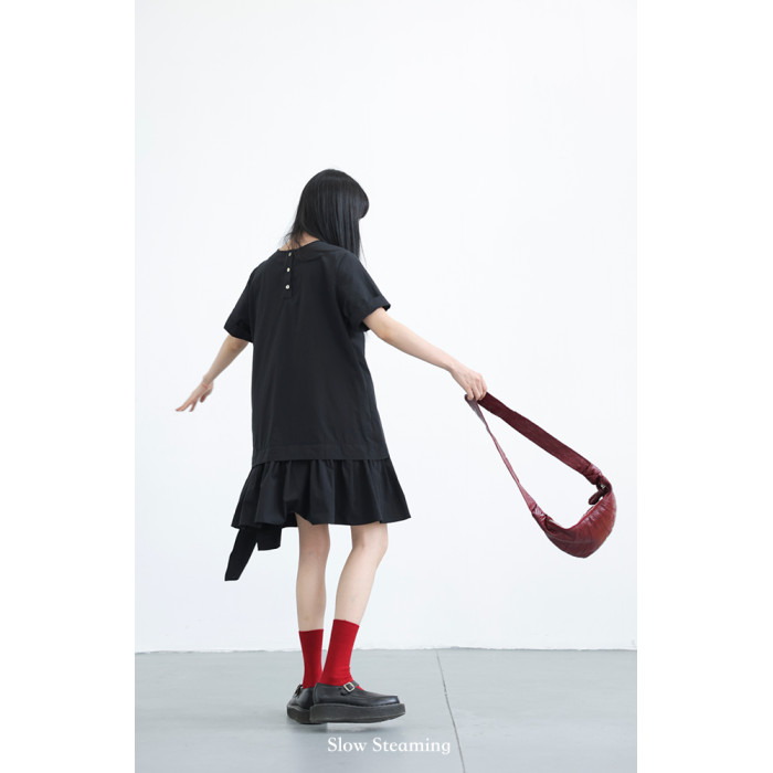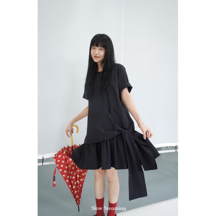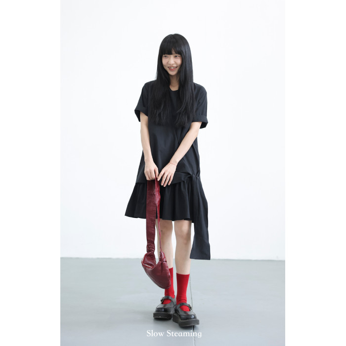 Slow Steaming“野趣2.0”原創設計感短袖寬松黑色系帶顯瘦連衣裙