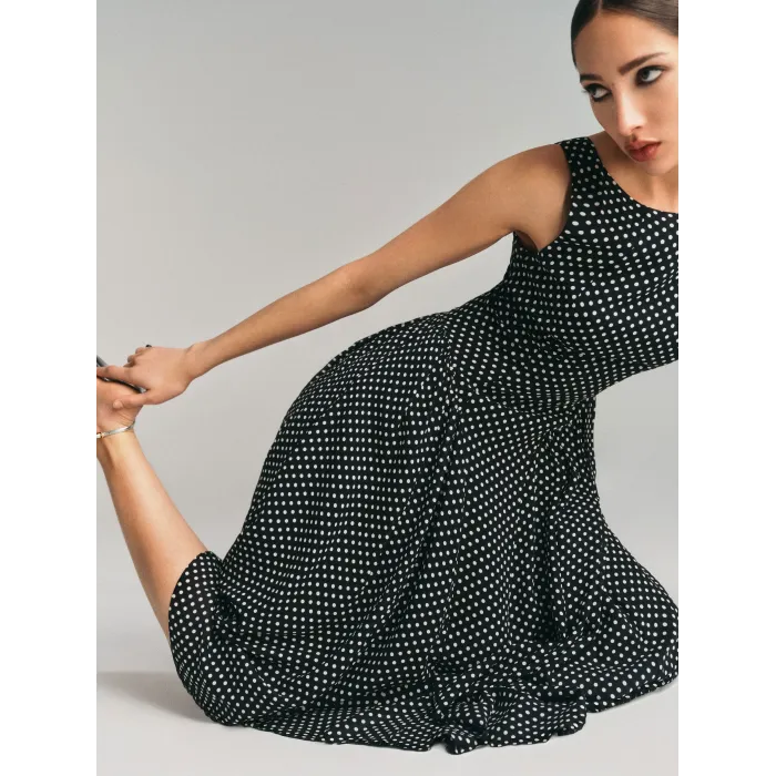 歸己-新款reformation無袖黑色波點赫本風連衣裙收腰長裙顯瘦女夏