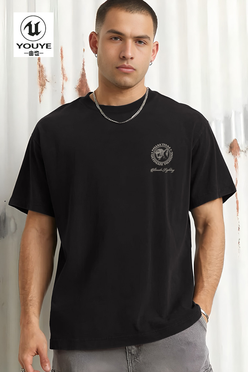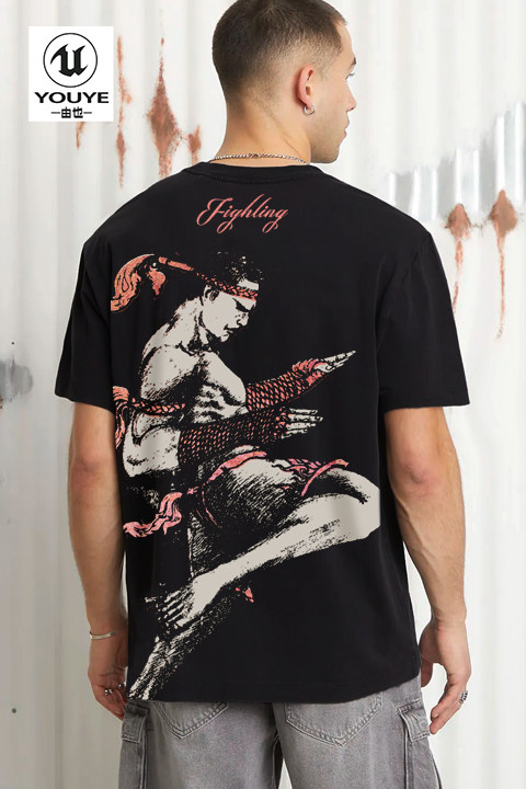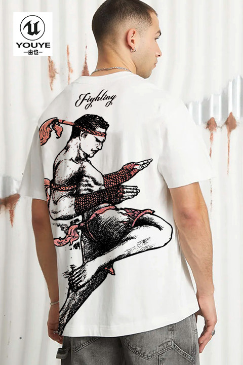 由也 古泰拳飛膝健身MMA創意散打運動純棉男T恤美式復古潮牌短袖