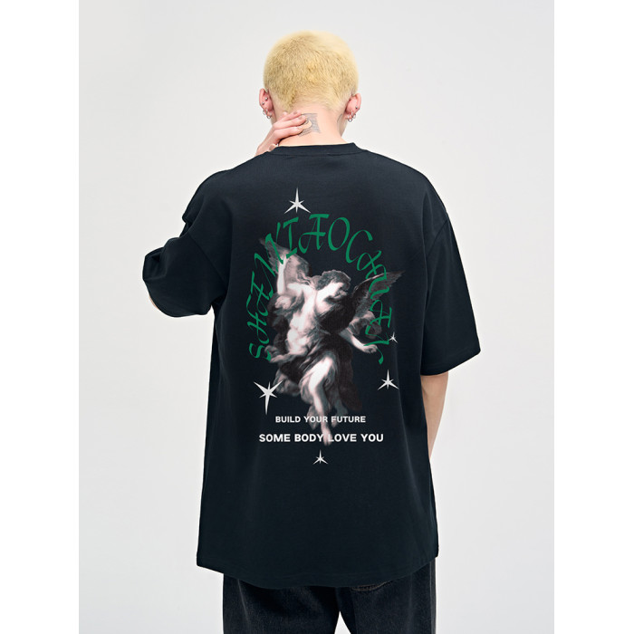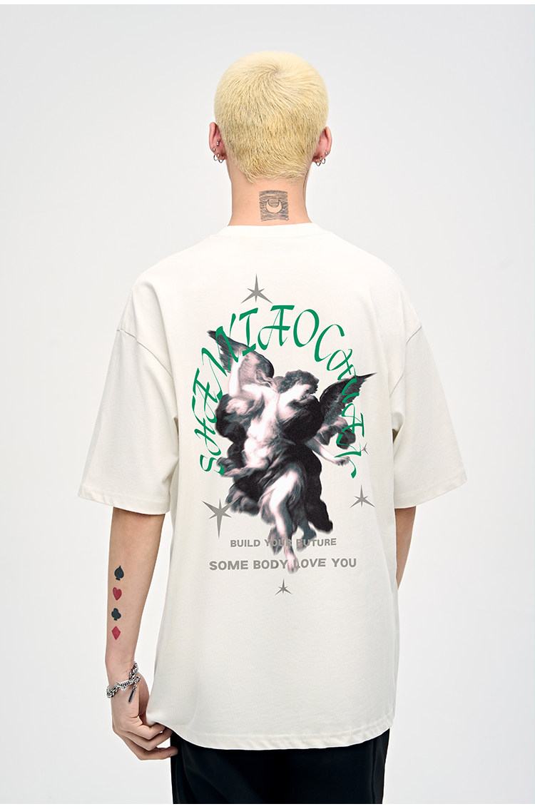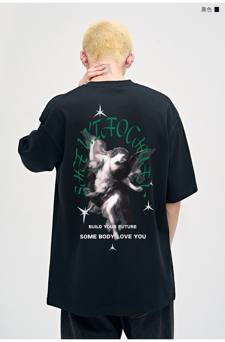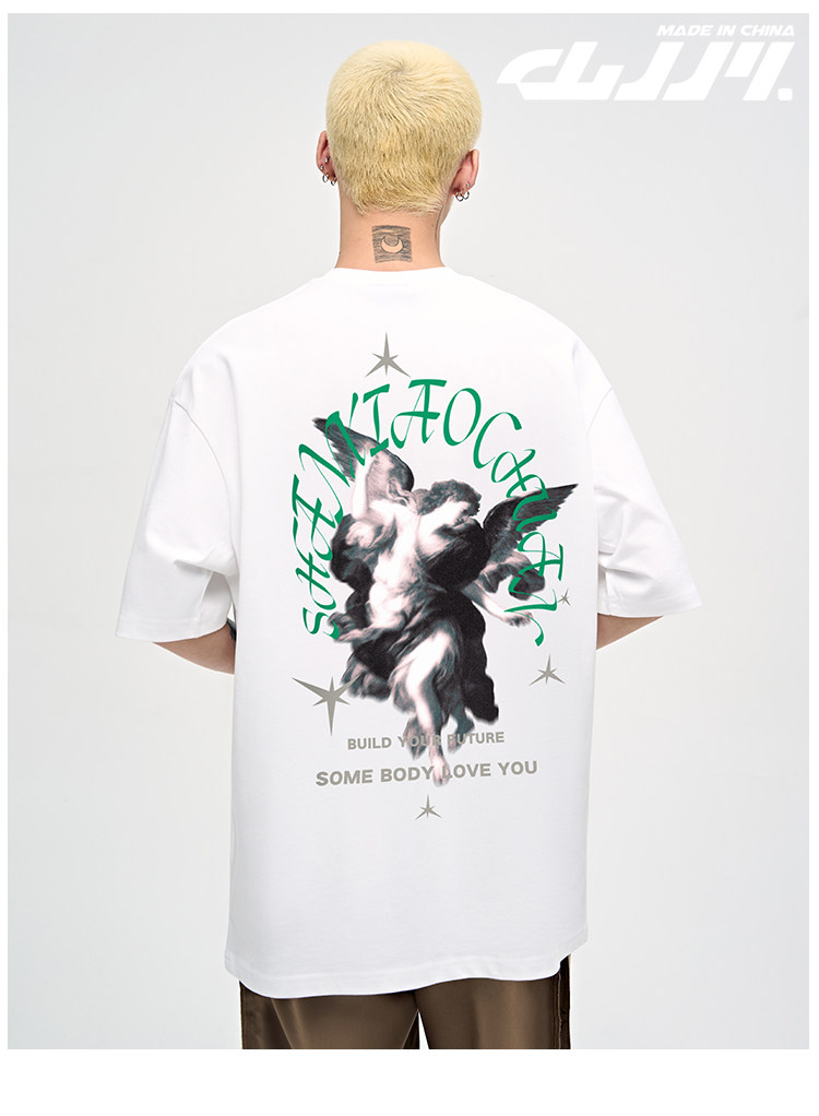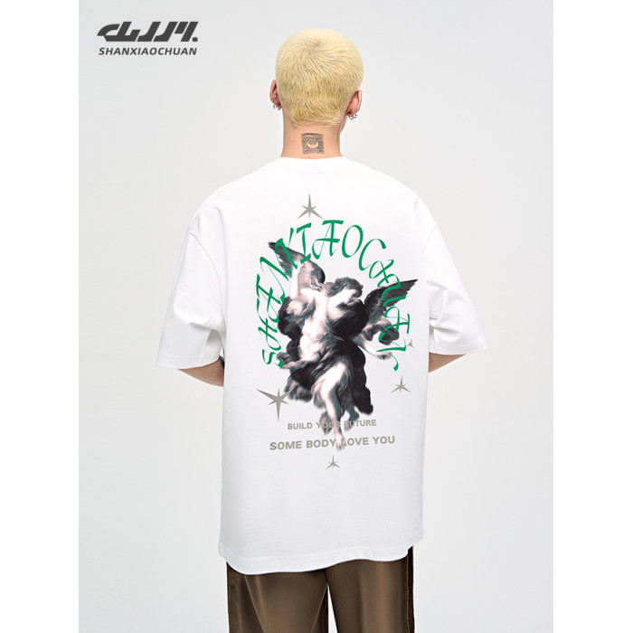 山小川潮牌夏季美式印花上衣短袖男t恤純棉潮流男生體恤情侶裝