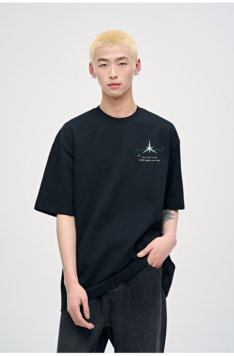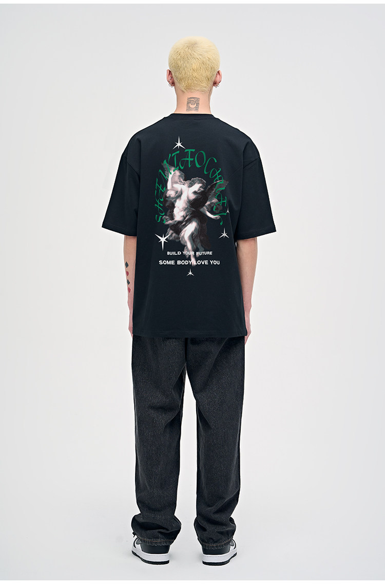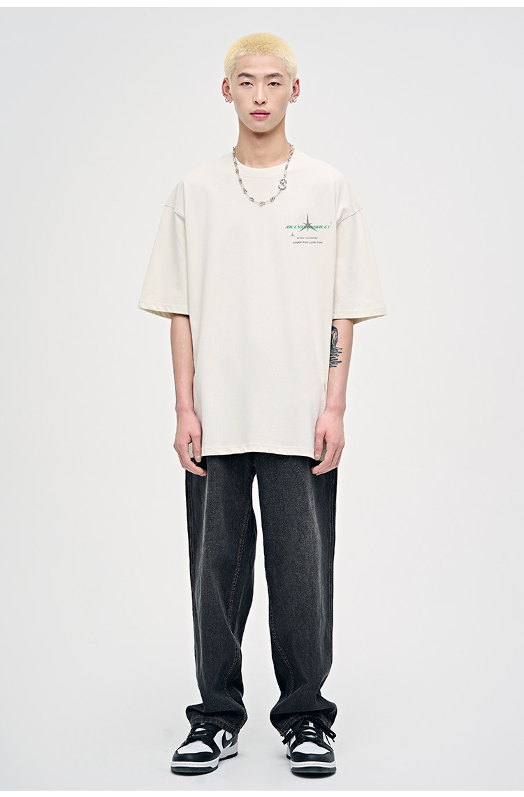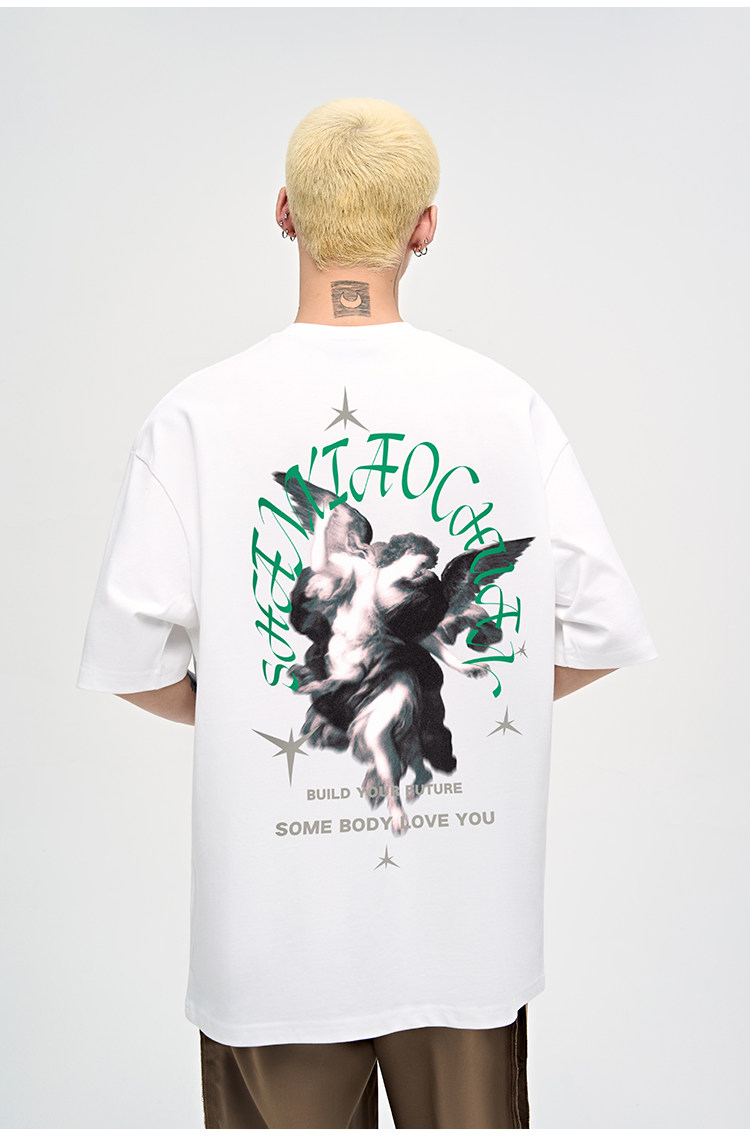 山小川潮牌夏季美式印花上衣短袖男t恤純棉潮流男生體恤情侶裝