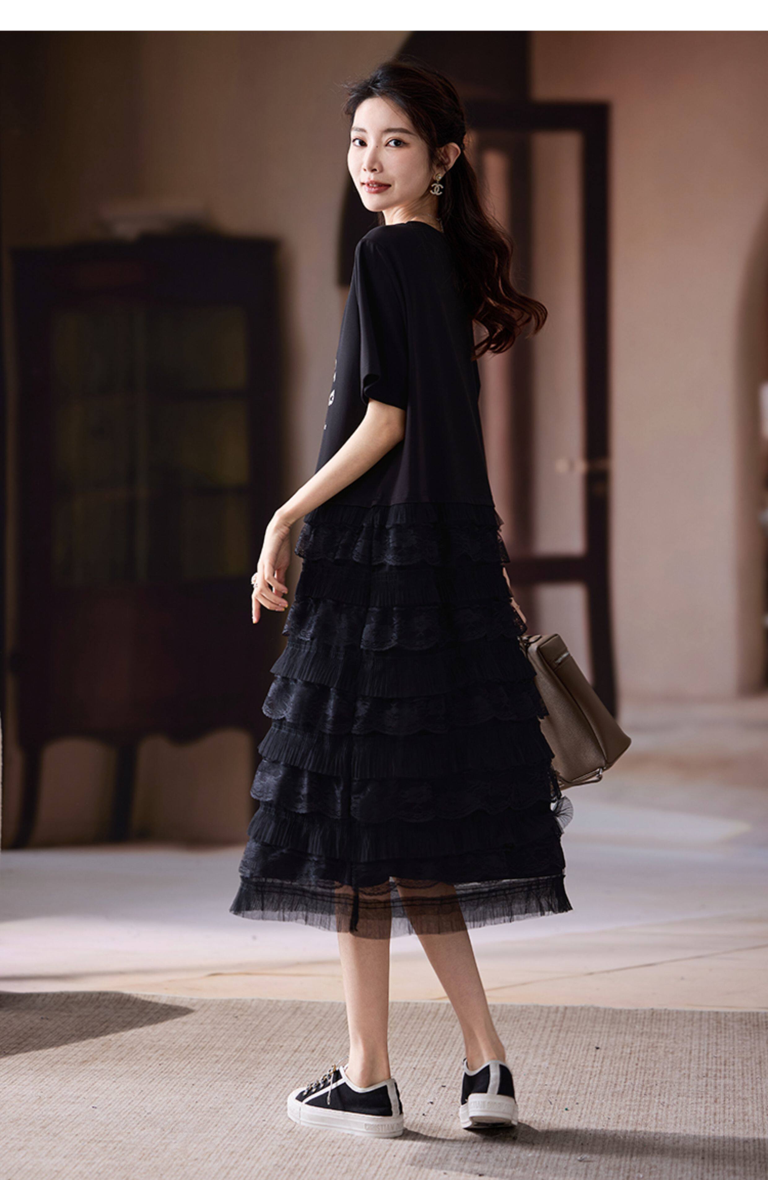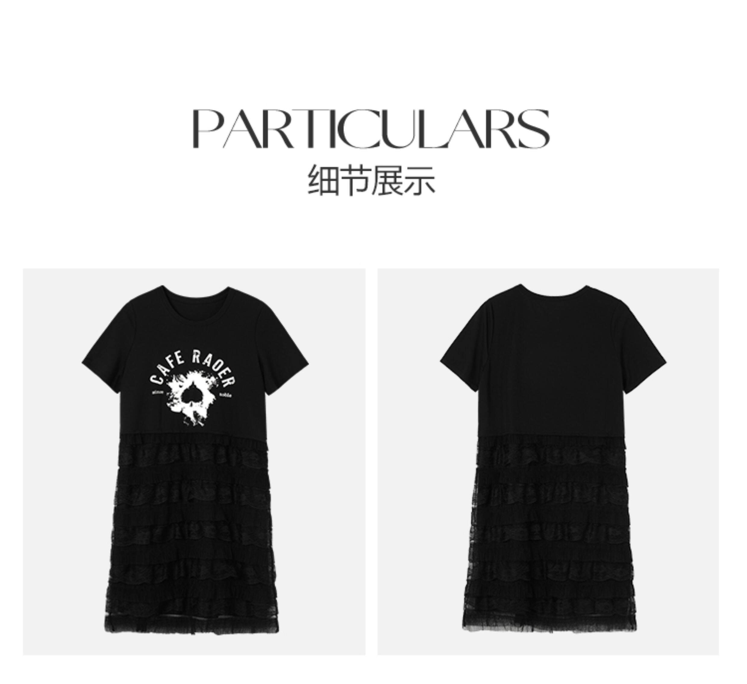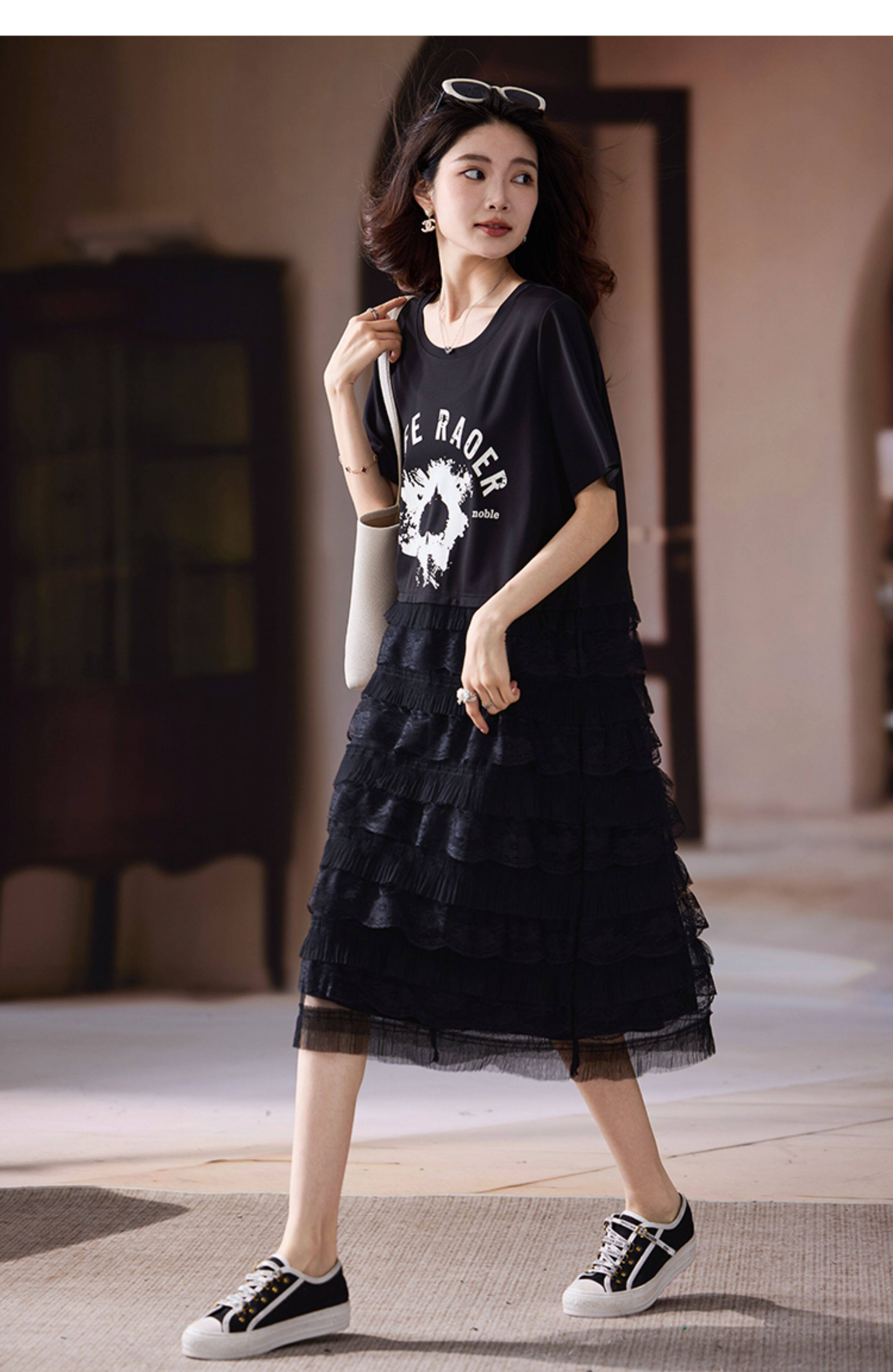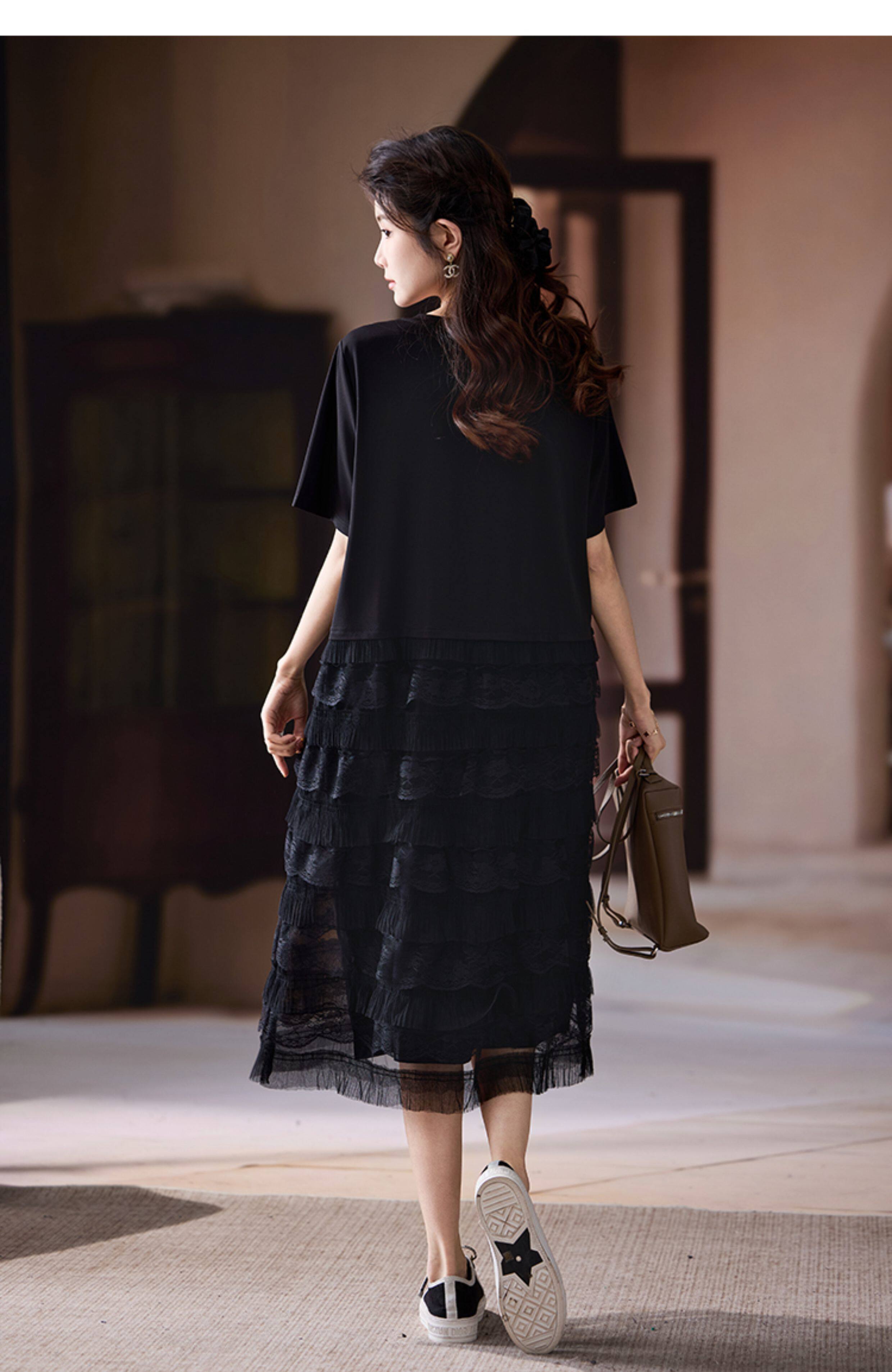 素木蕾絲拼接印花連衣裙女夏季2025年新款大碼a字裙歐貨時尚裙子