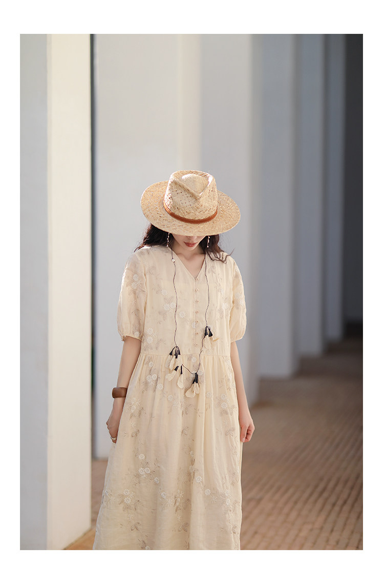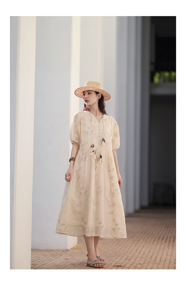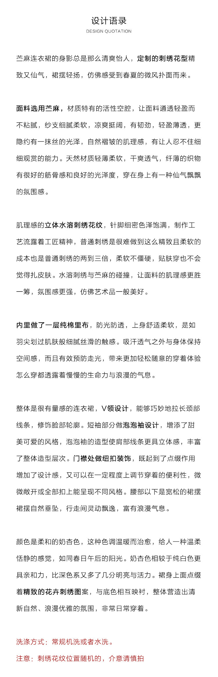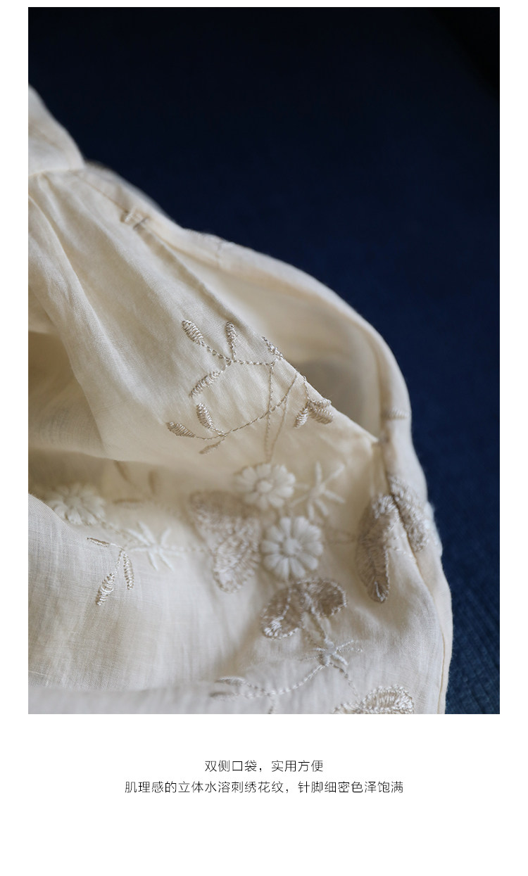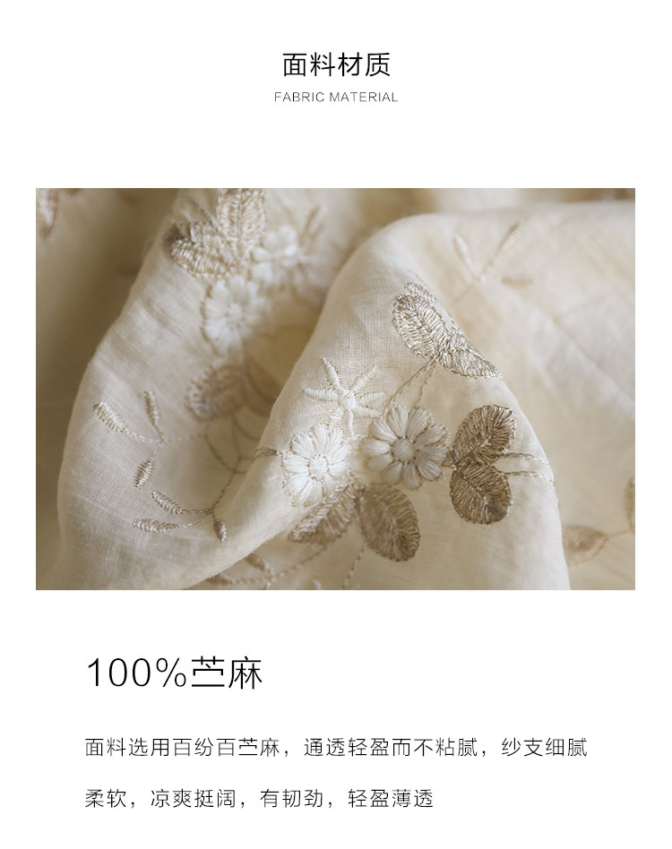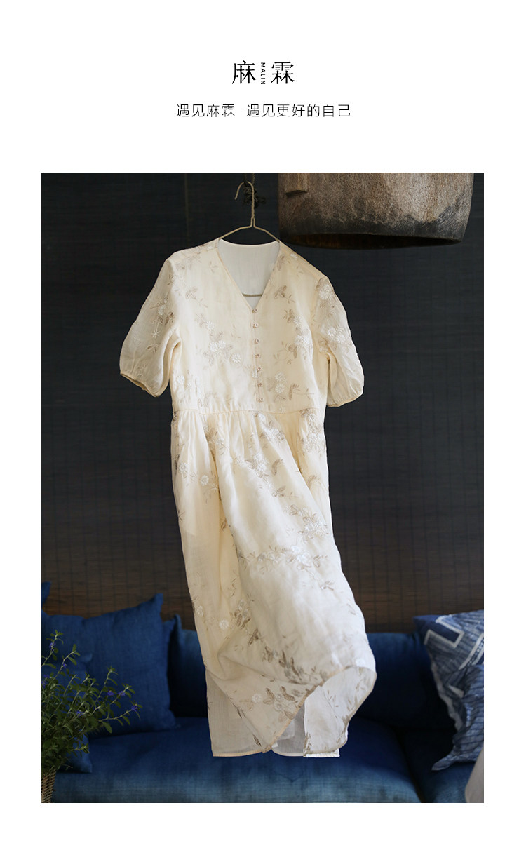 麻霖原創設計夏季100支100%精細苧麻水溶刺綉文藝休閒清涼連衣裙
