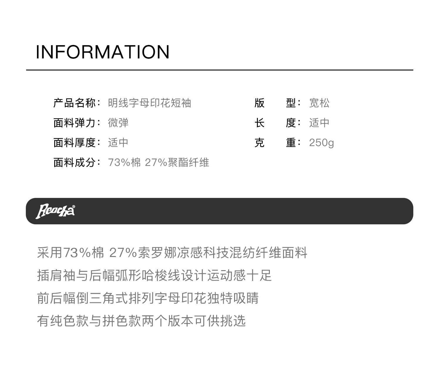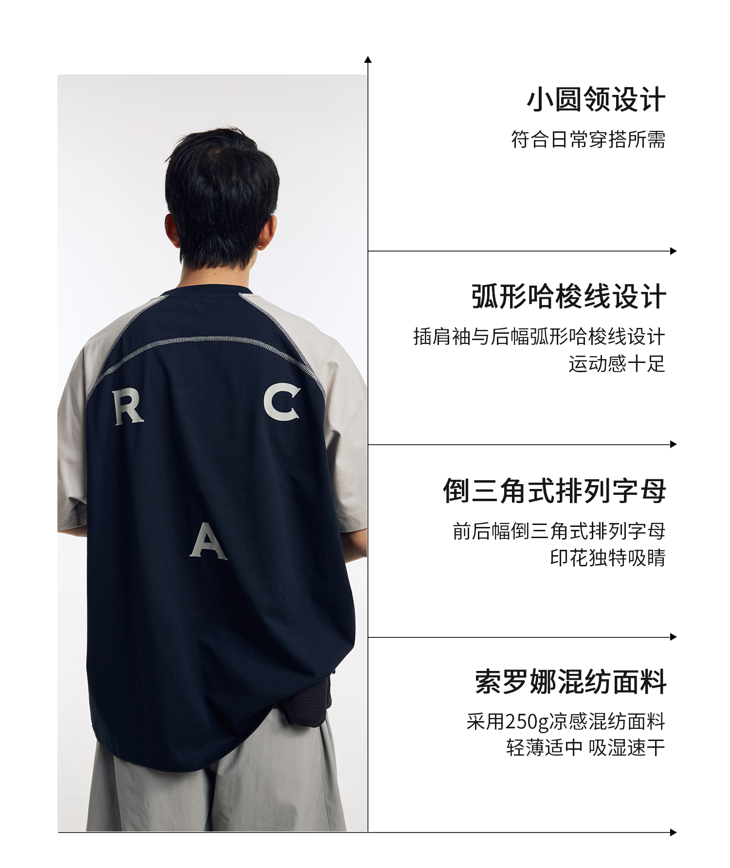 REOCHA熱呈夏季新款索羅娜速乾男t恤運動戶外明線印花插肩袖短袖
