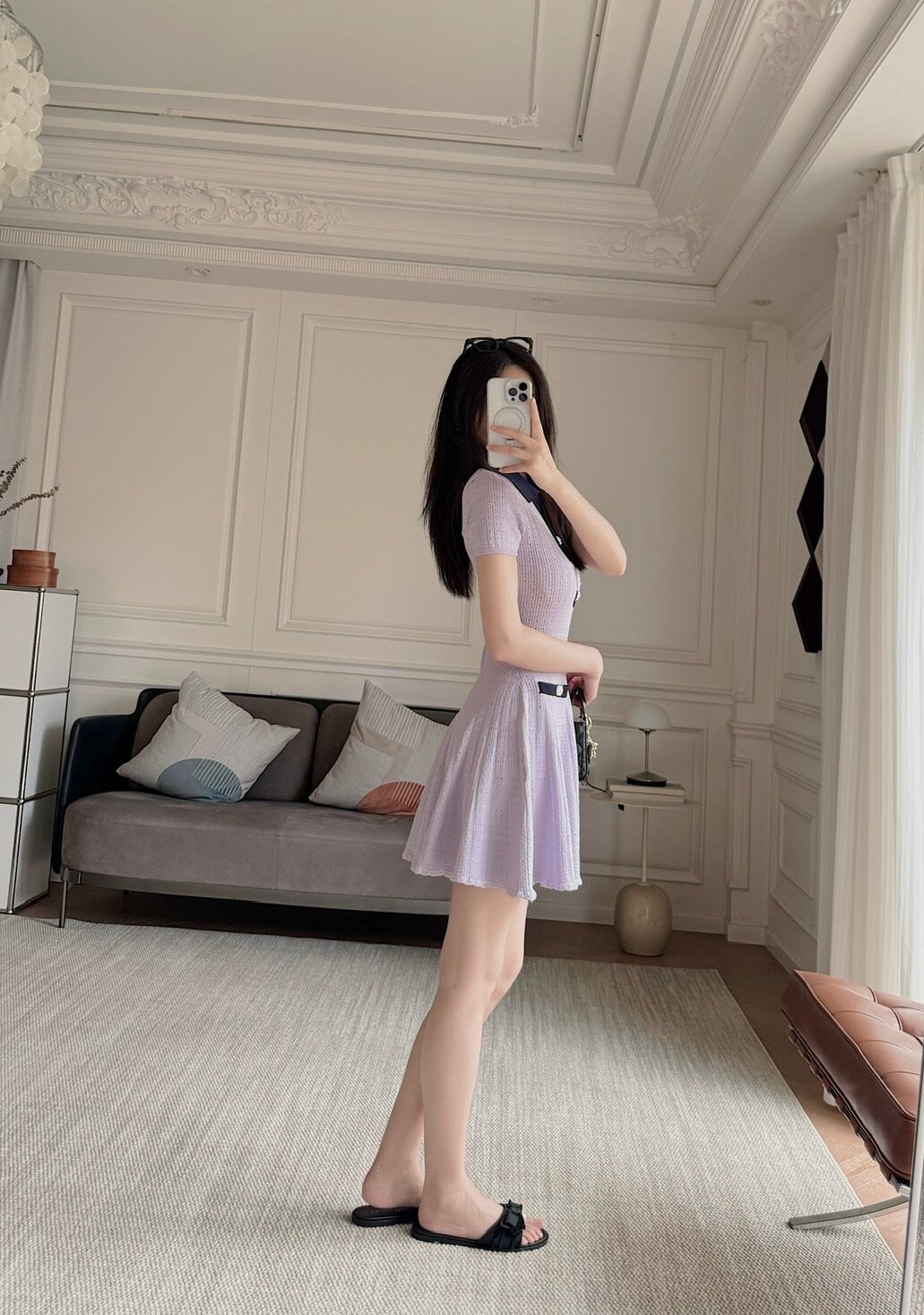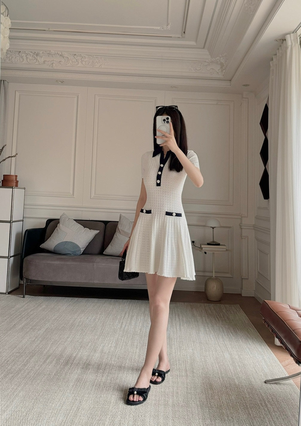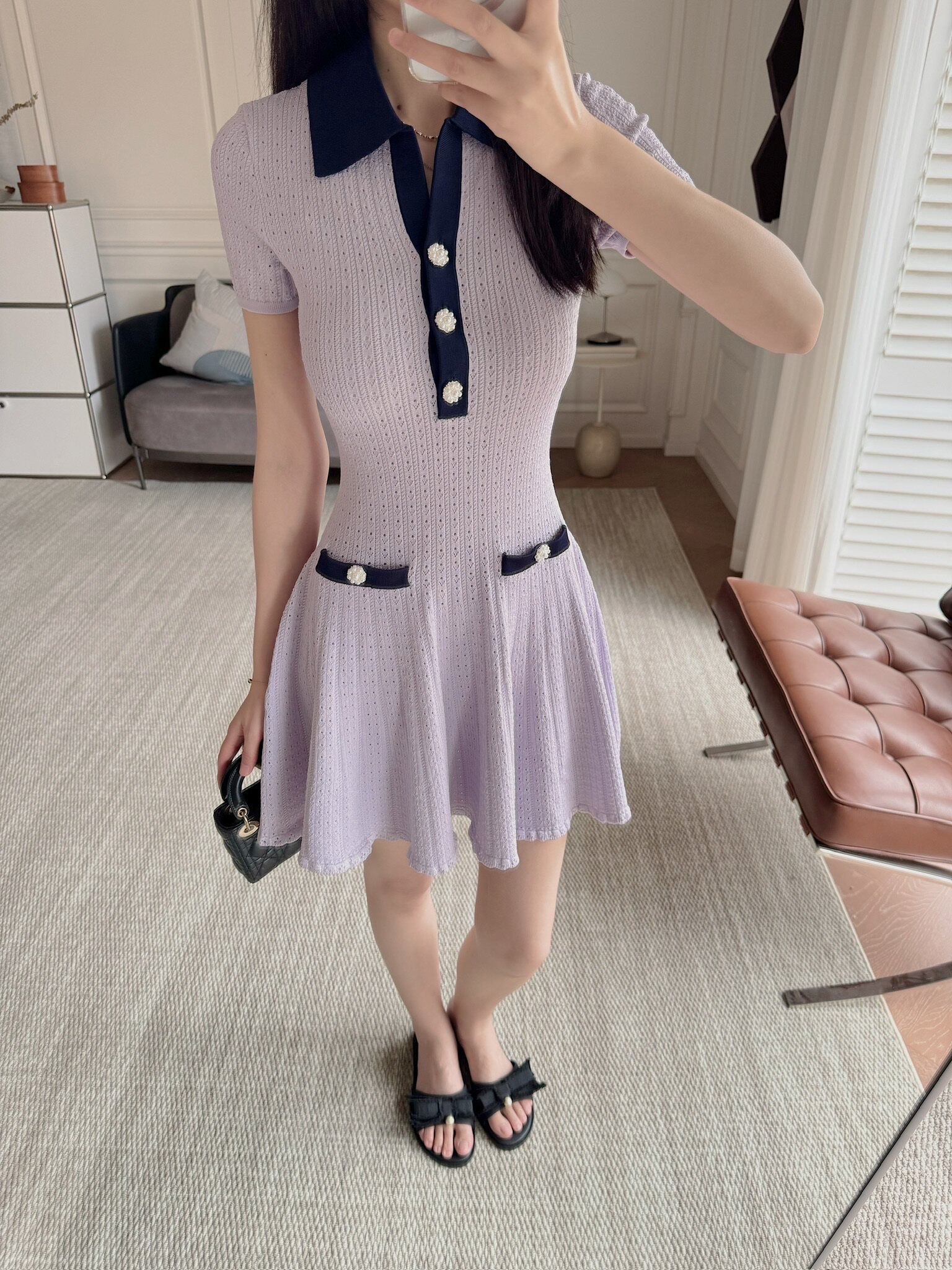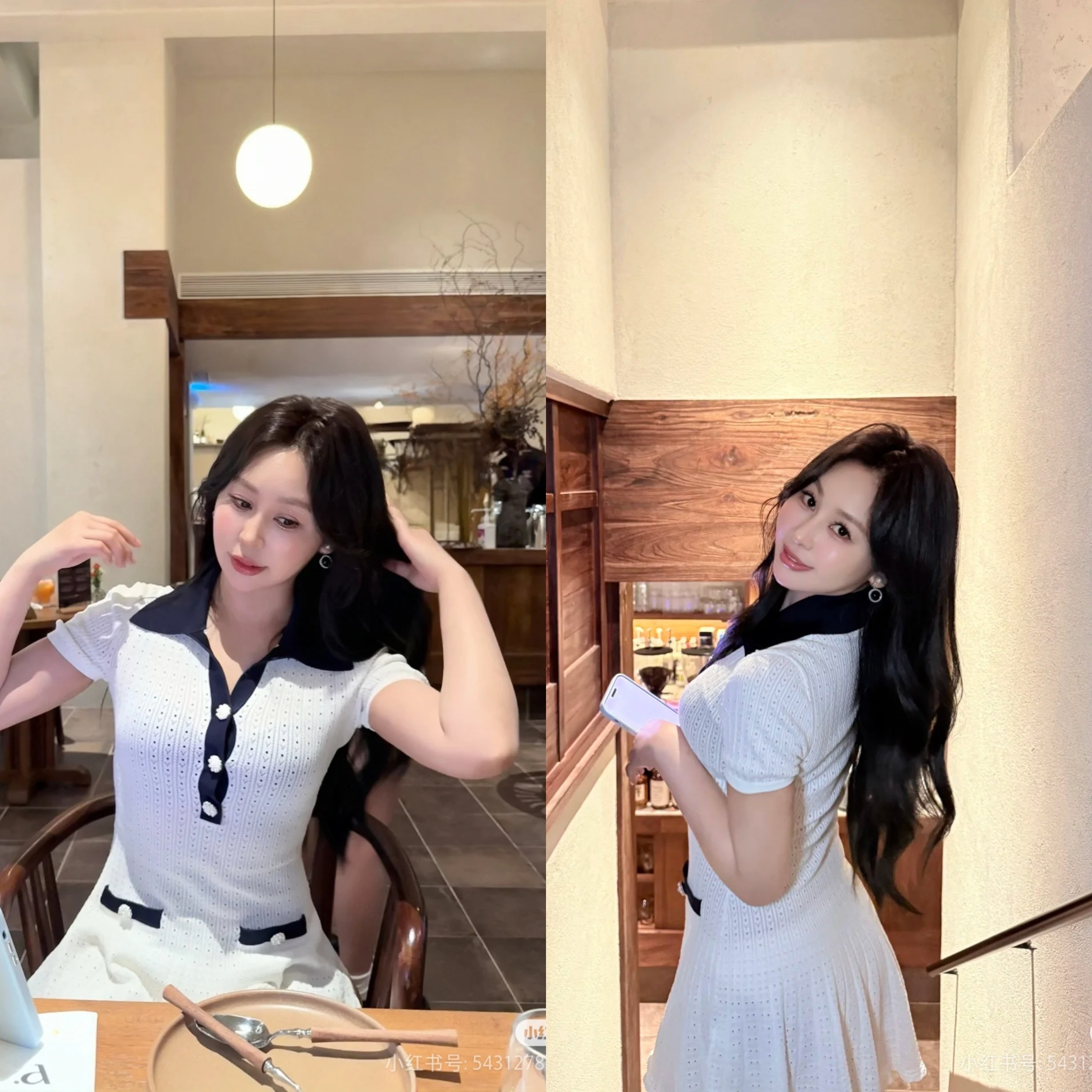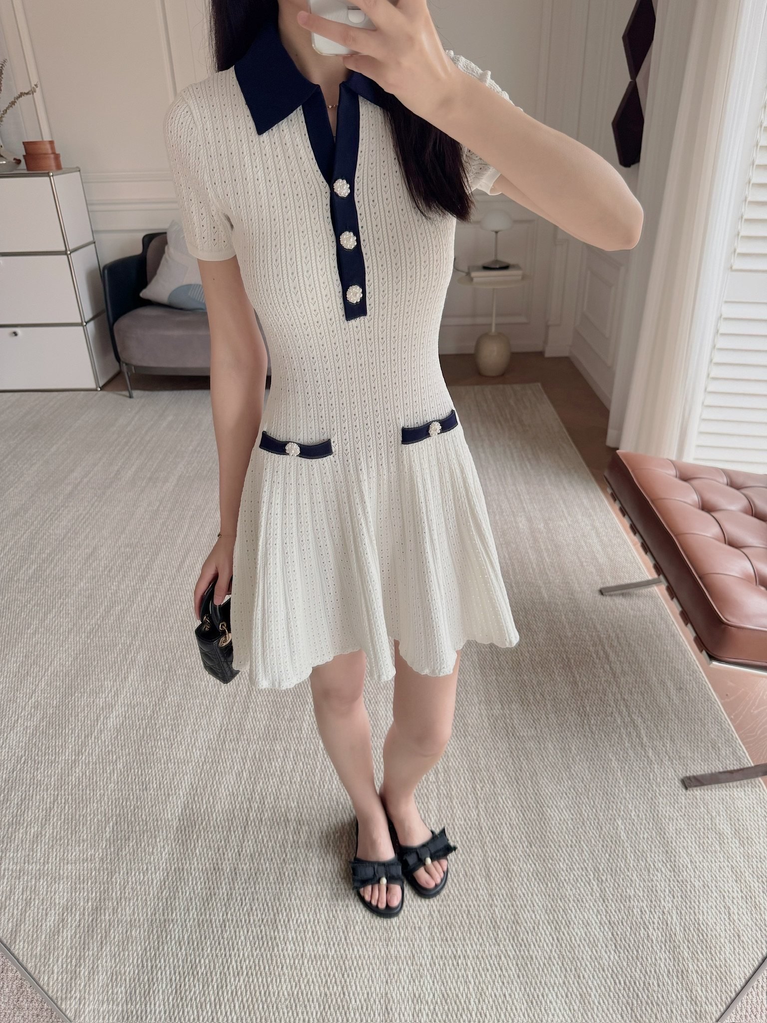 上衣和連衣裙是同系列,都是挑孔鏤空針織