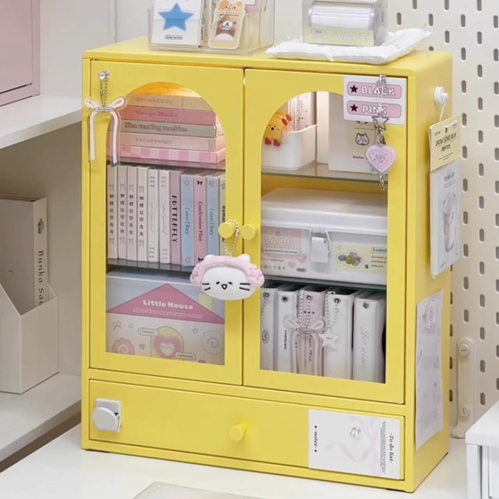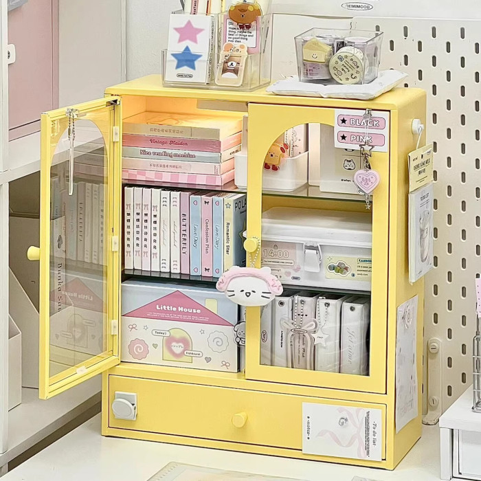 桌面鐵皮小收納櫃帶門文具化妝品手賬宿舍書桌學生置物架子收納盒