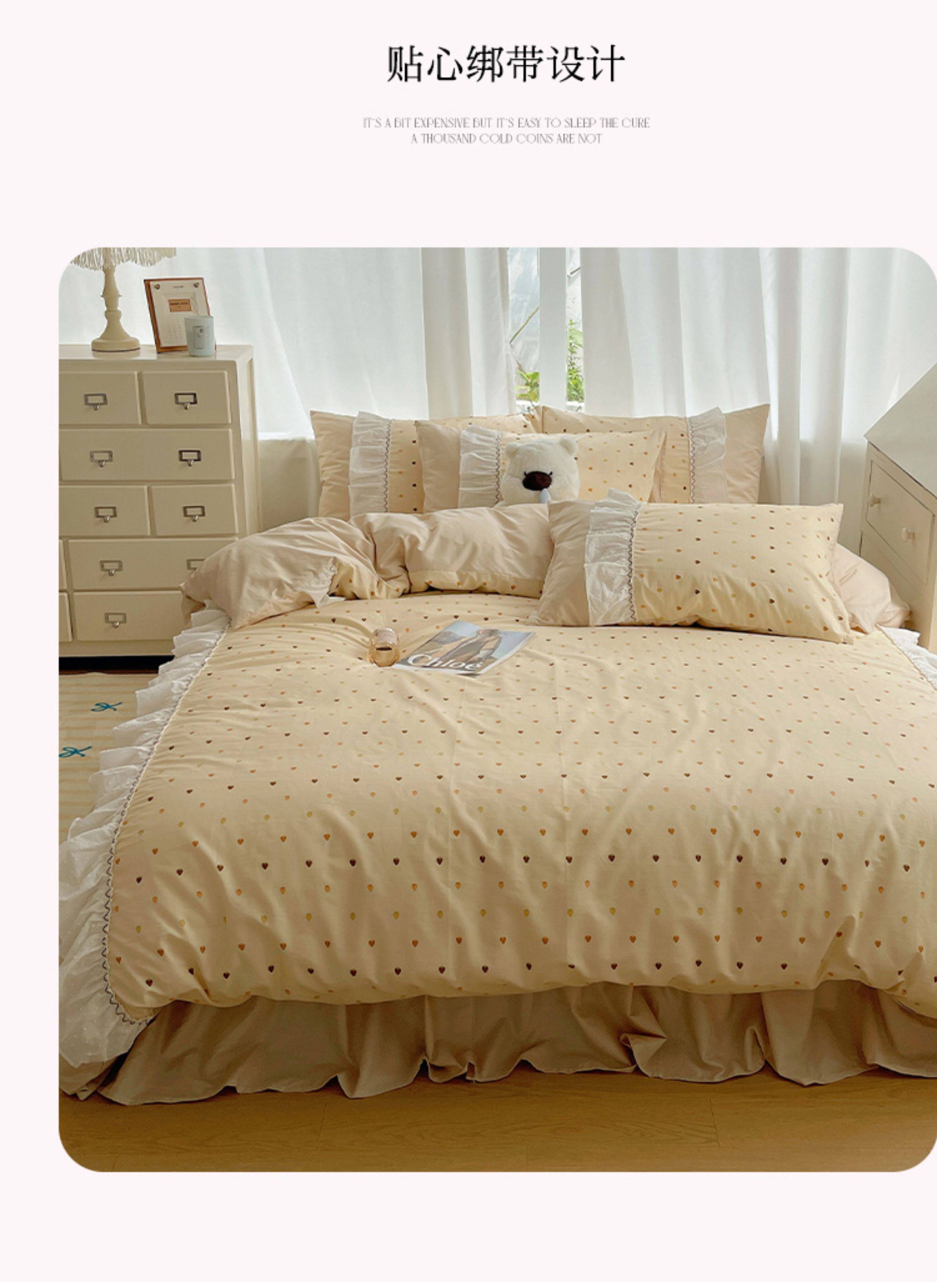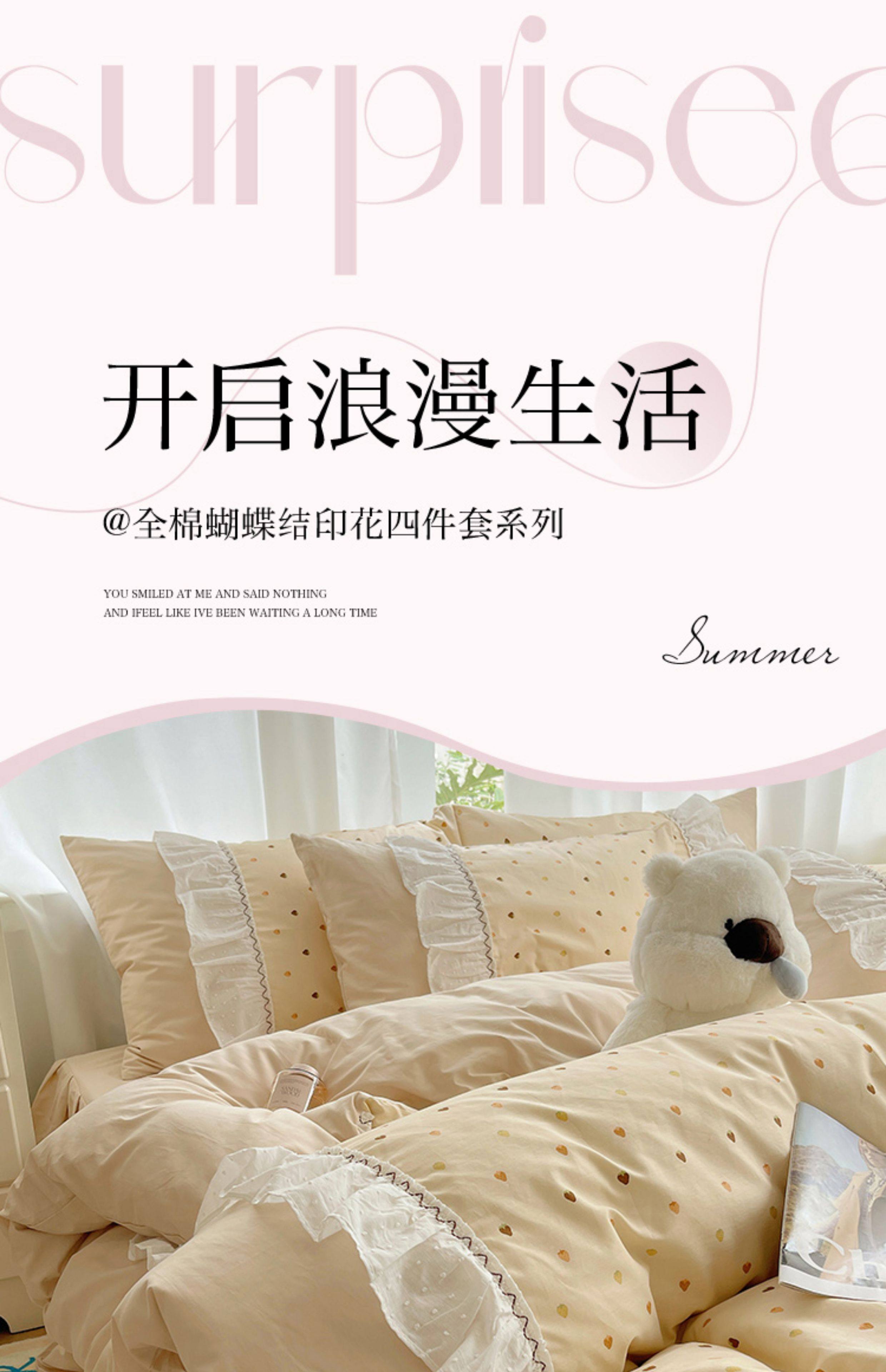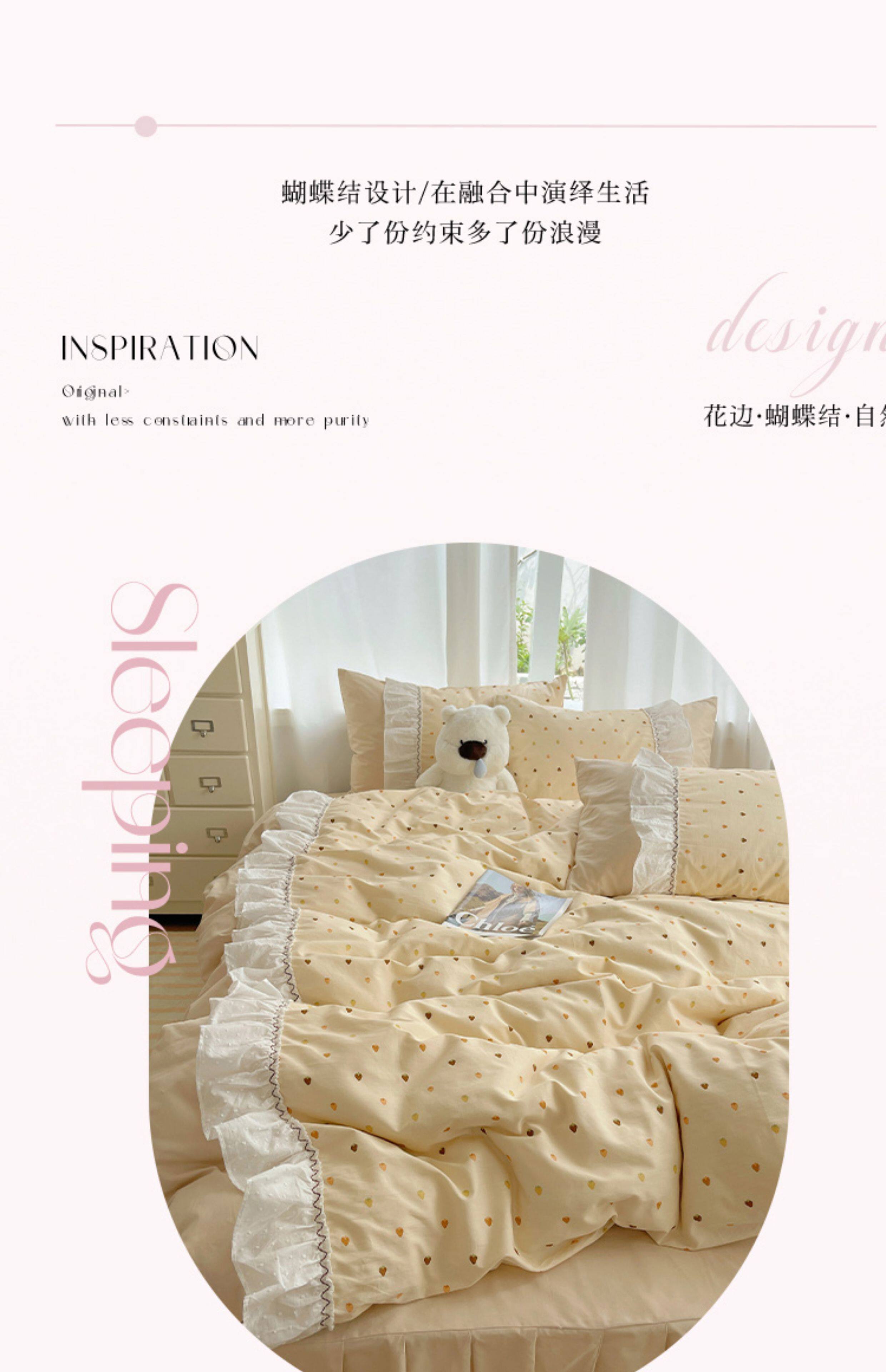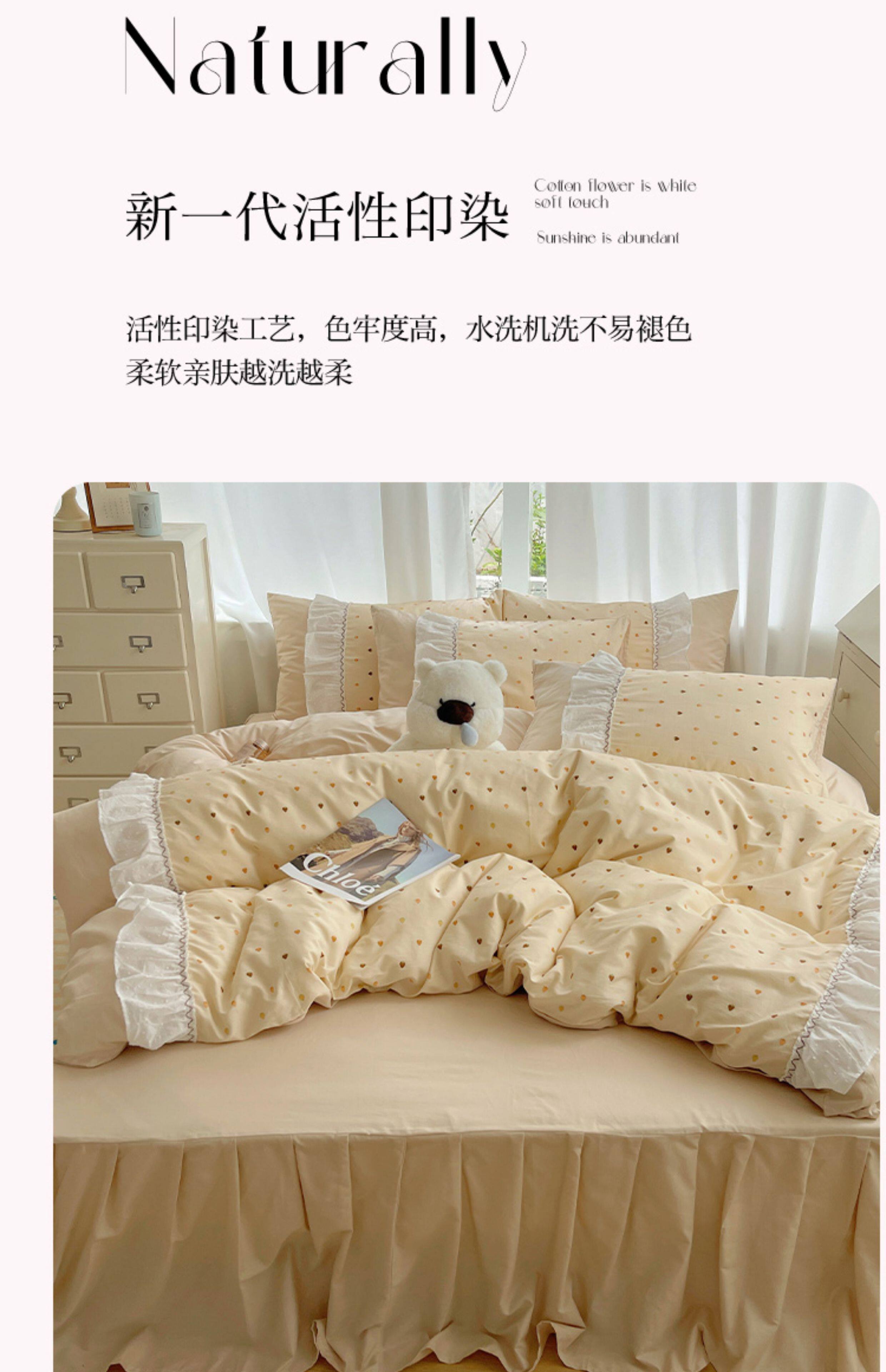 法式仙女風洛麗塔花邊純棉四件套少女心床單床裙床笠全棉親膚床品