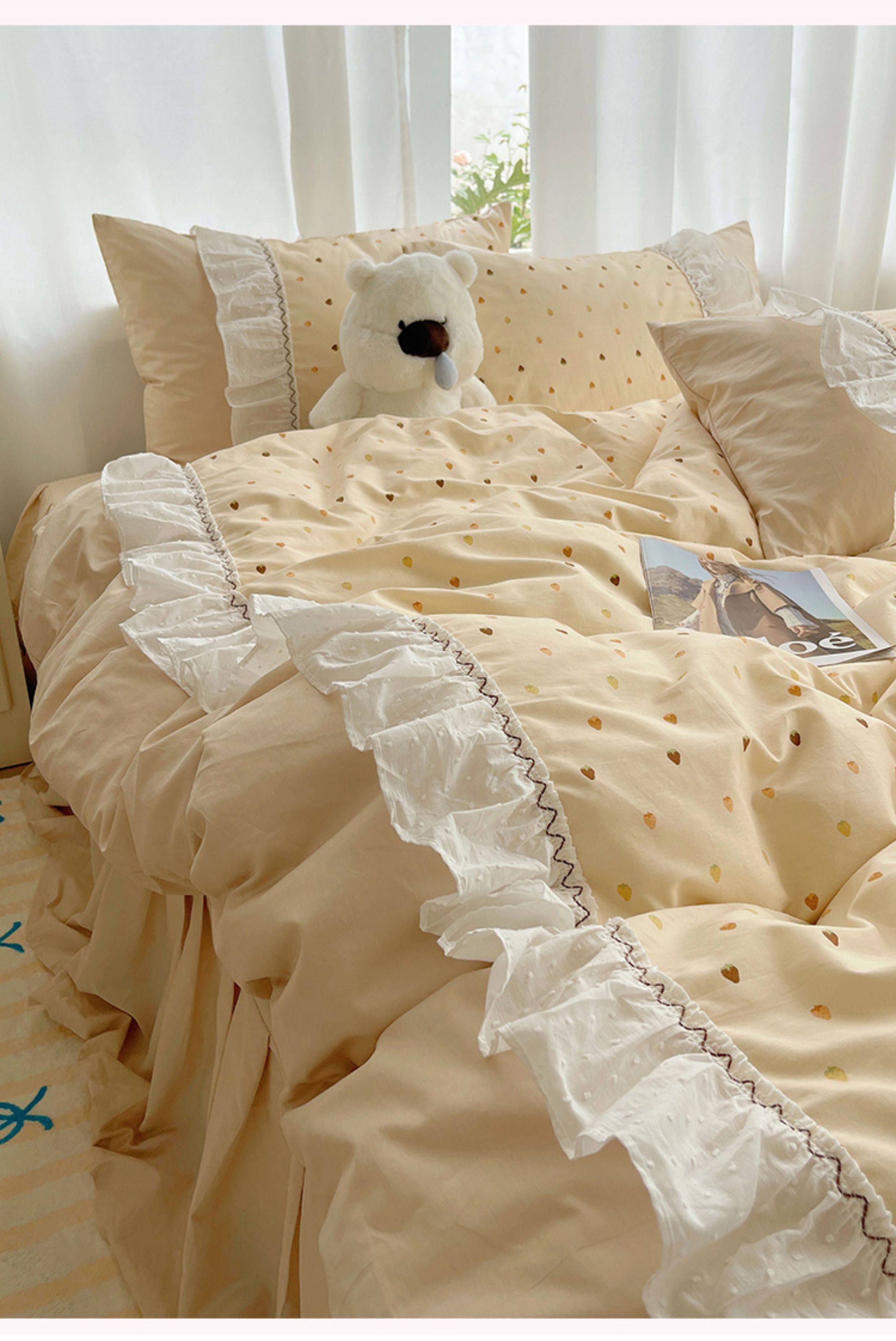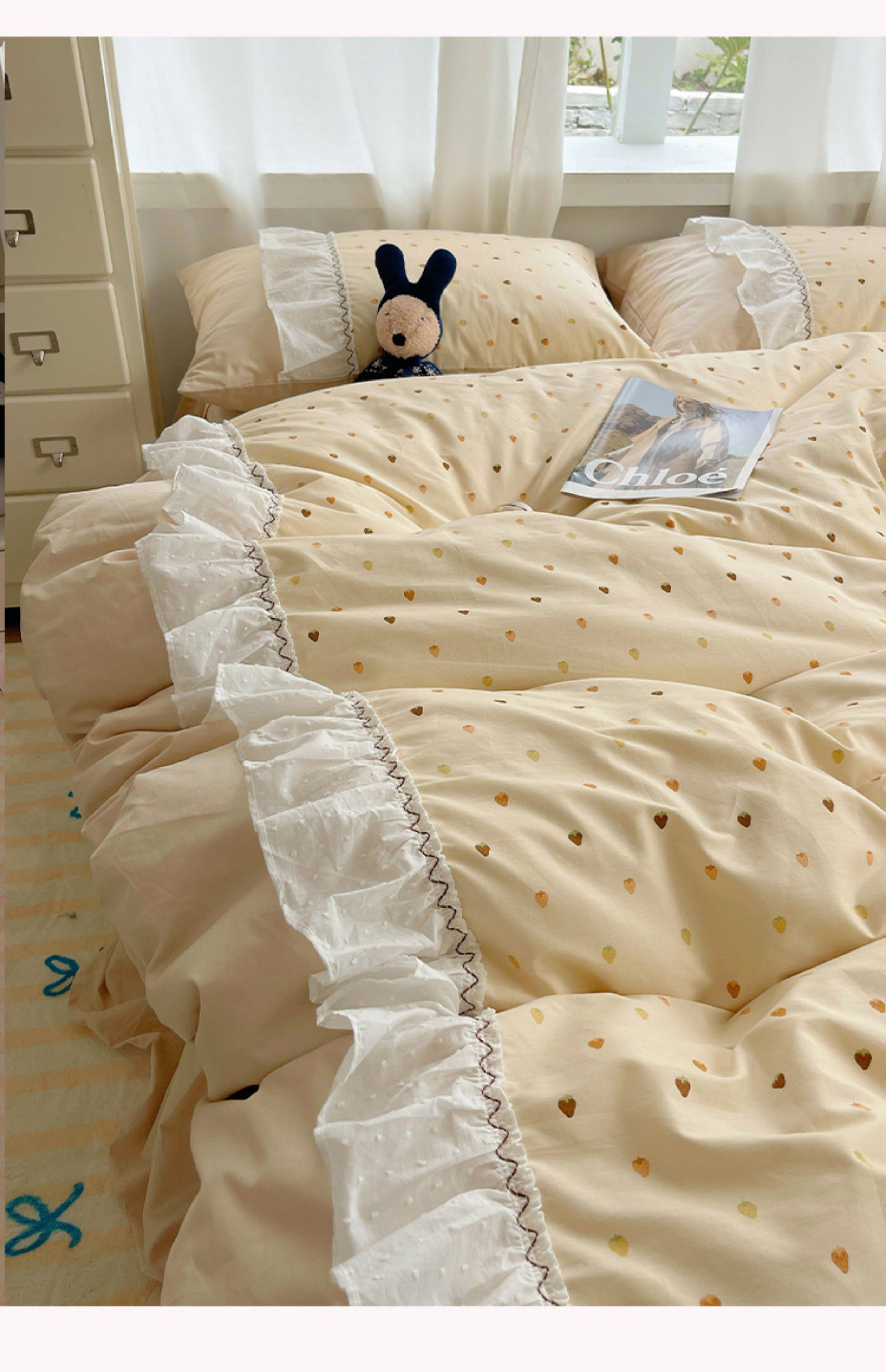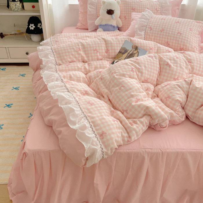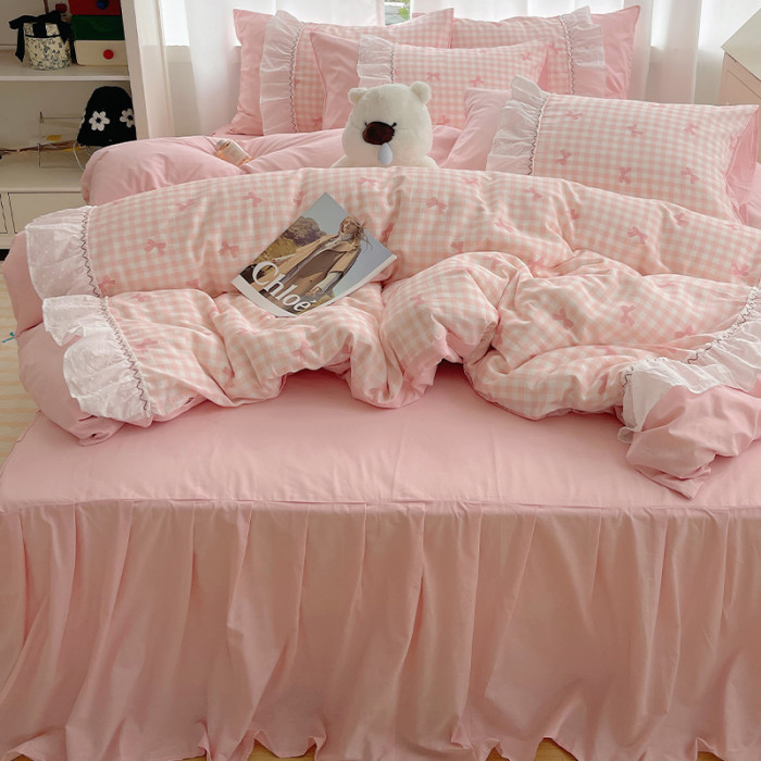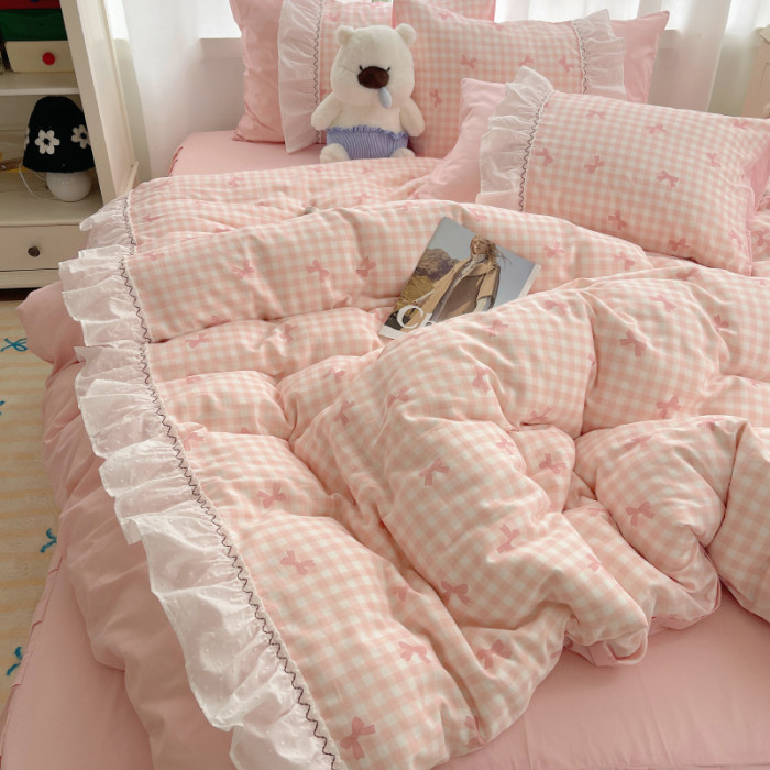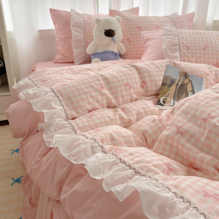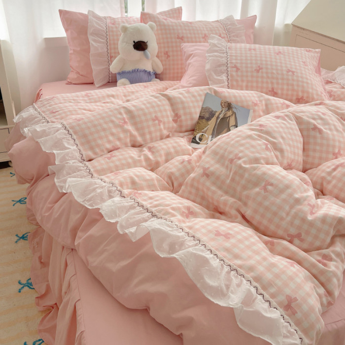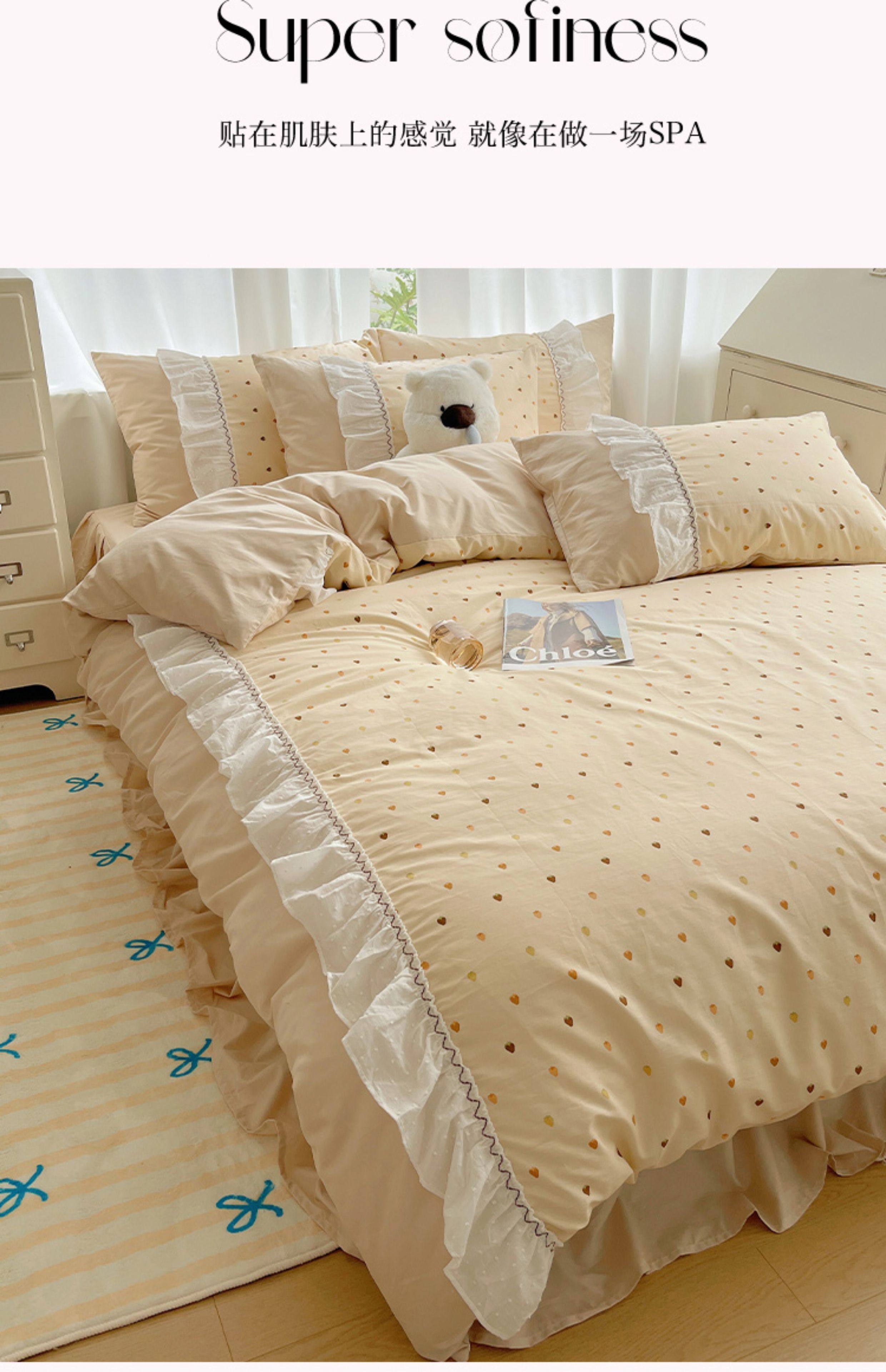 法式仙女風洛麗塔花邊純棉四件套少女心床單床裙床笠全棉親膚床品