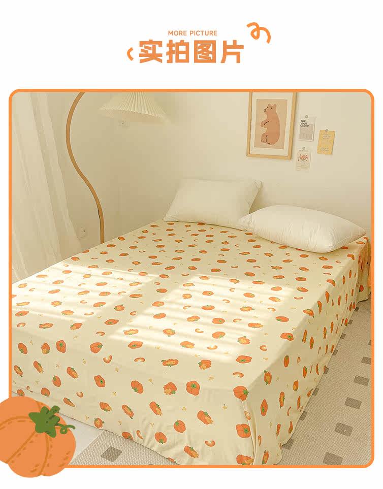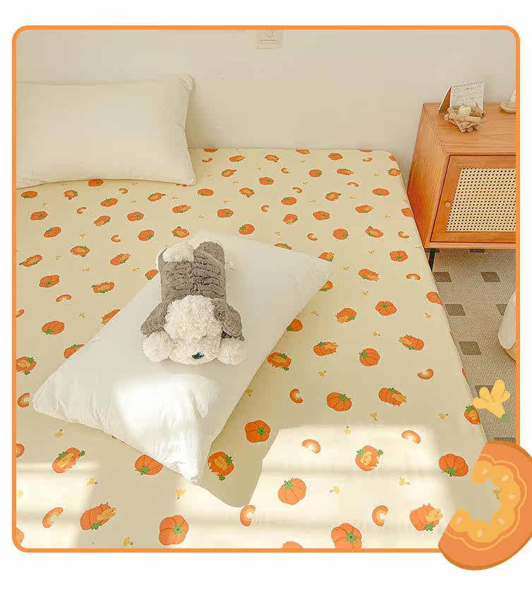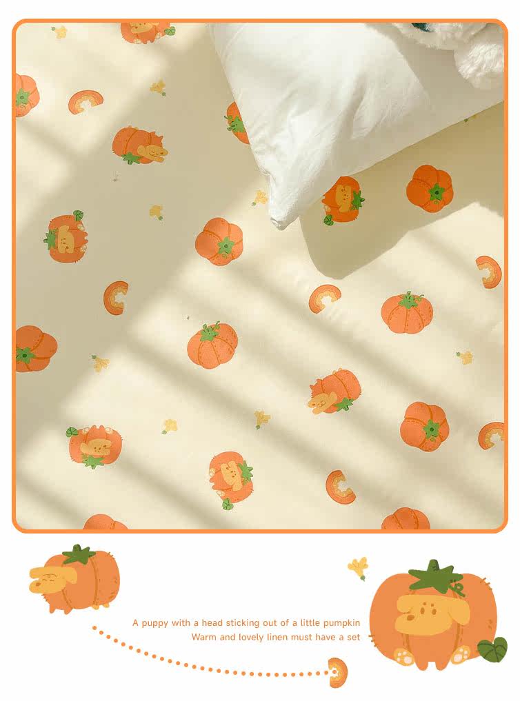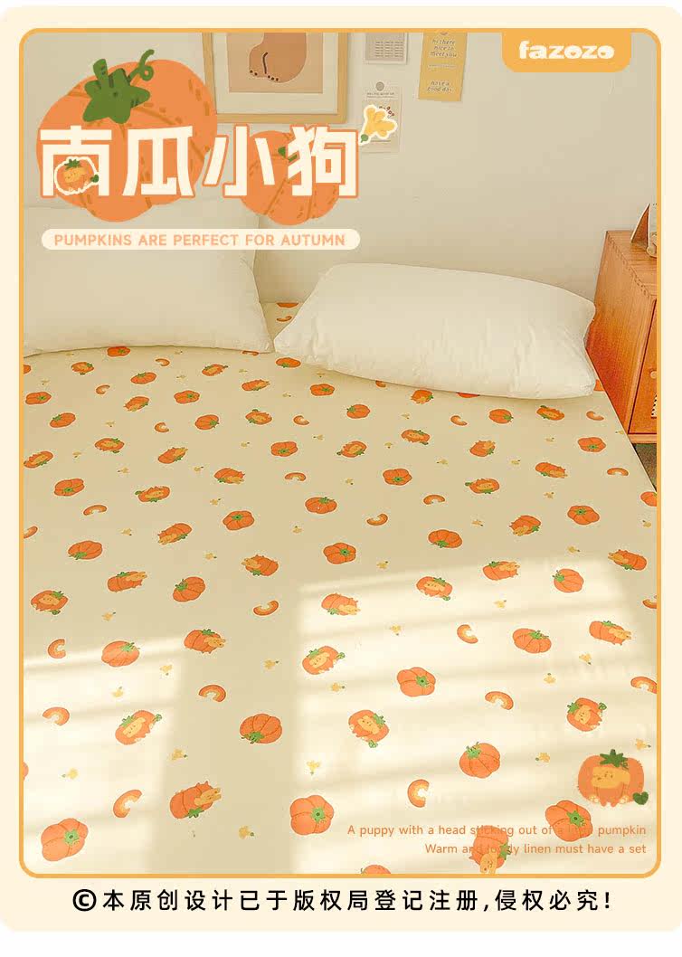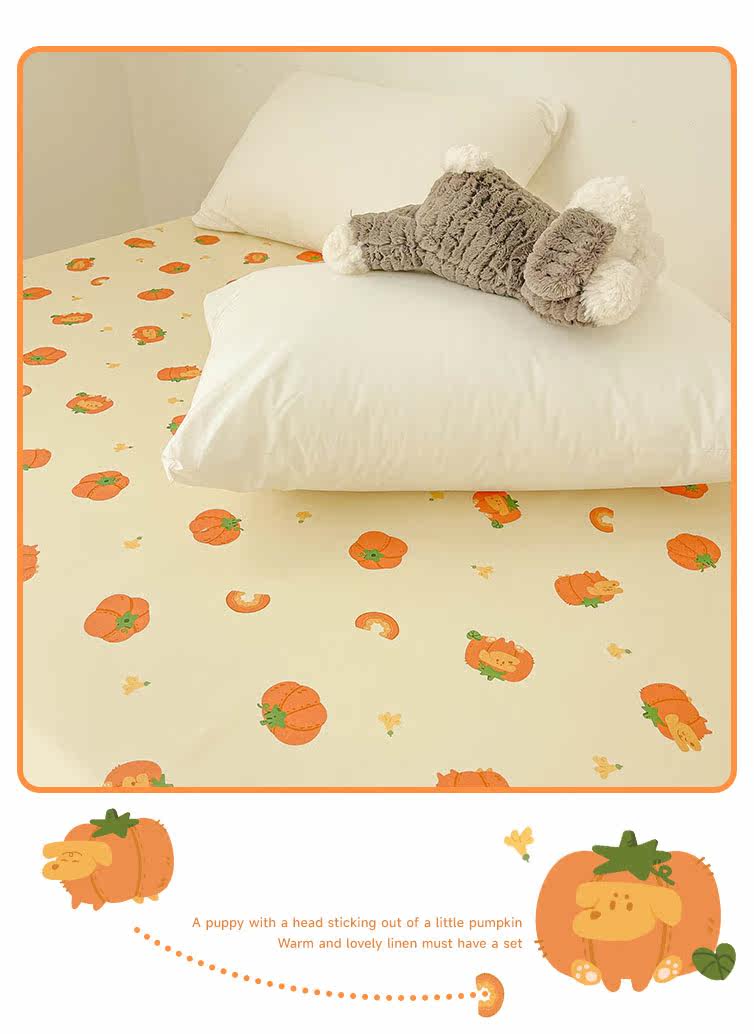 南瓜小狗 秋日療瘉系原創全棉床單床包純棉被單學生雙人 卡通可愛
