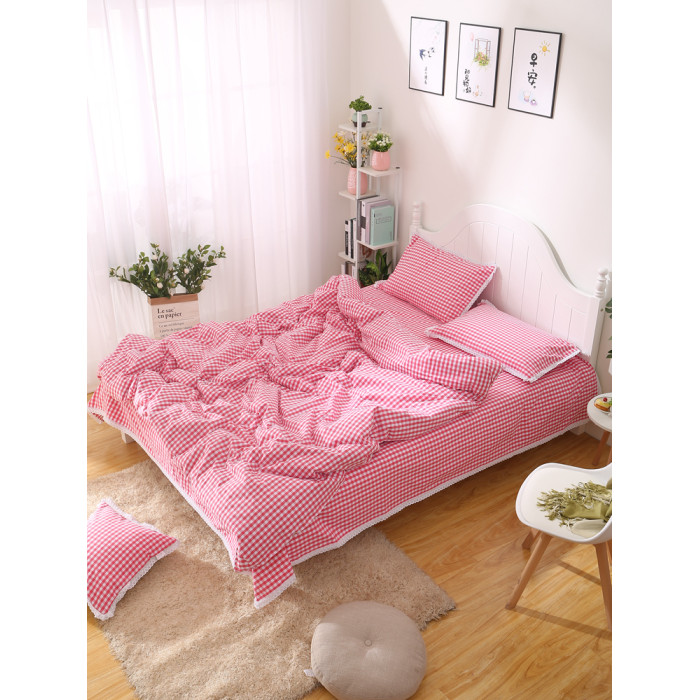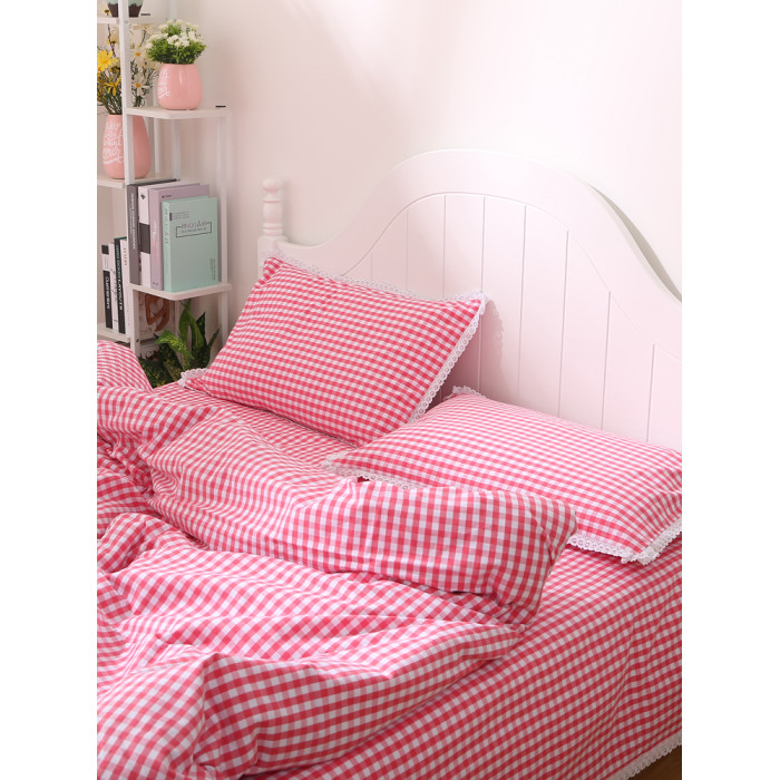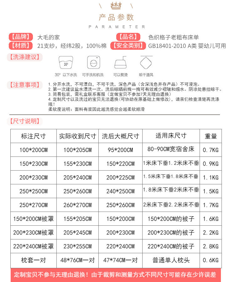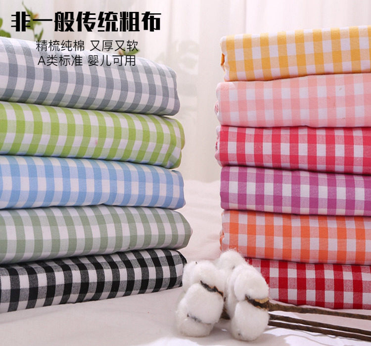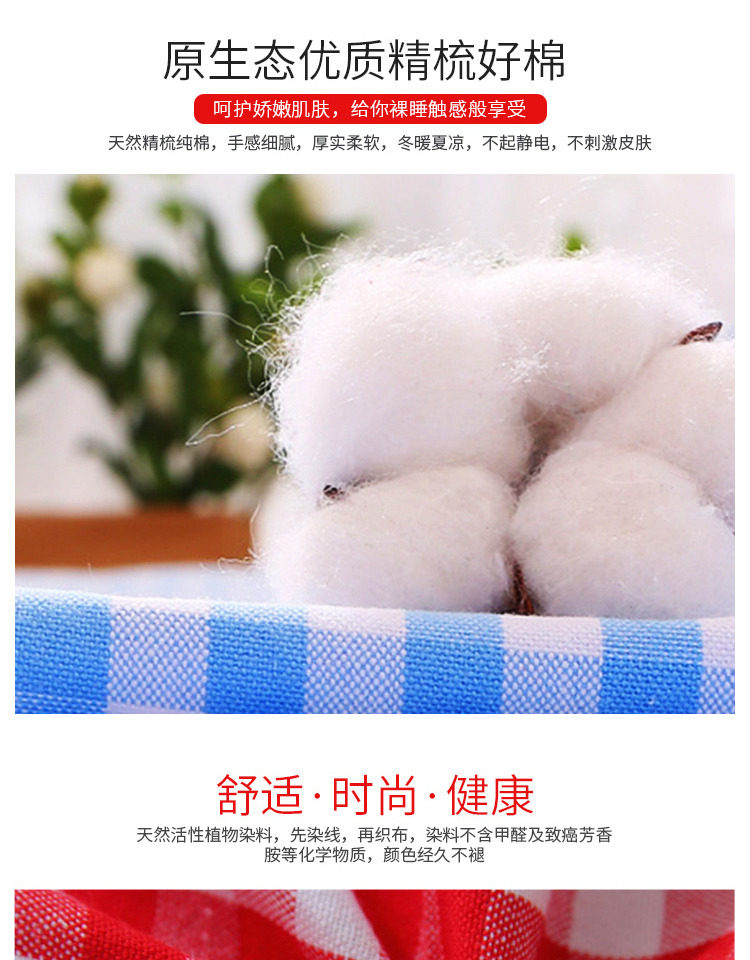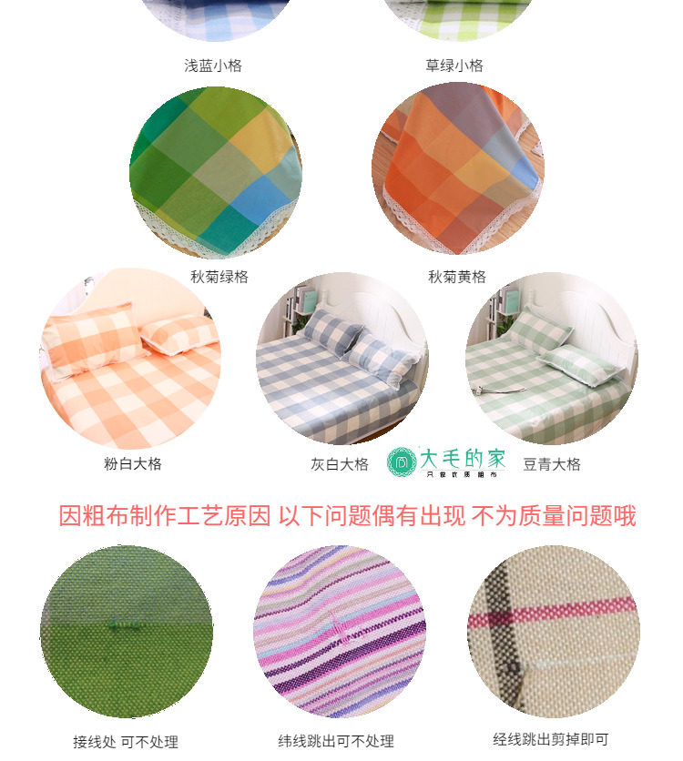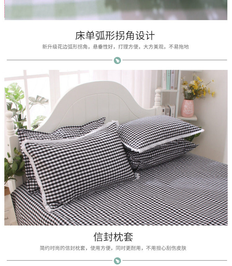老粗布床單精梳純棉全棉A類三件套花邊加厚加密單件格子被罩被套