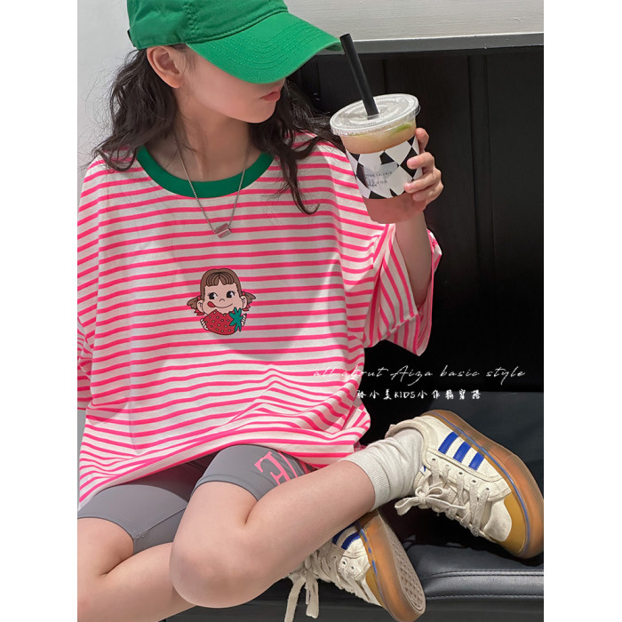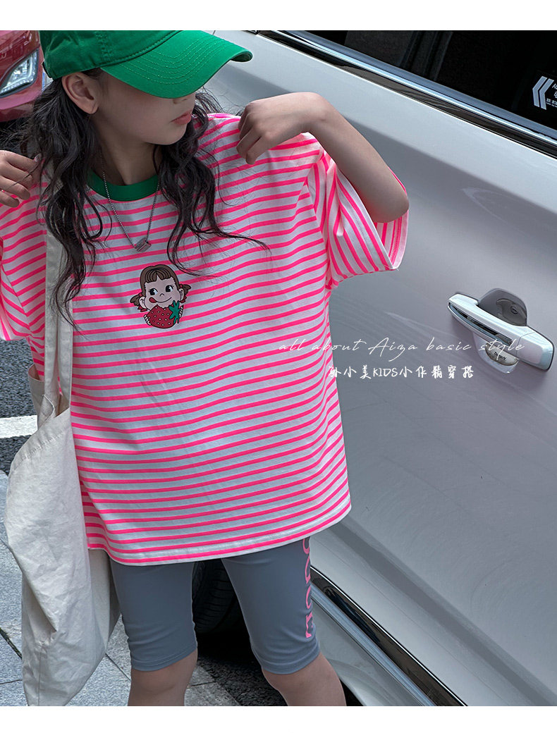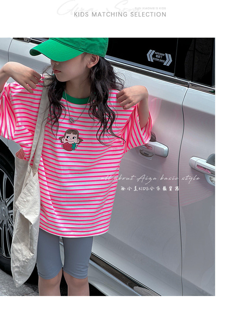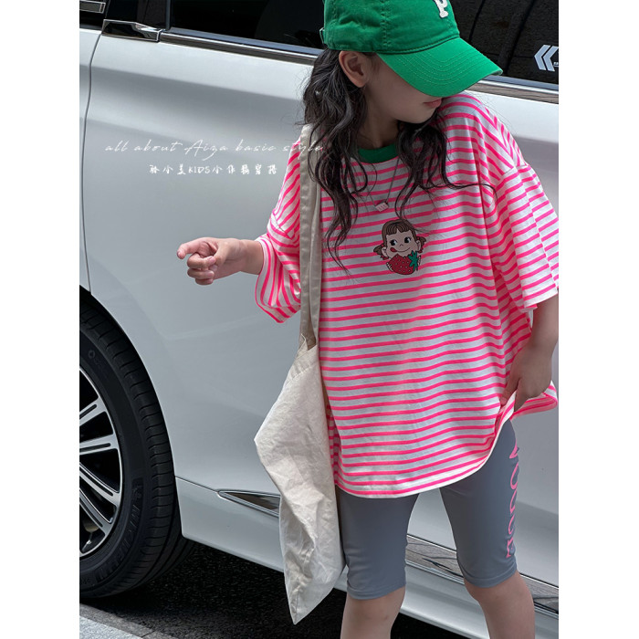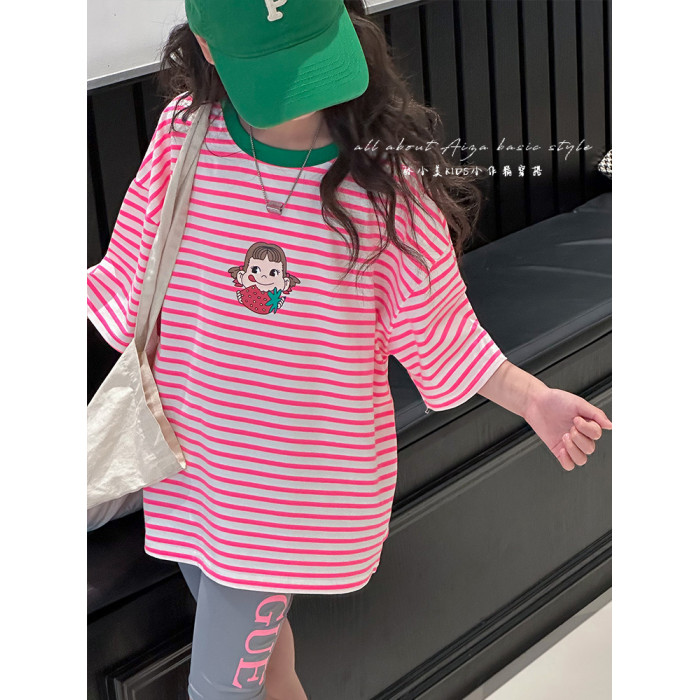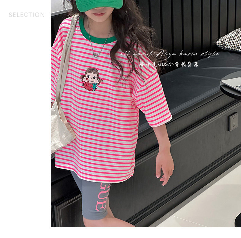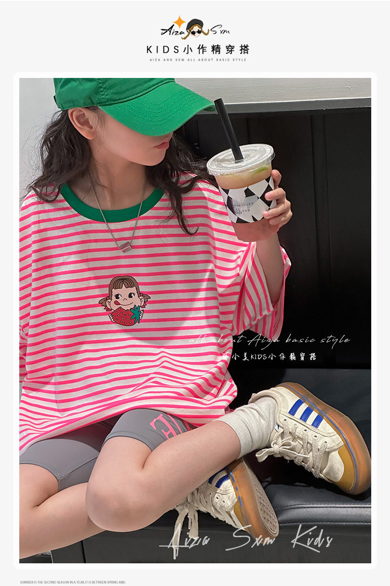 韓國童裝女童T恤兒童短袖上衣2025夏裝新款女大童條紋衣服百搭潮t