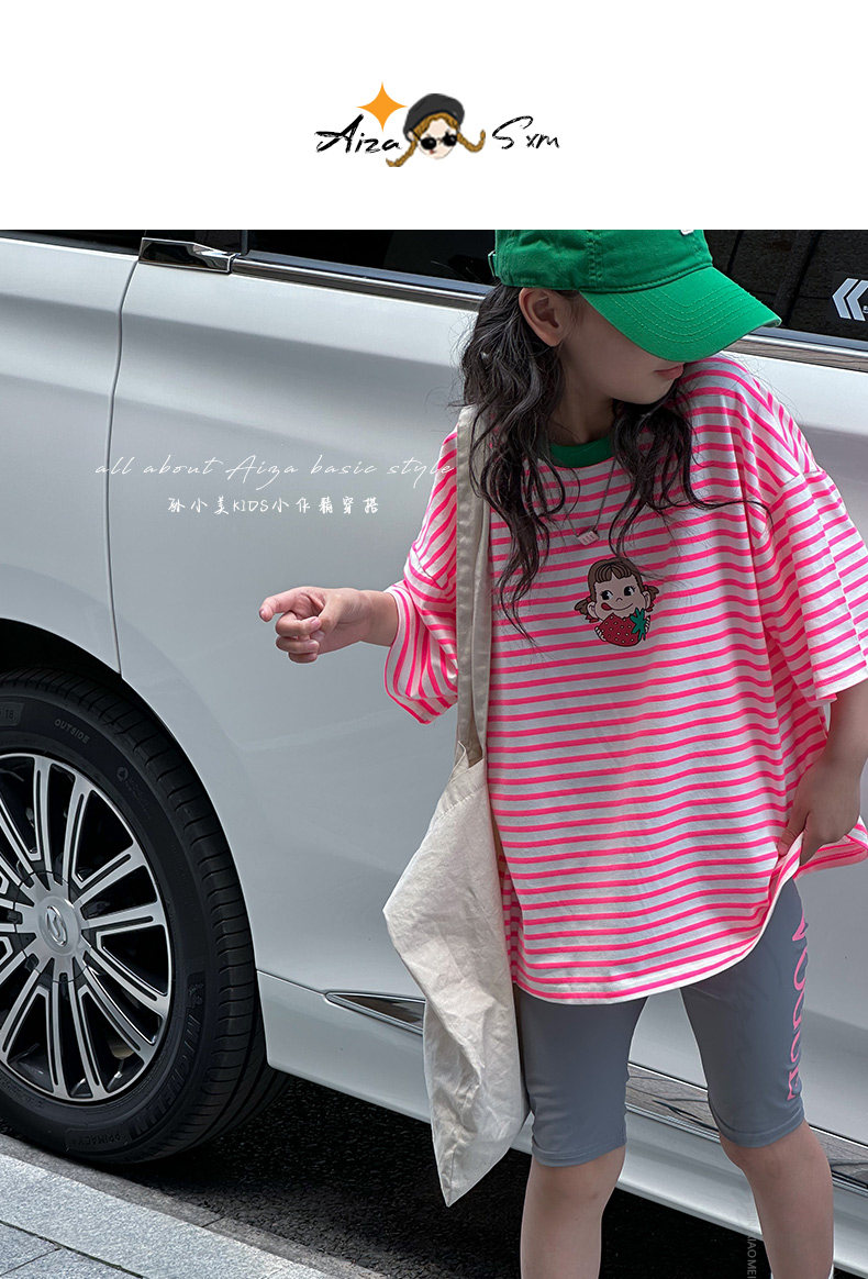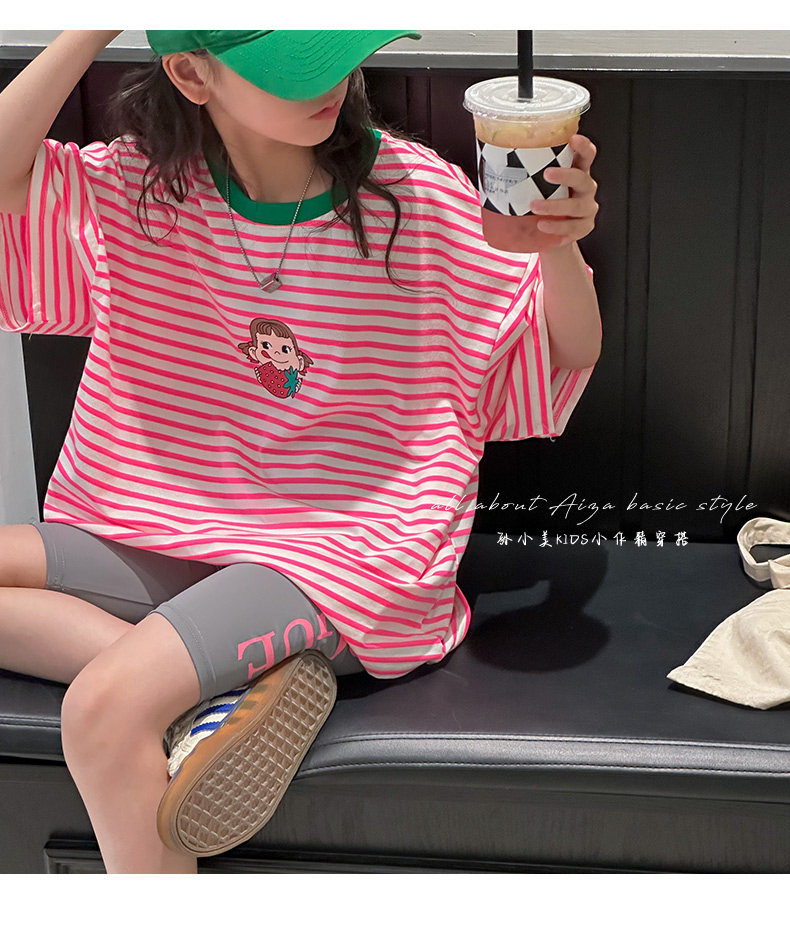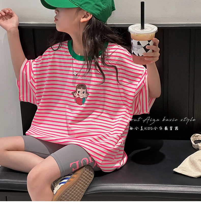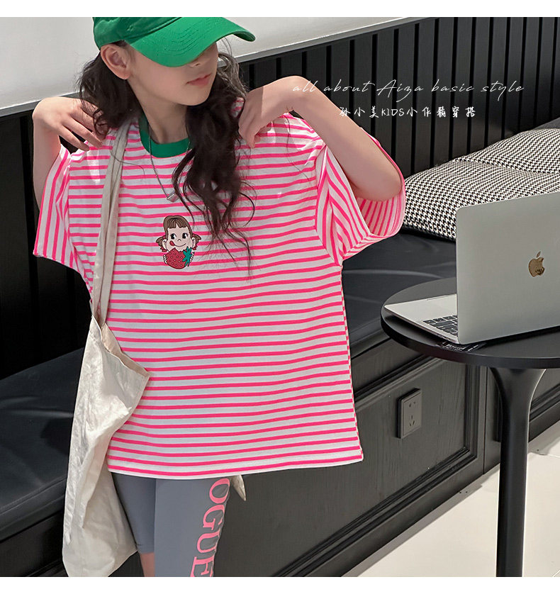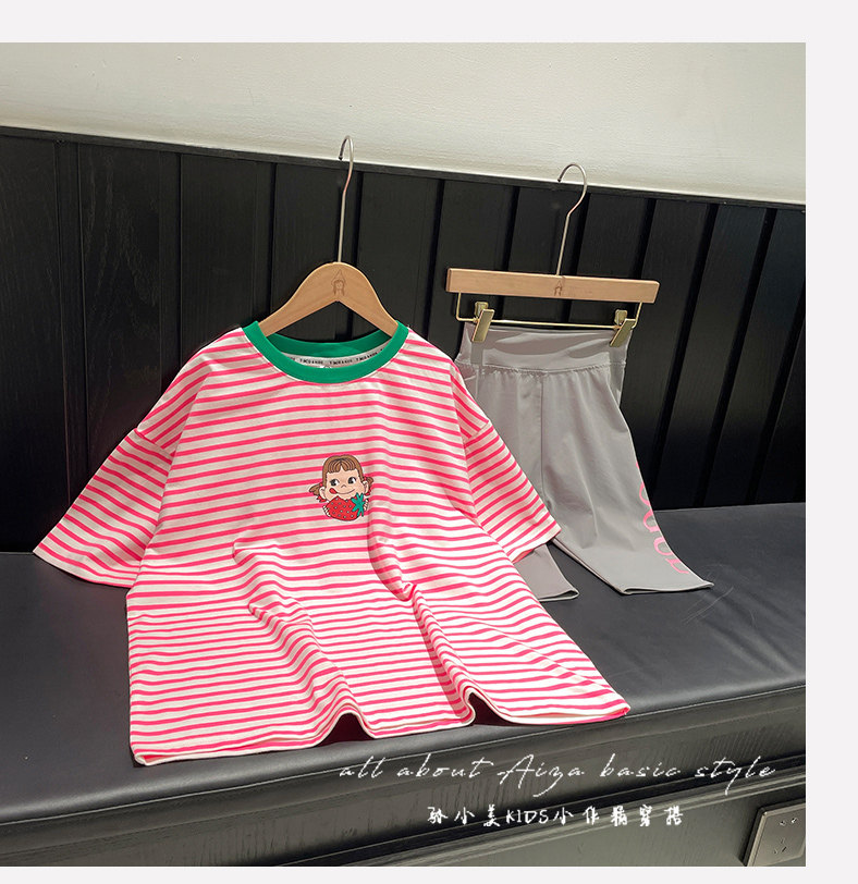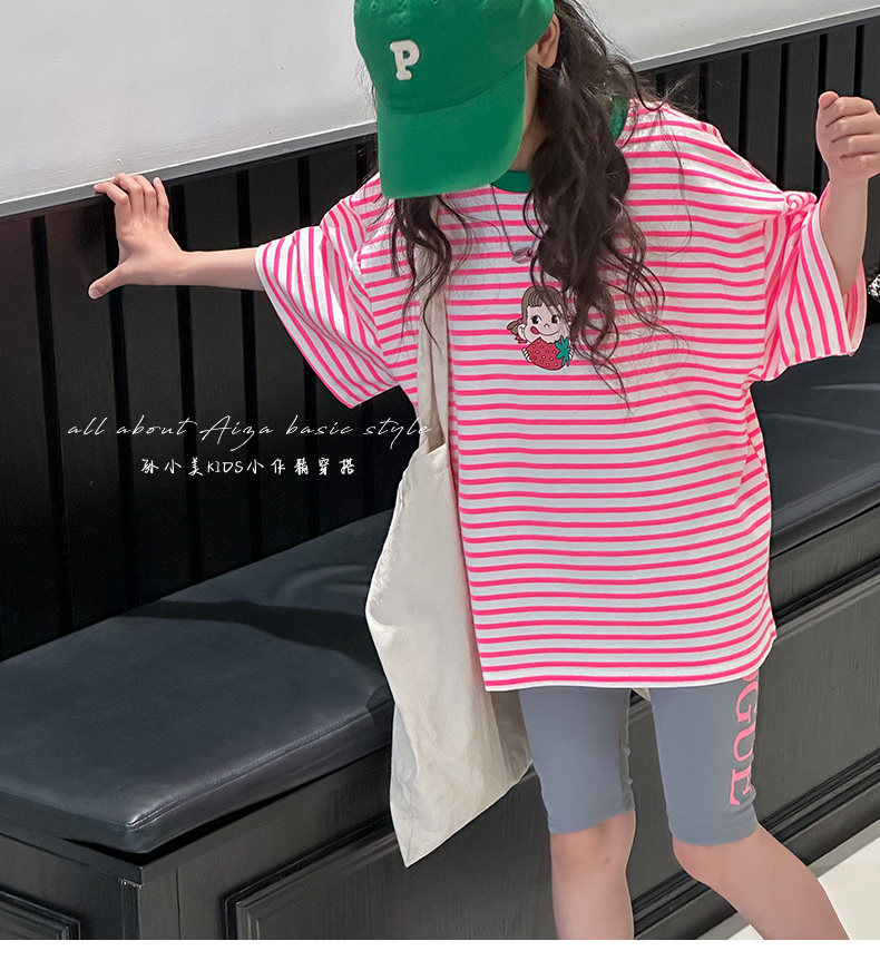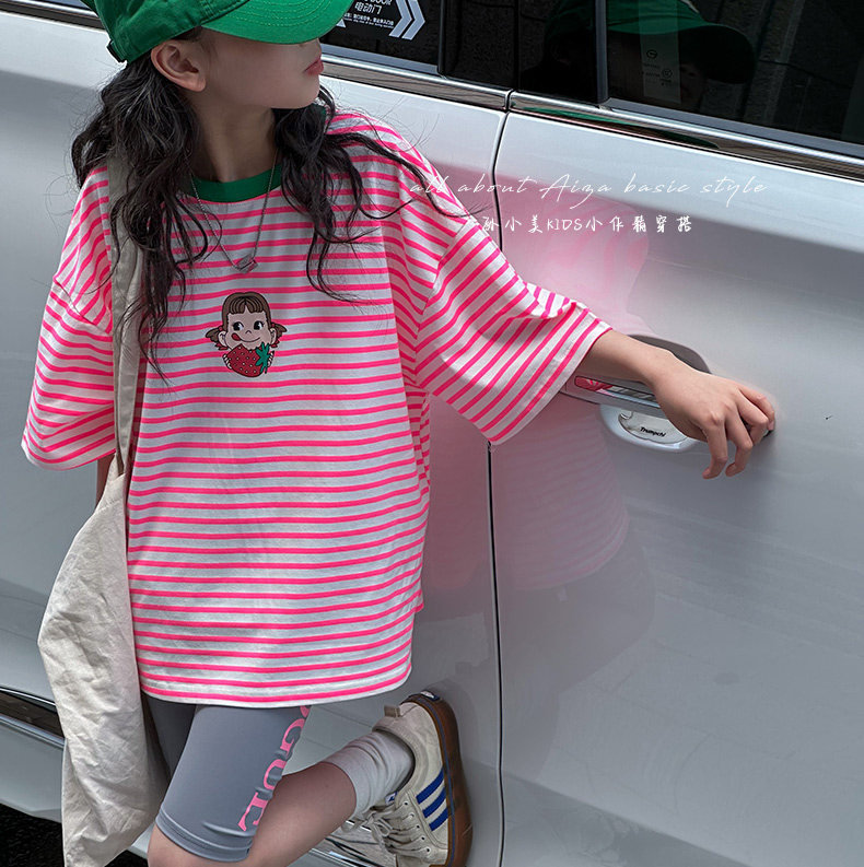 韓國童裝女童T恤兒童短袖上衣2025夏裝新款女大童條紋衣服百搭潮t