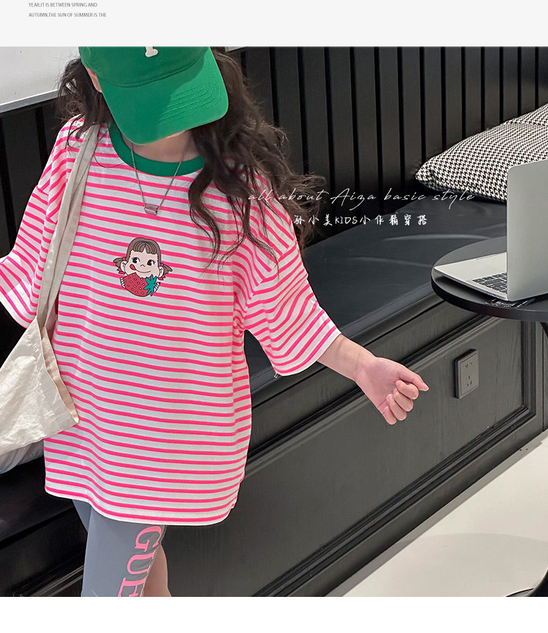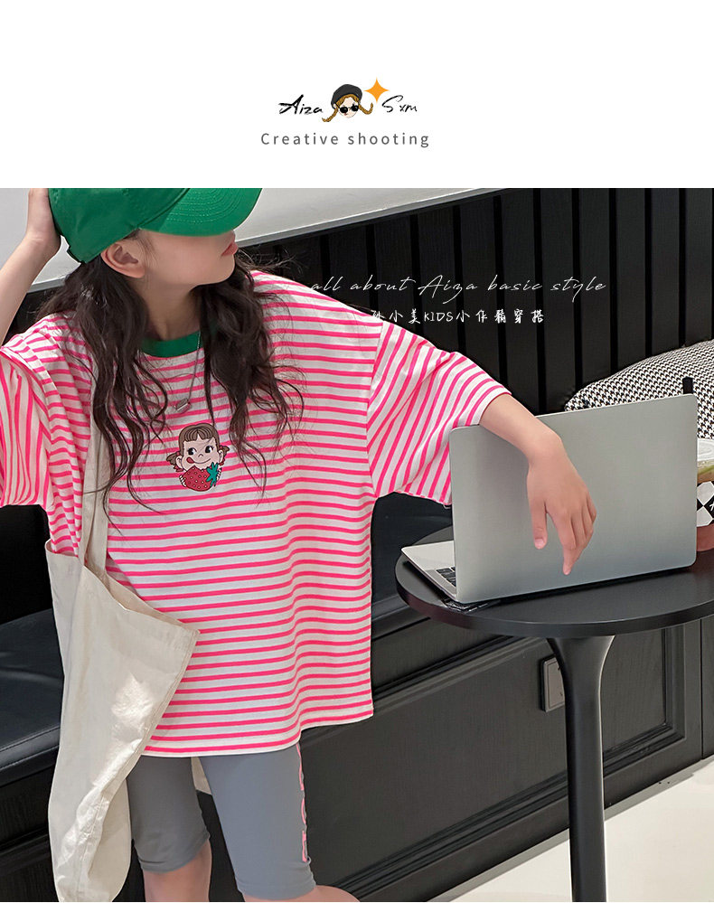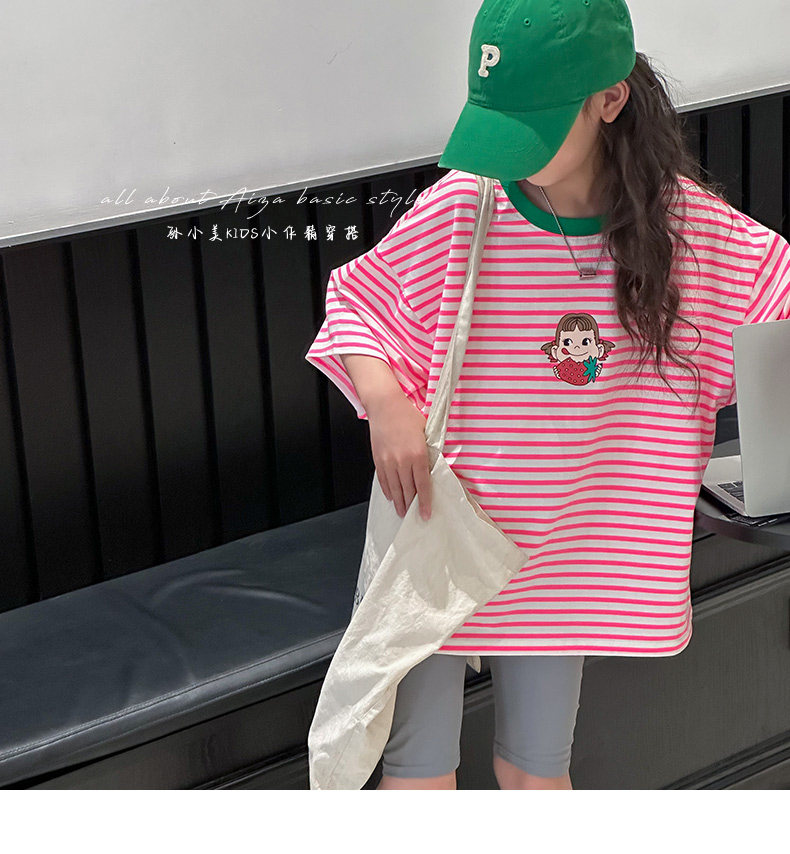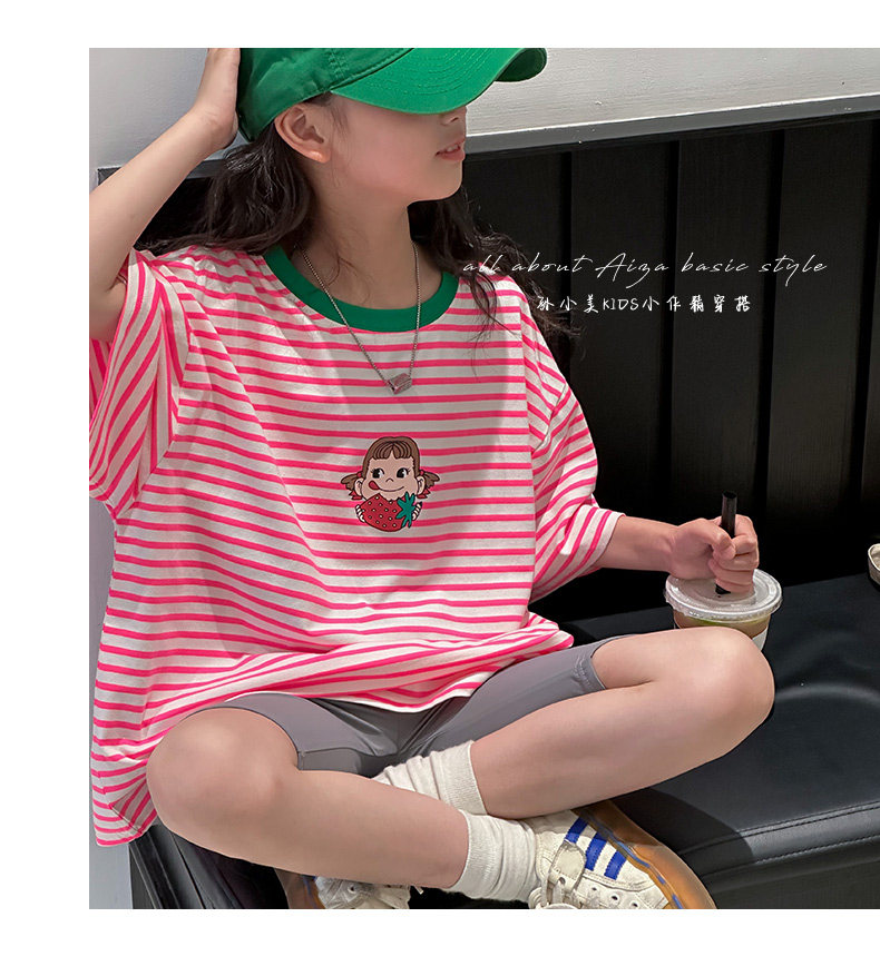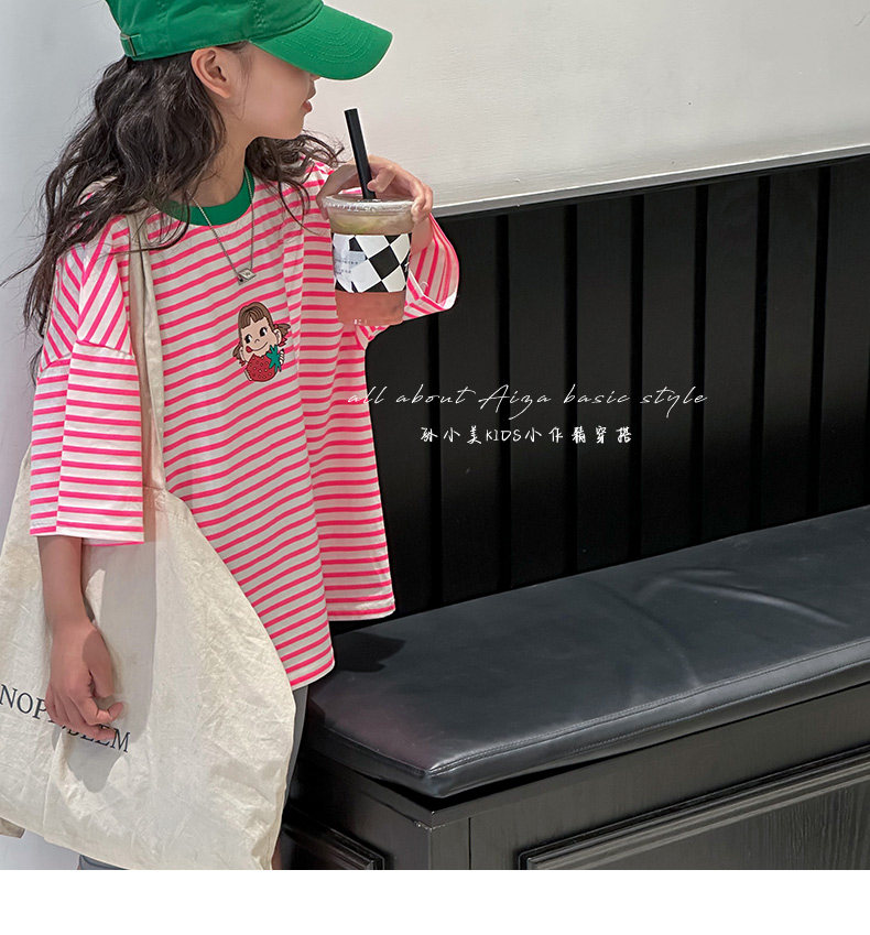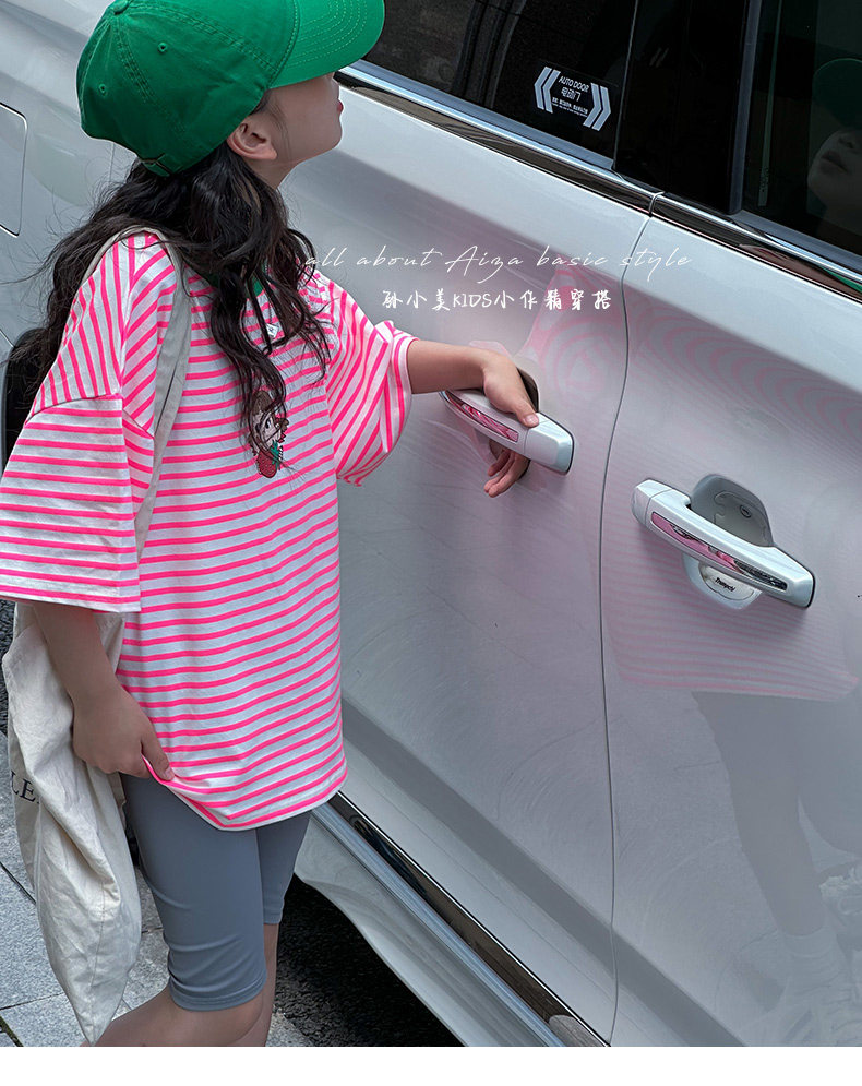 韓國童裝女童T恤兒童短袖上衣2025夏裝新款女大童條紋衣服百搭潮t