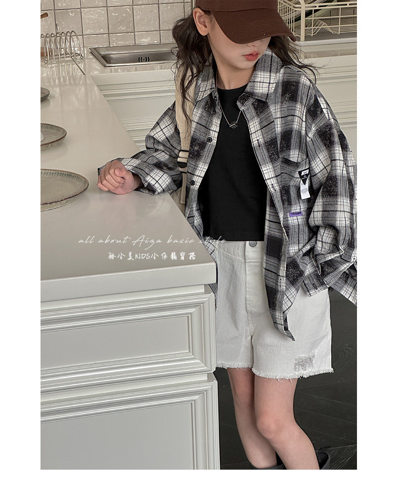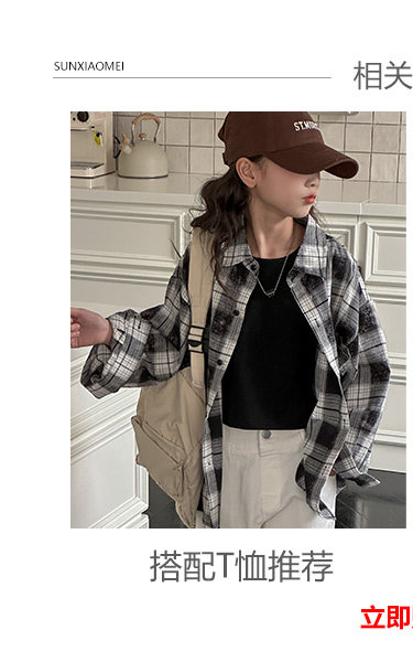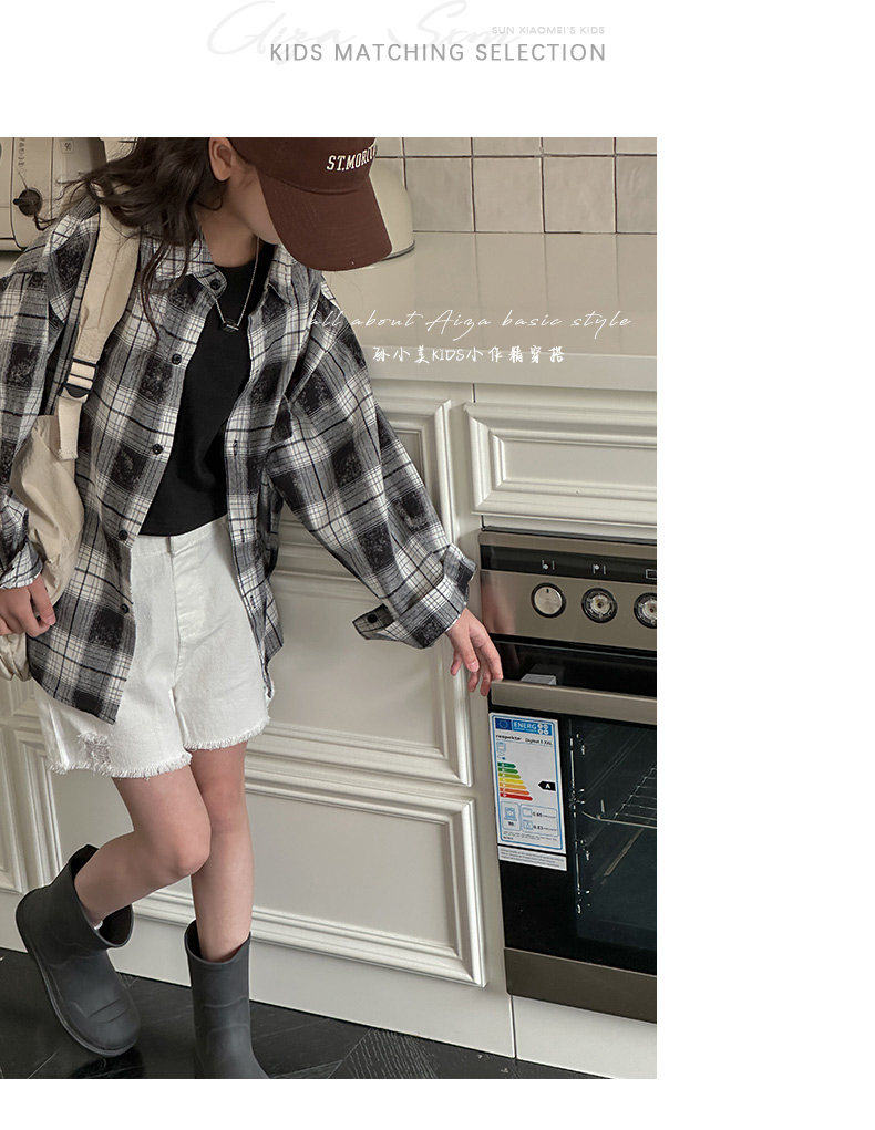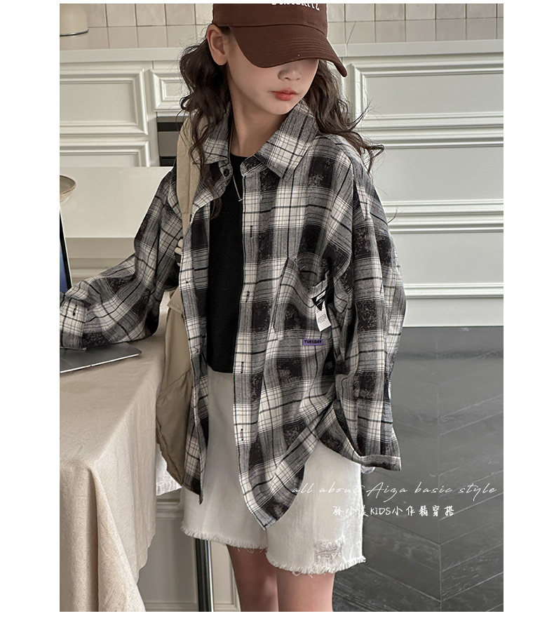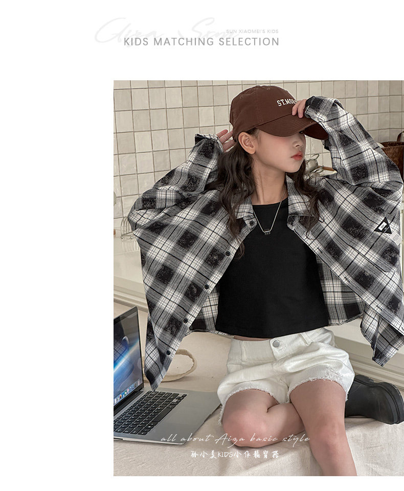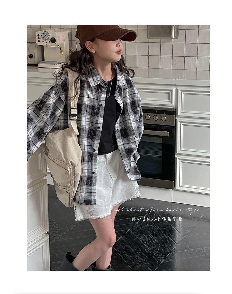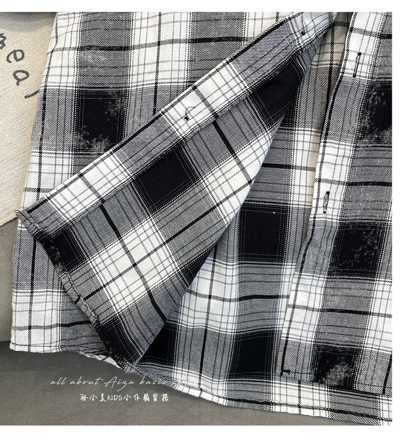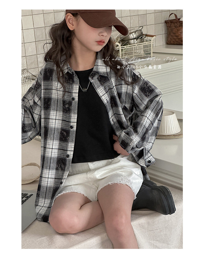 韓國女童黑白格子襯衫2025秋裝韓新款兒童外套女大童春秋洋氣上衣