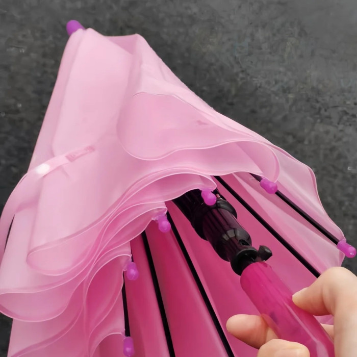 遇光變色雨繖磨砂透明長柄繖變紫粉色小清新加加大加厚自動氣質紫