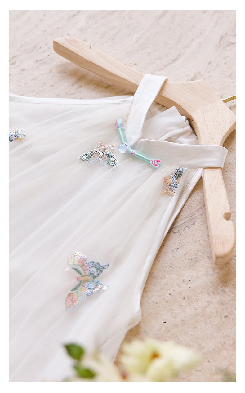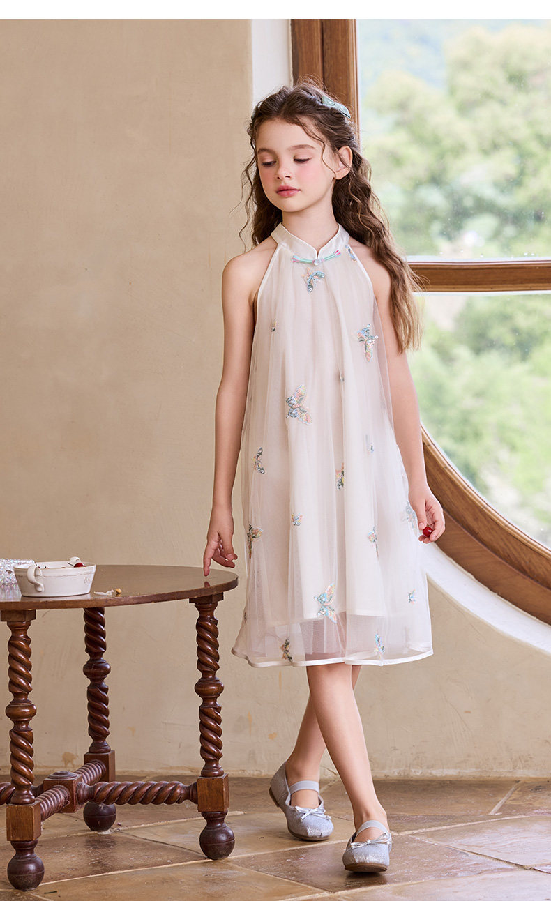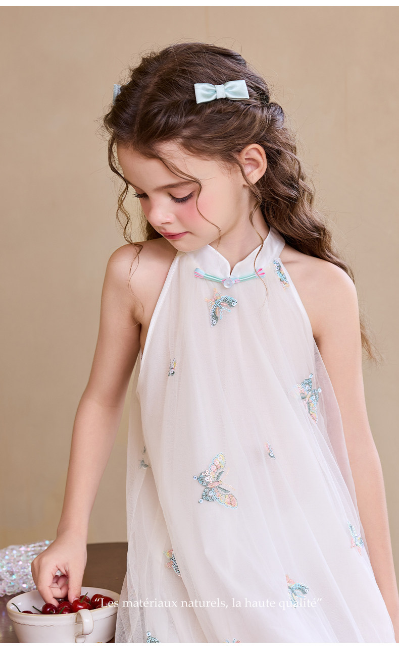 Little Naive兒童連衣裙夏季新款綉花旗袍裙女童新中式掛脖網紗裙