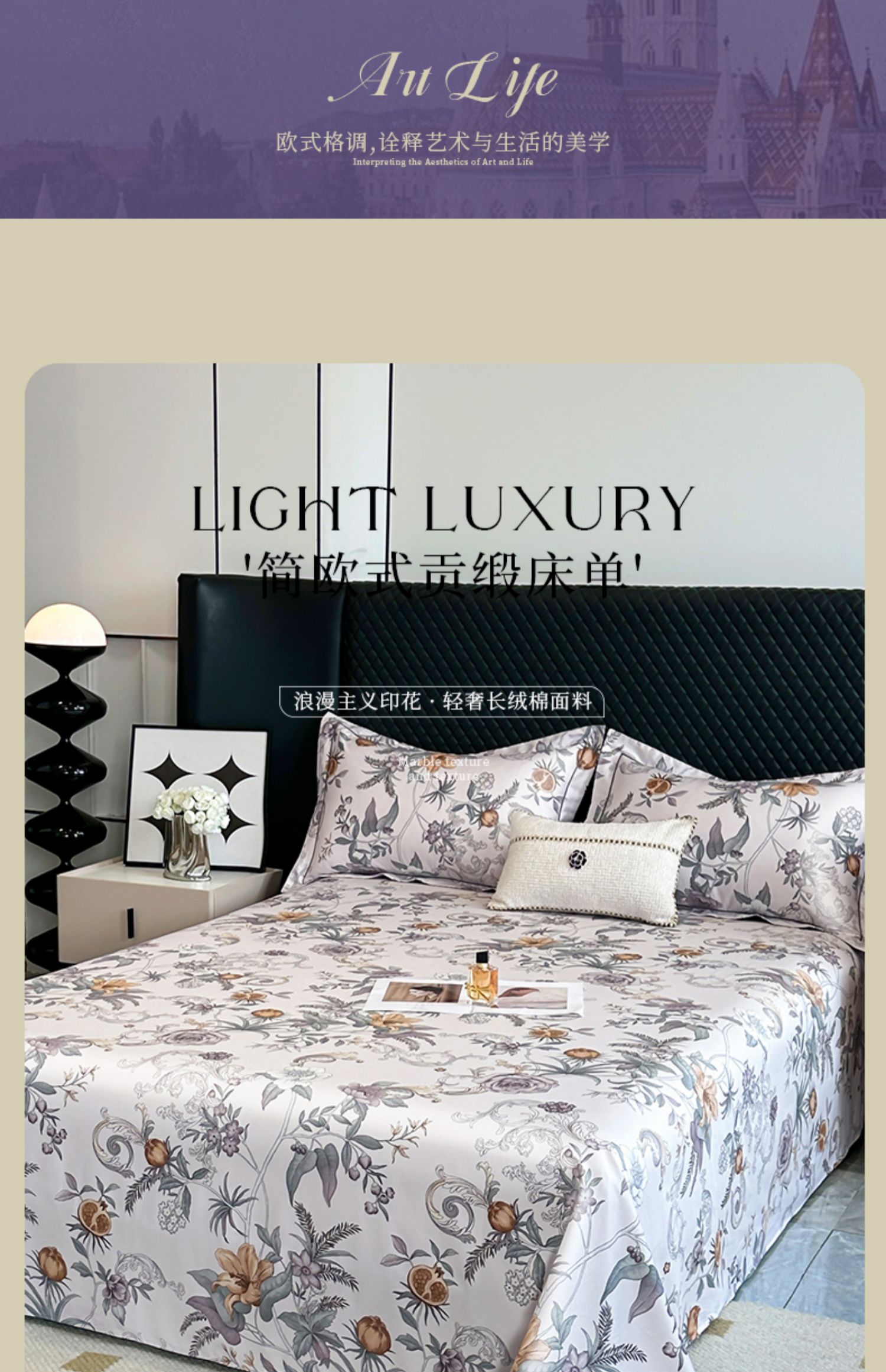 印花貢緞床單新疆長絨棉床單單件純棉100全棉單雙人貢緞被單尺寸