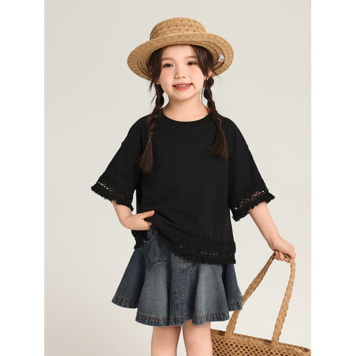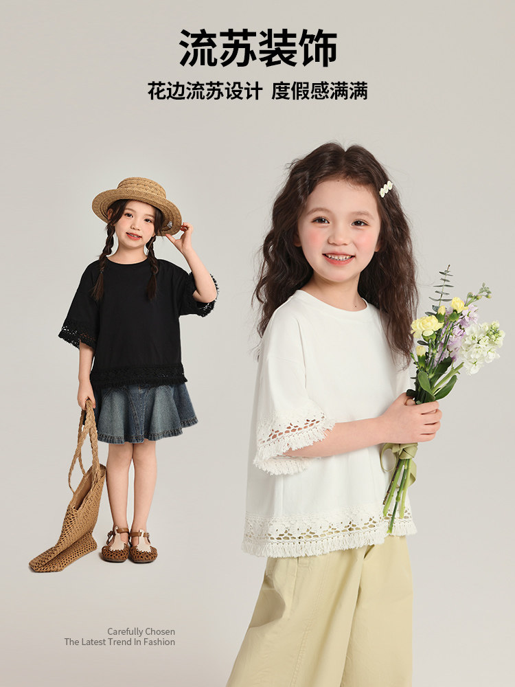 布丁哈魯童裝夏裝女童洋氣短袖2026夏季波西米亞兒童休閒純棉T恤