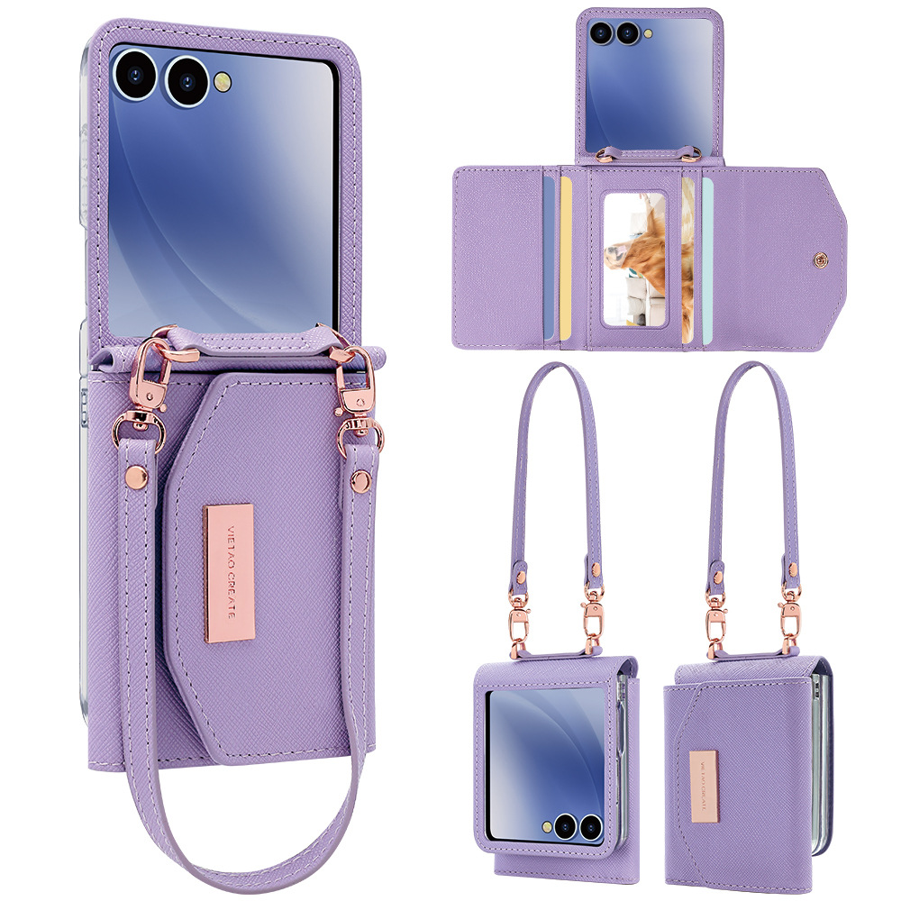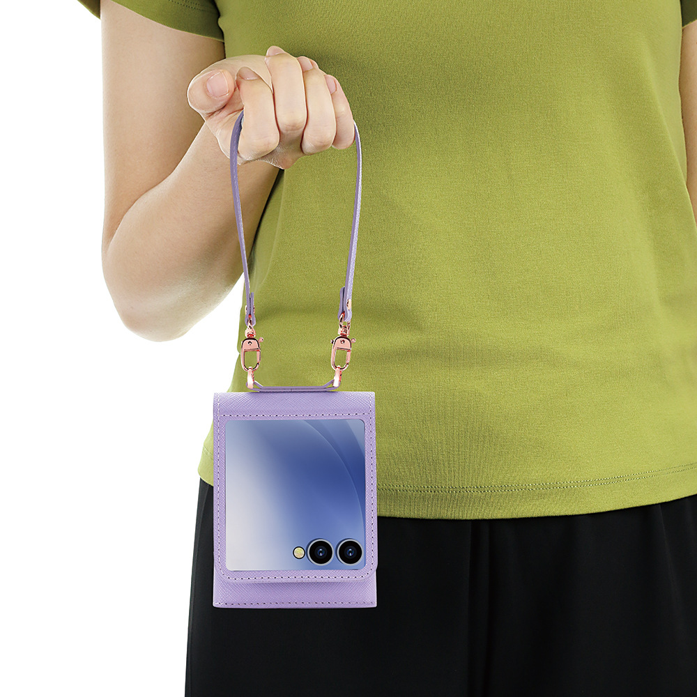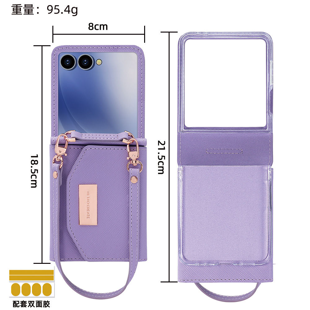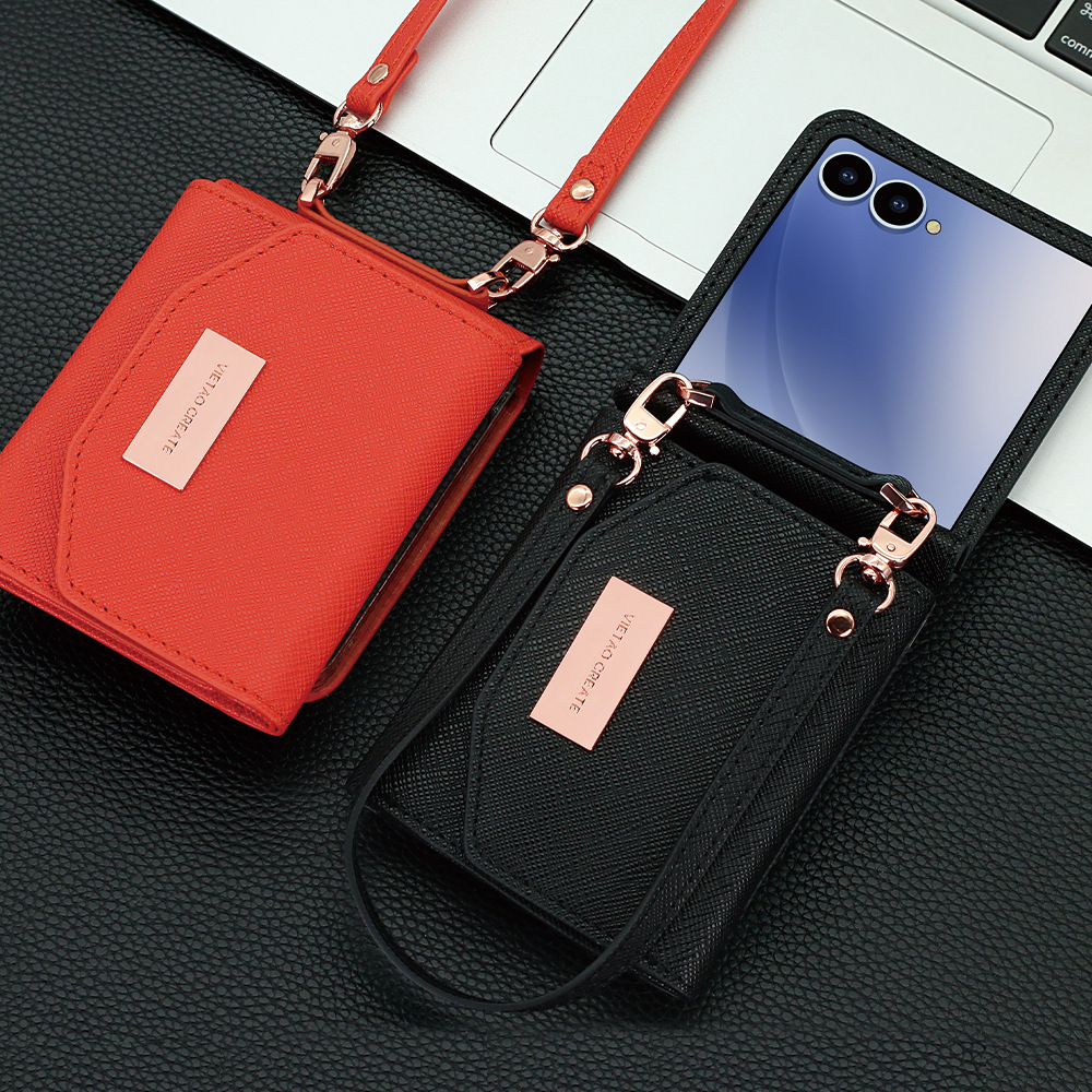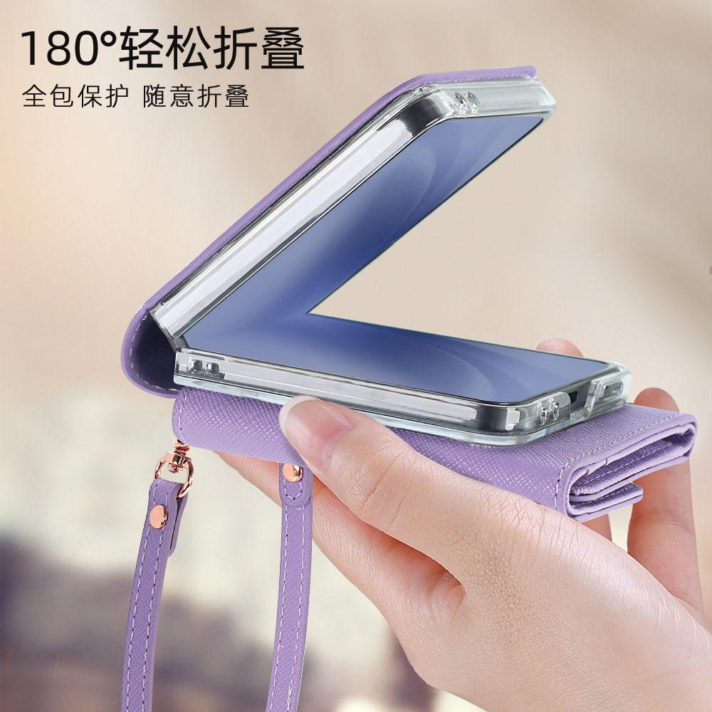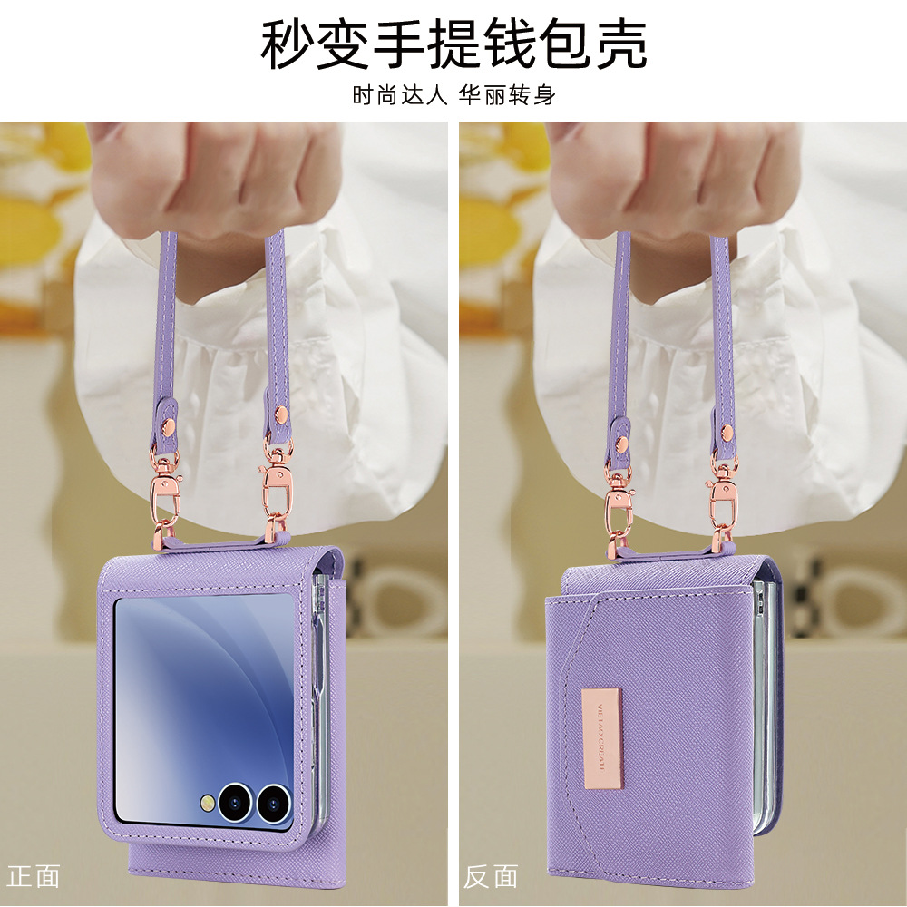 適用三星zFlip7手機殼日韓時尚掛繩卡包Flip6手提腕帶錢包手機套
