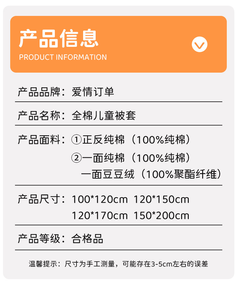 a類純棉兒童被套100全棉120x150cm200單件嬰兒幼兒園寶寶被罩女孩