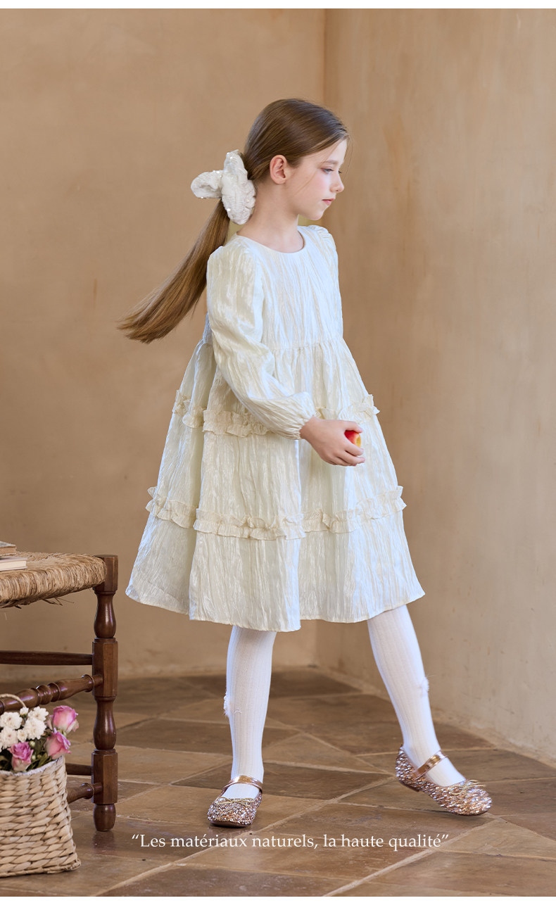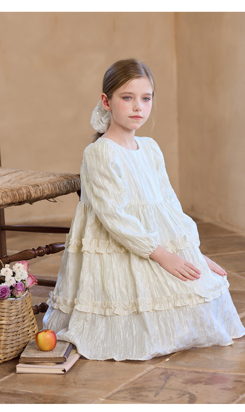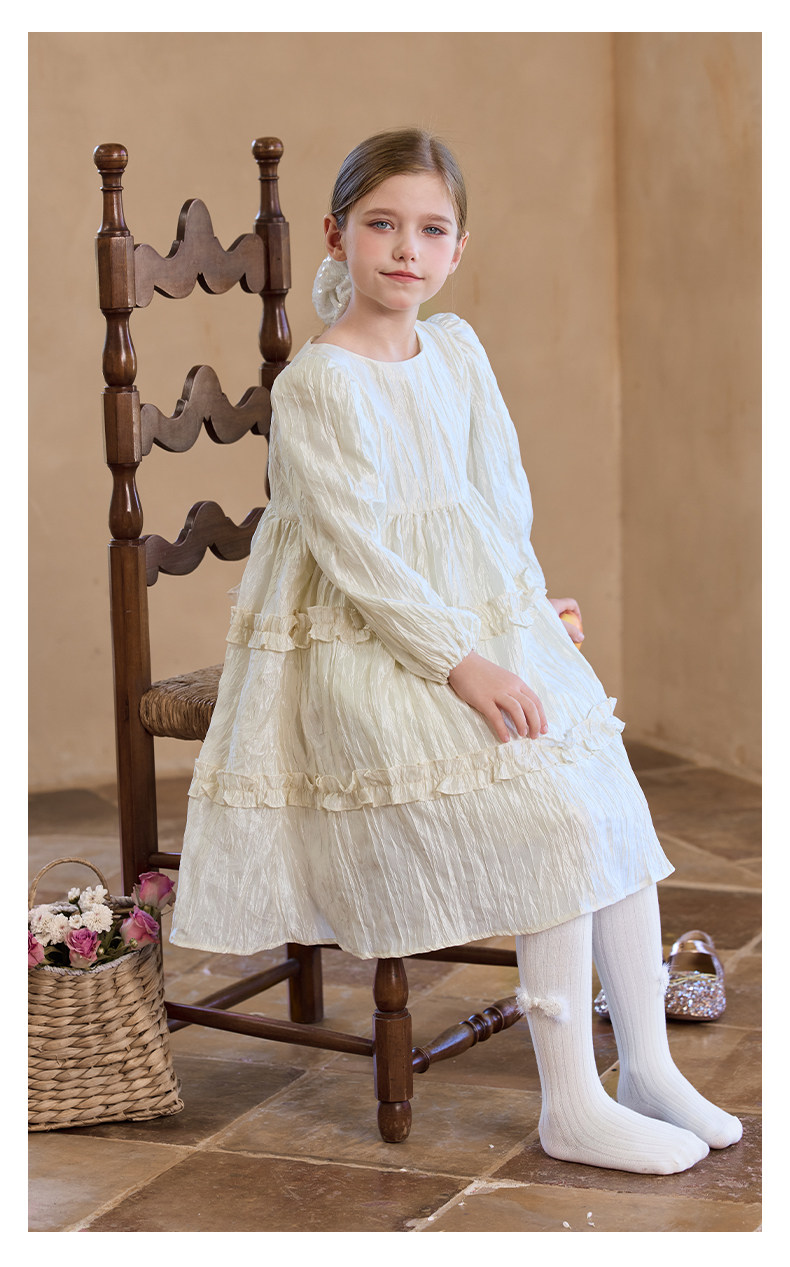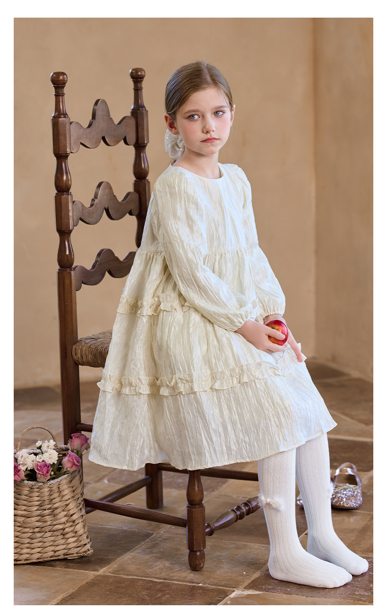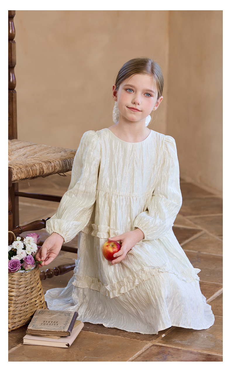 Little Naive女童連衣裙秋冬新款光澤壓皺高級感公主裙兒童禮服裙
