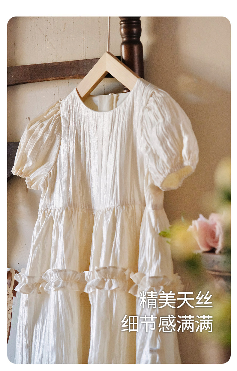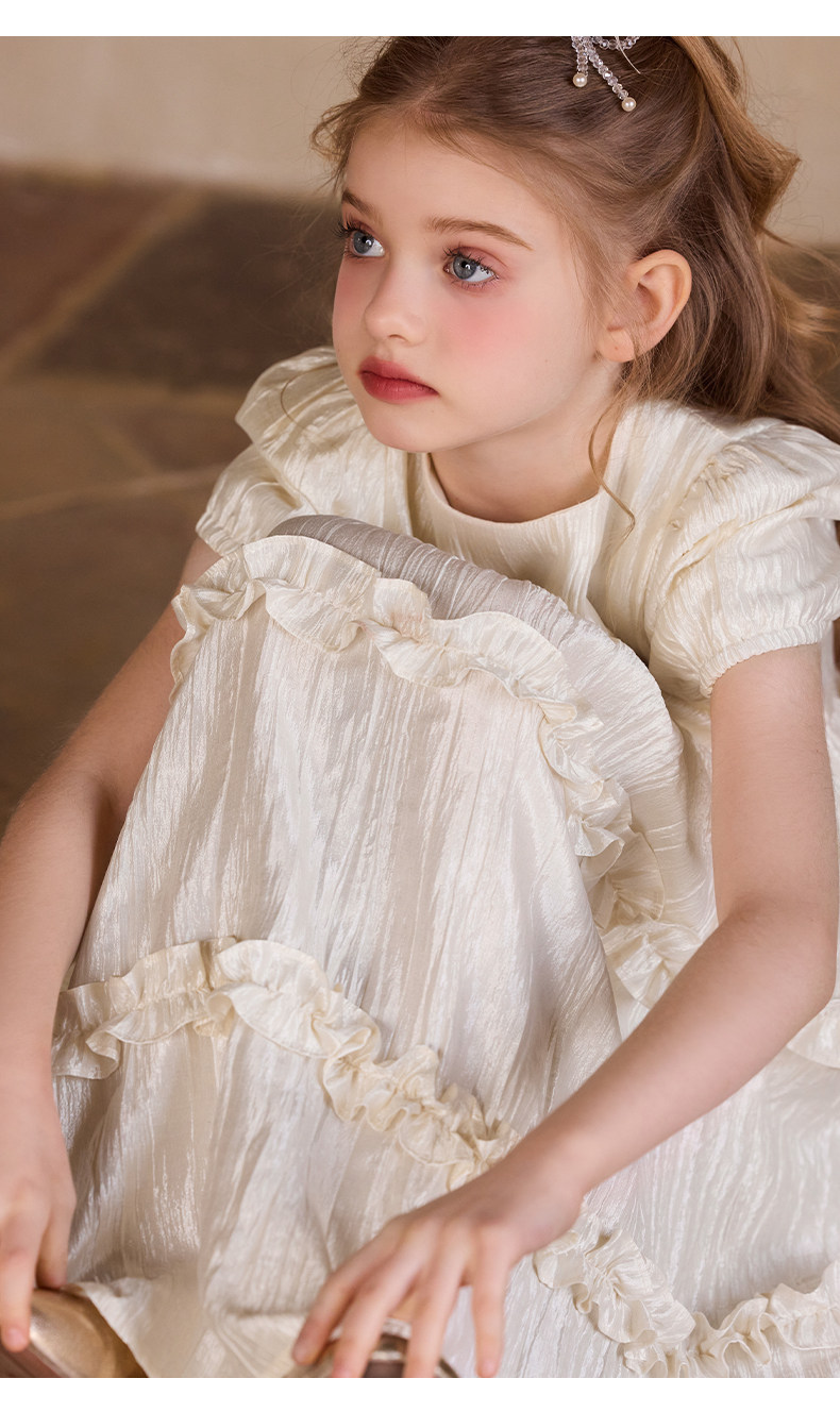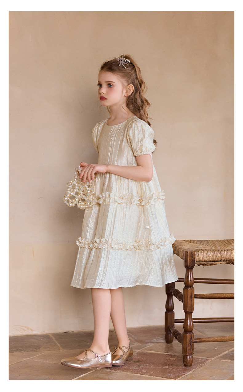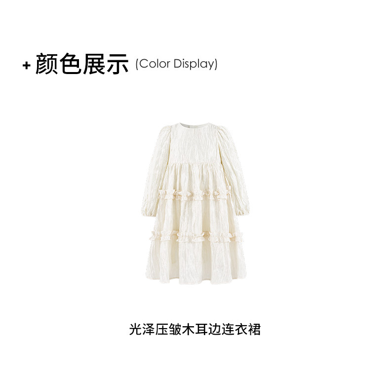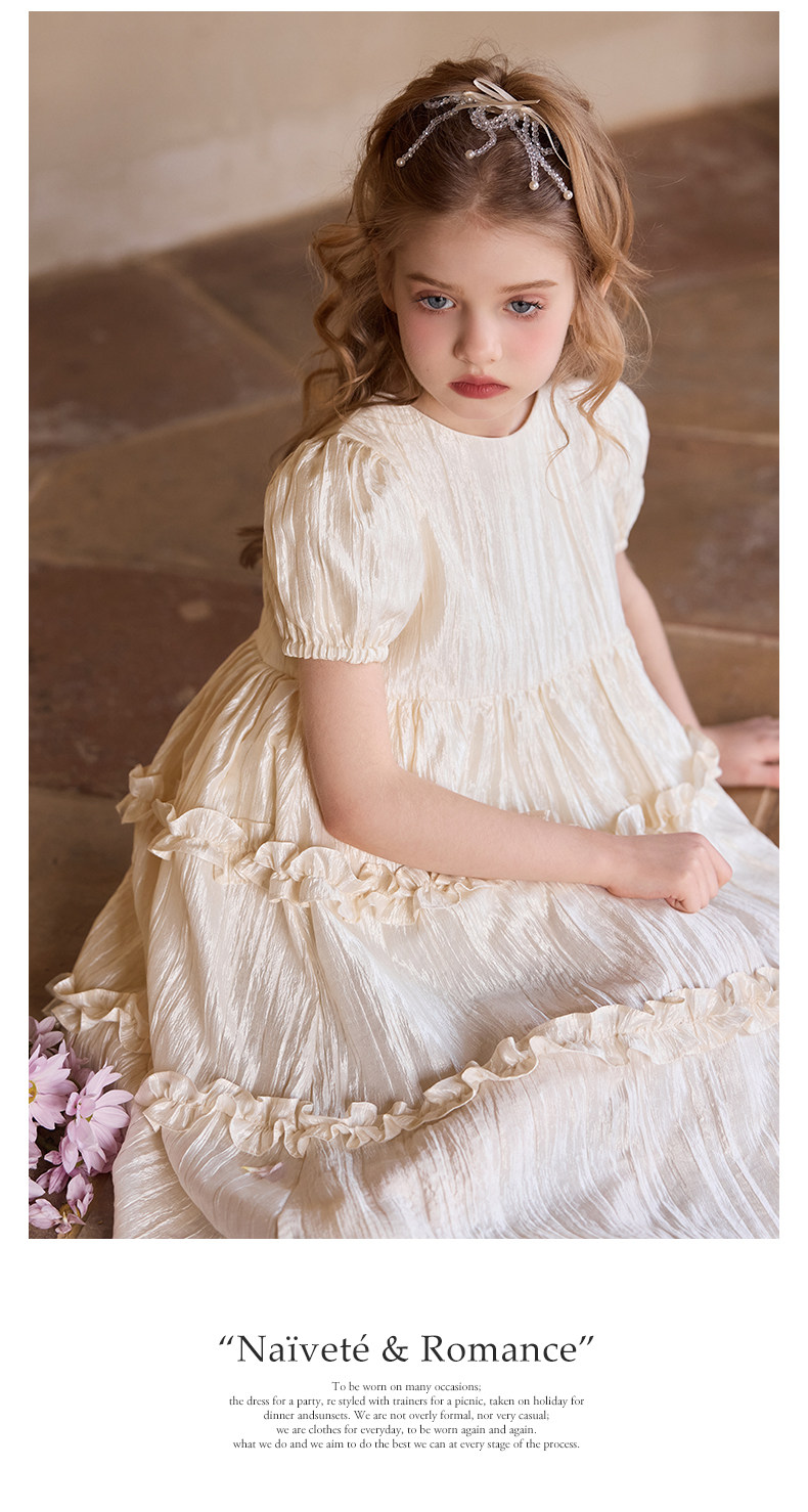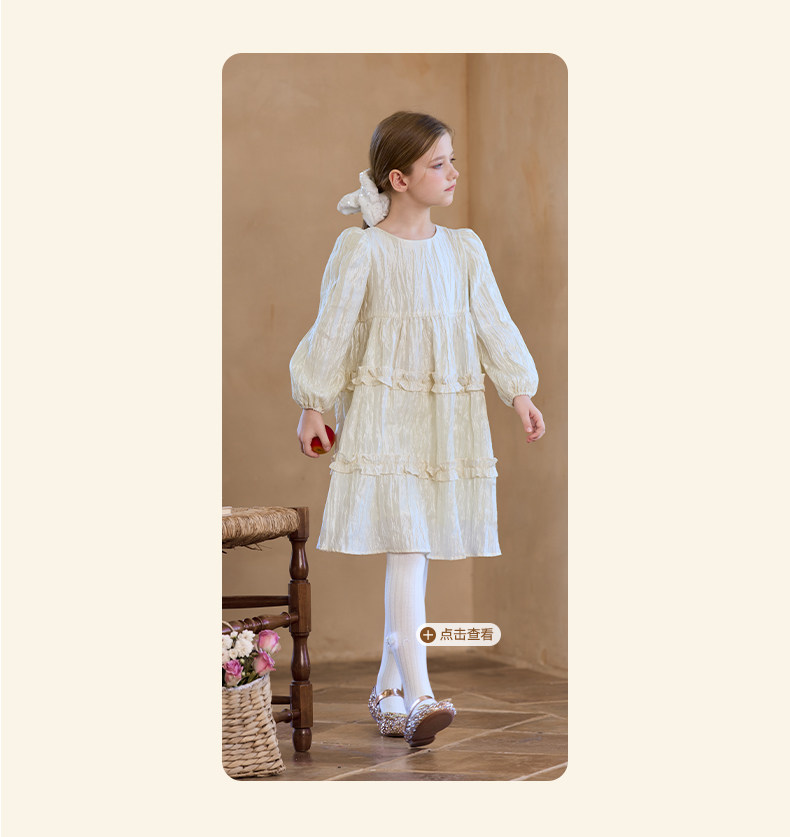 Little Naive女童連衣裙秋冬新款光澤壓皺高級感公主裙兒童禮服裙