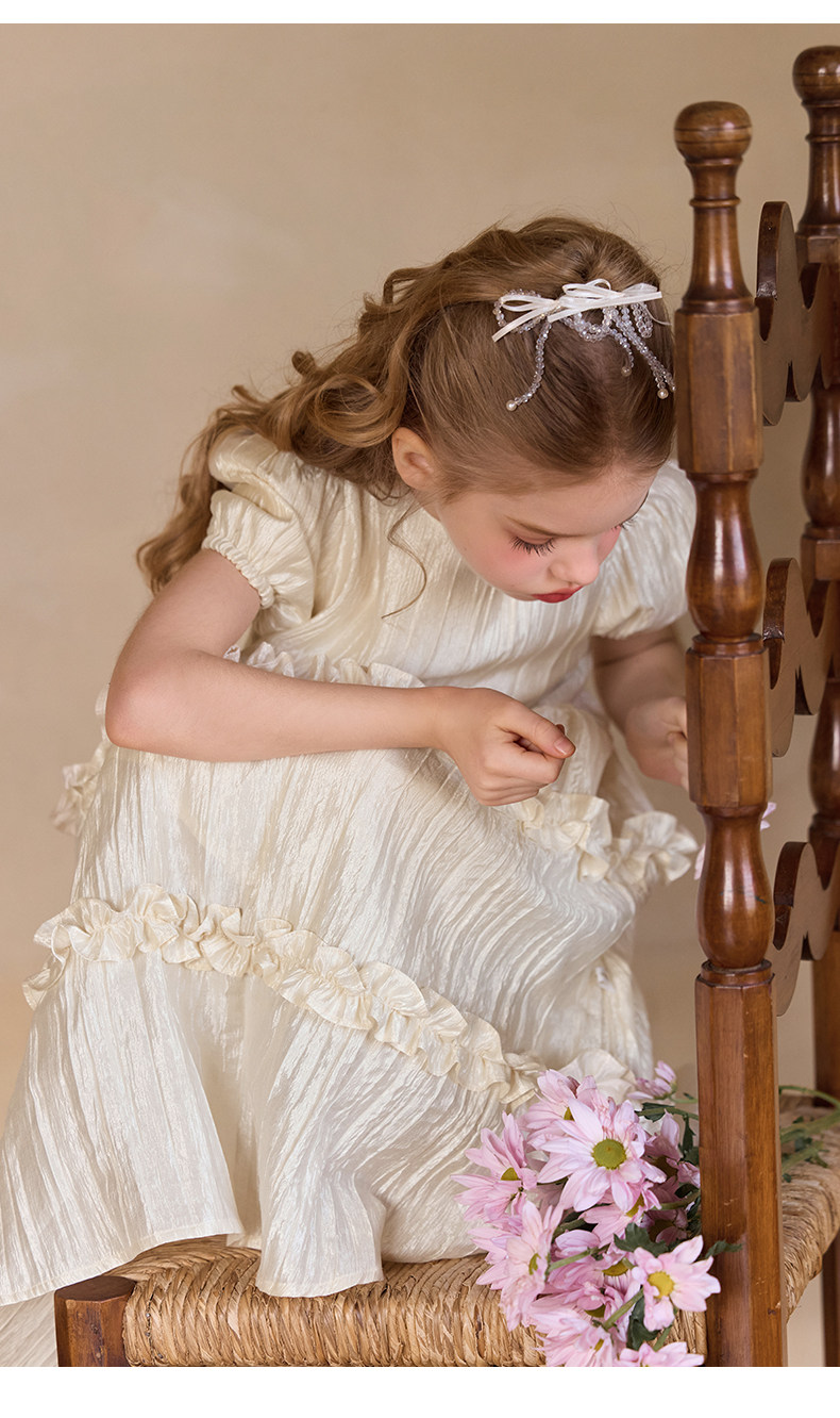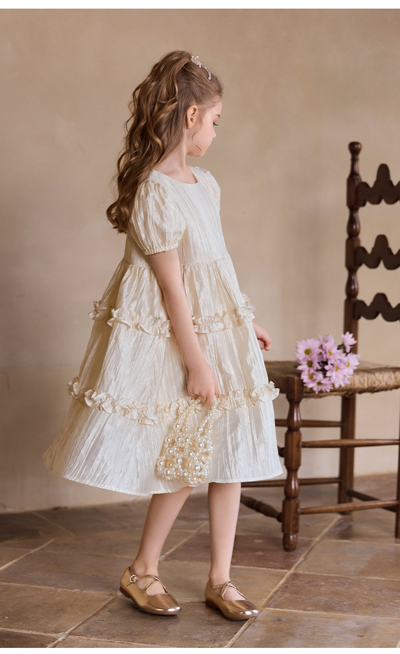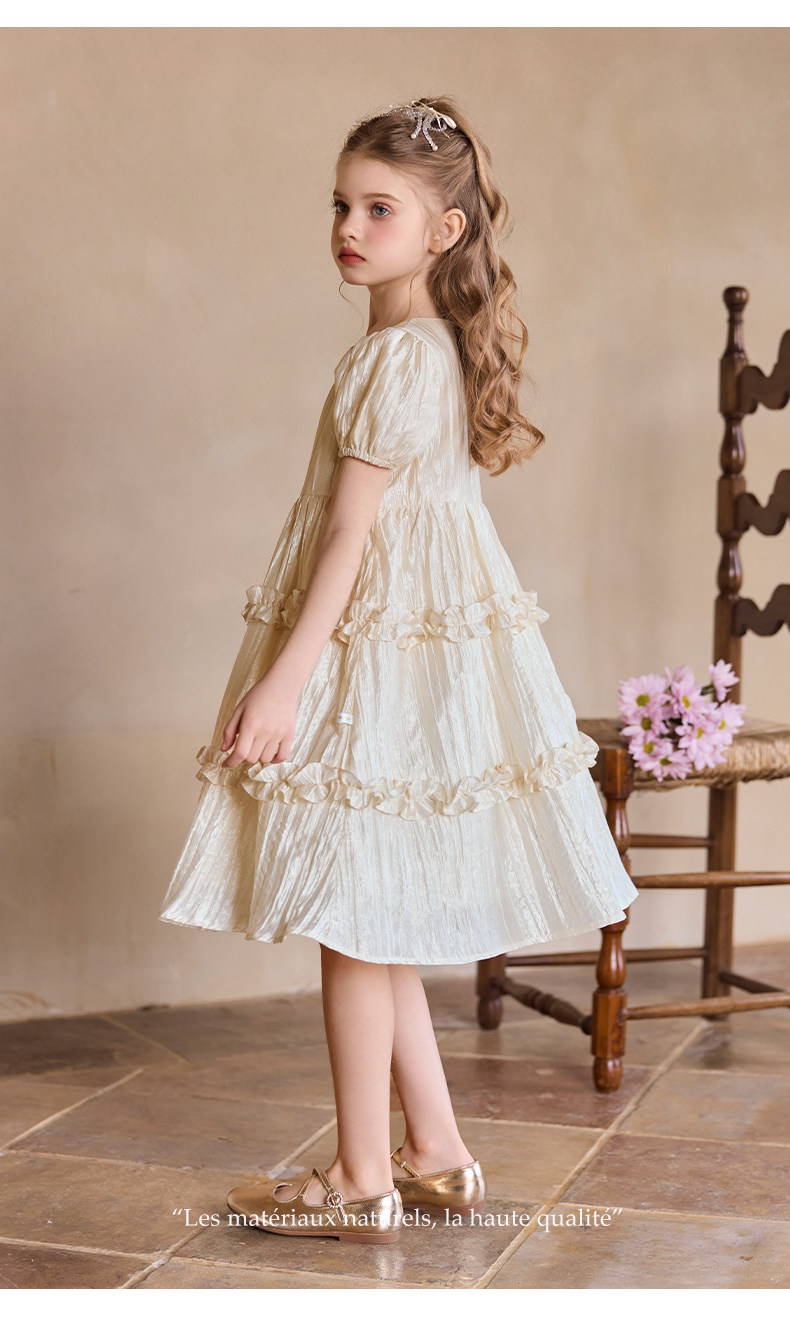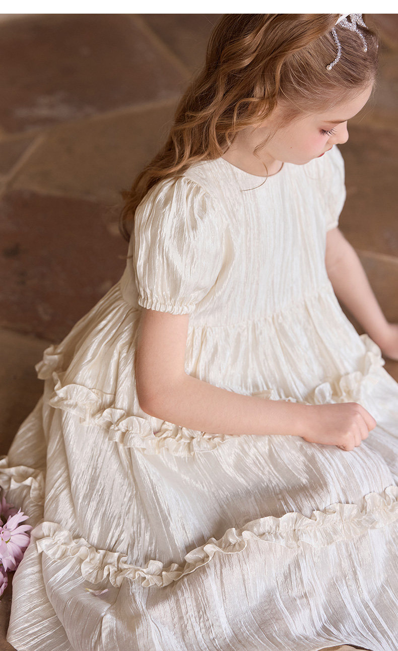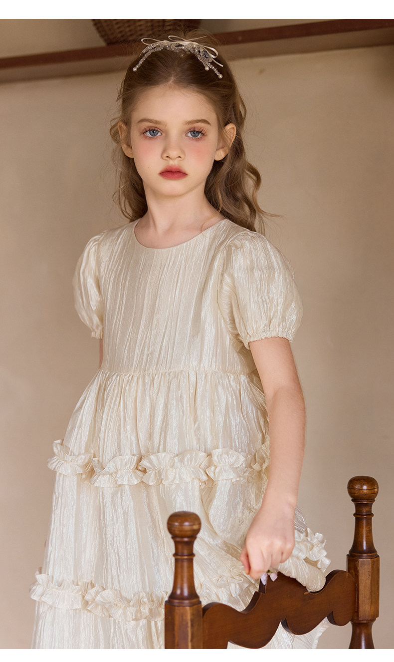 Little Naive女童連衣裙秋冬新款光澤壓皺高級感公主裙兒童禮服裙