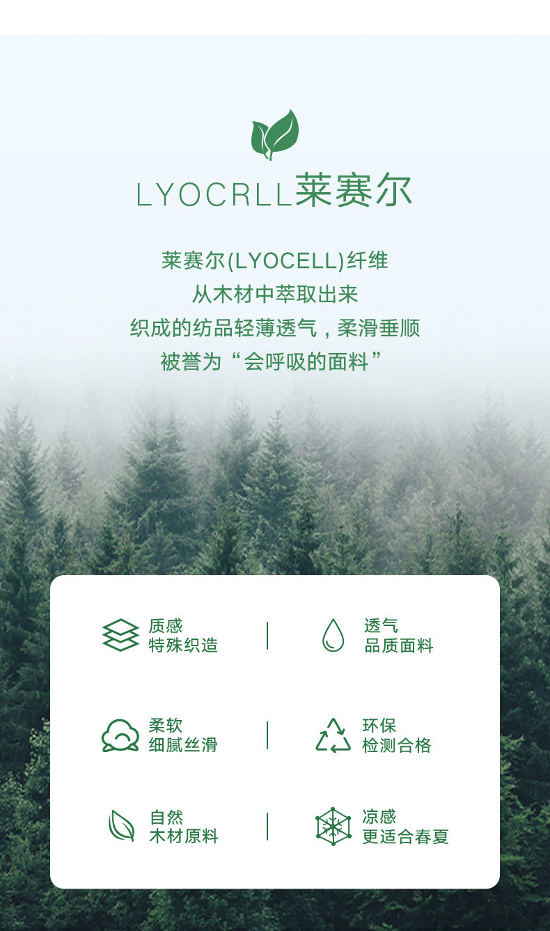 | 材質成分 | 萊賽爾纖維(萊賽爾)49.8% 聚酯纖維30.8% 醋酯纖維(醋纖)19.4% |