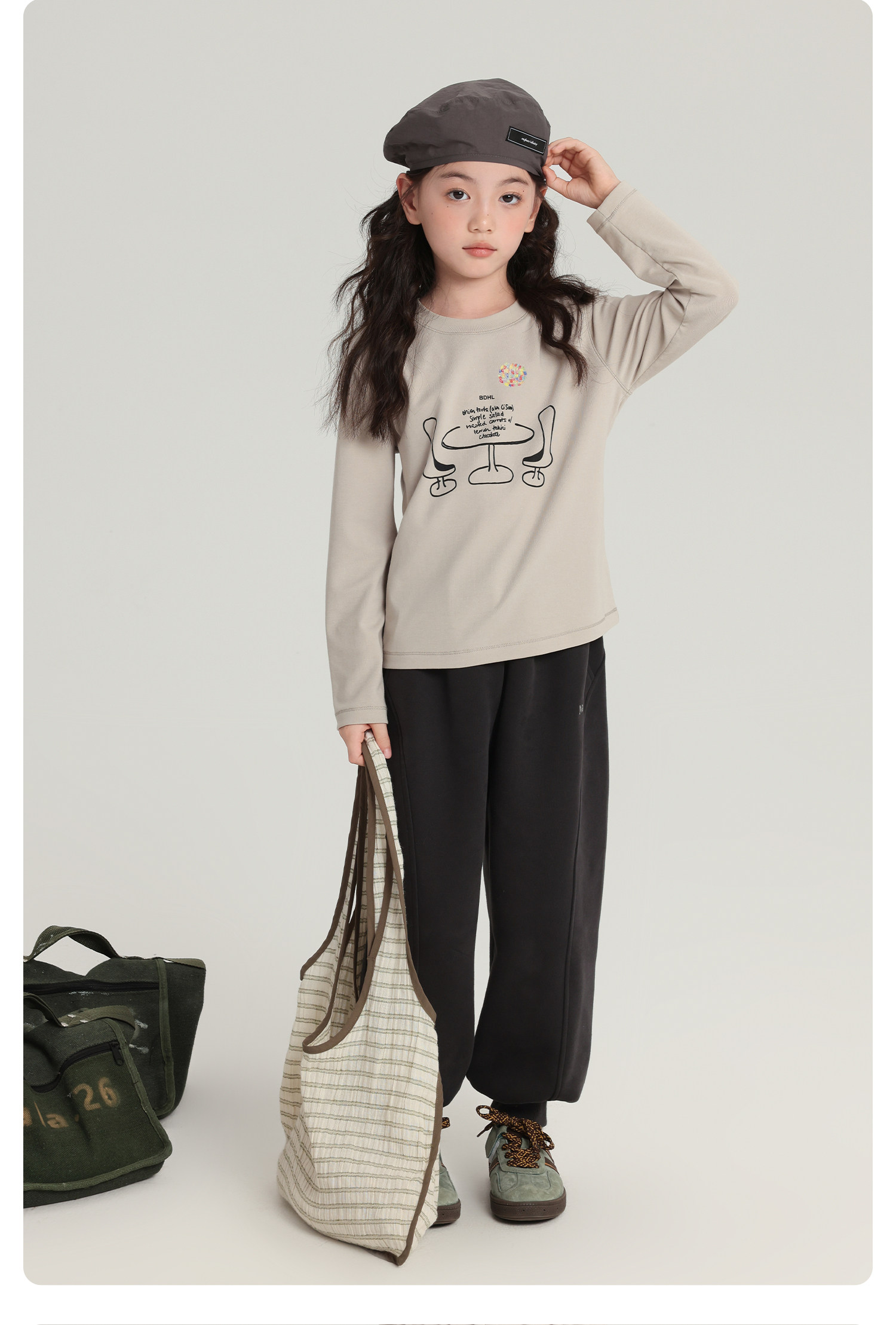 布丁哈魯童裝秋裝女童休閒褲子2026春秋新款兒童英文刺綉寬鬆衛褲