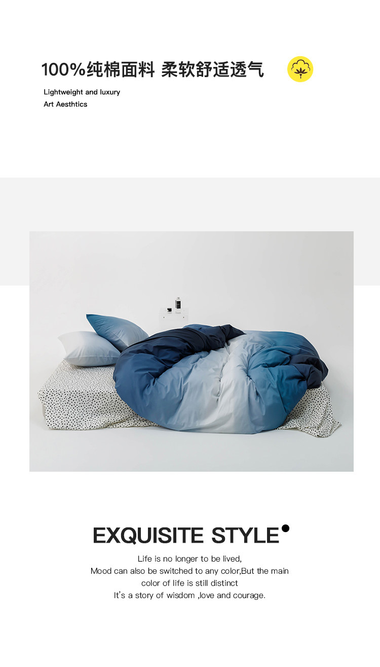 漸變色全棉被套單件150*200*230cm雙人純棉被罩三件套床上四件套