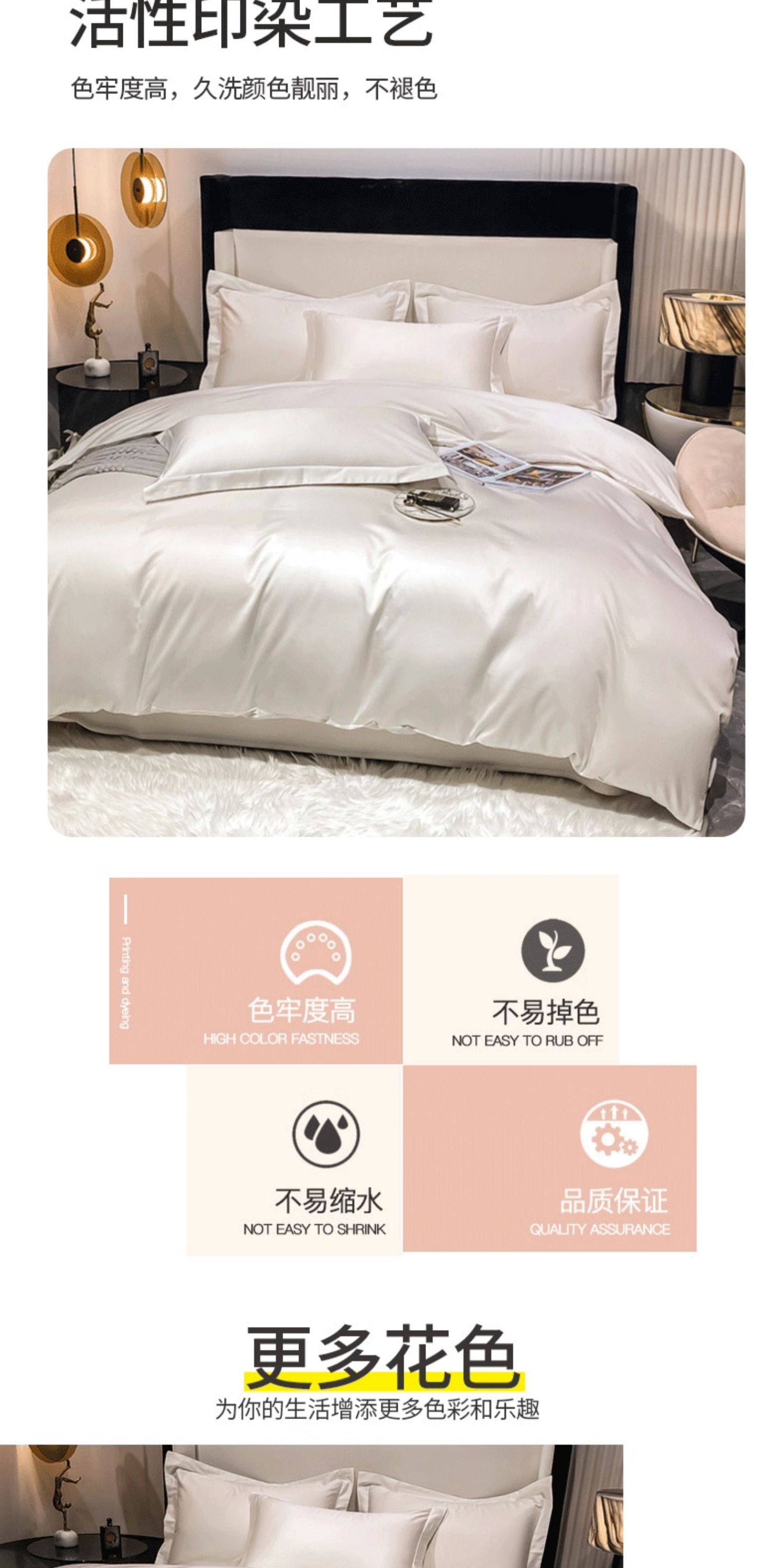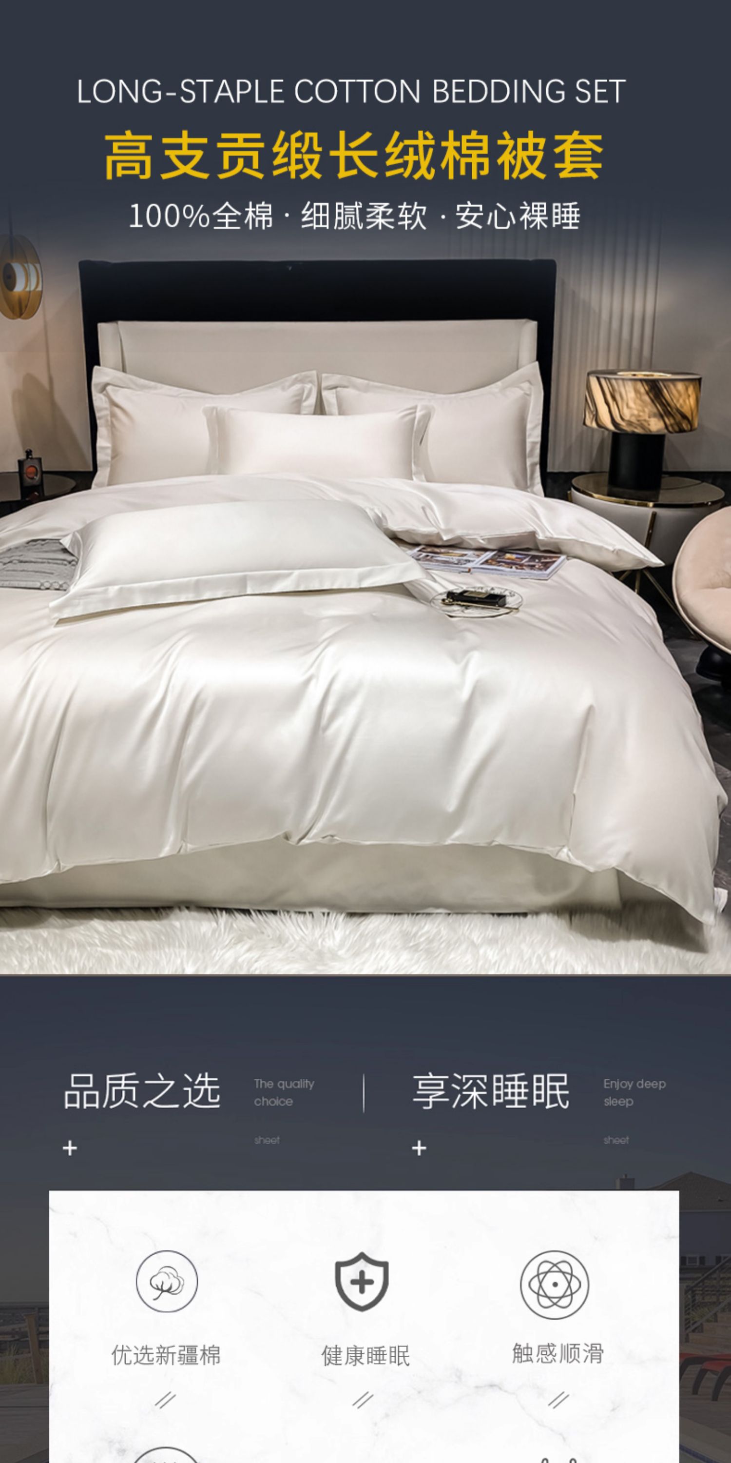 120S純色高支長絨棉被套單件純棉被罩全棉180x200x230白色三件套