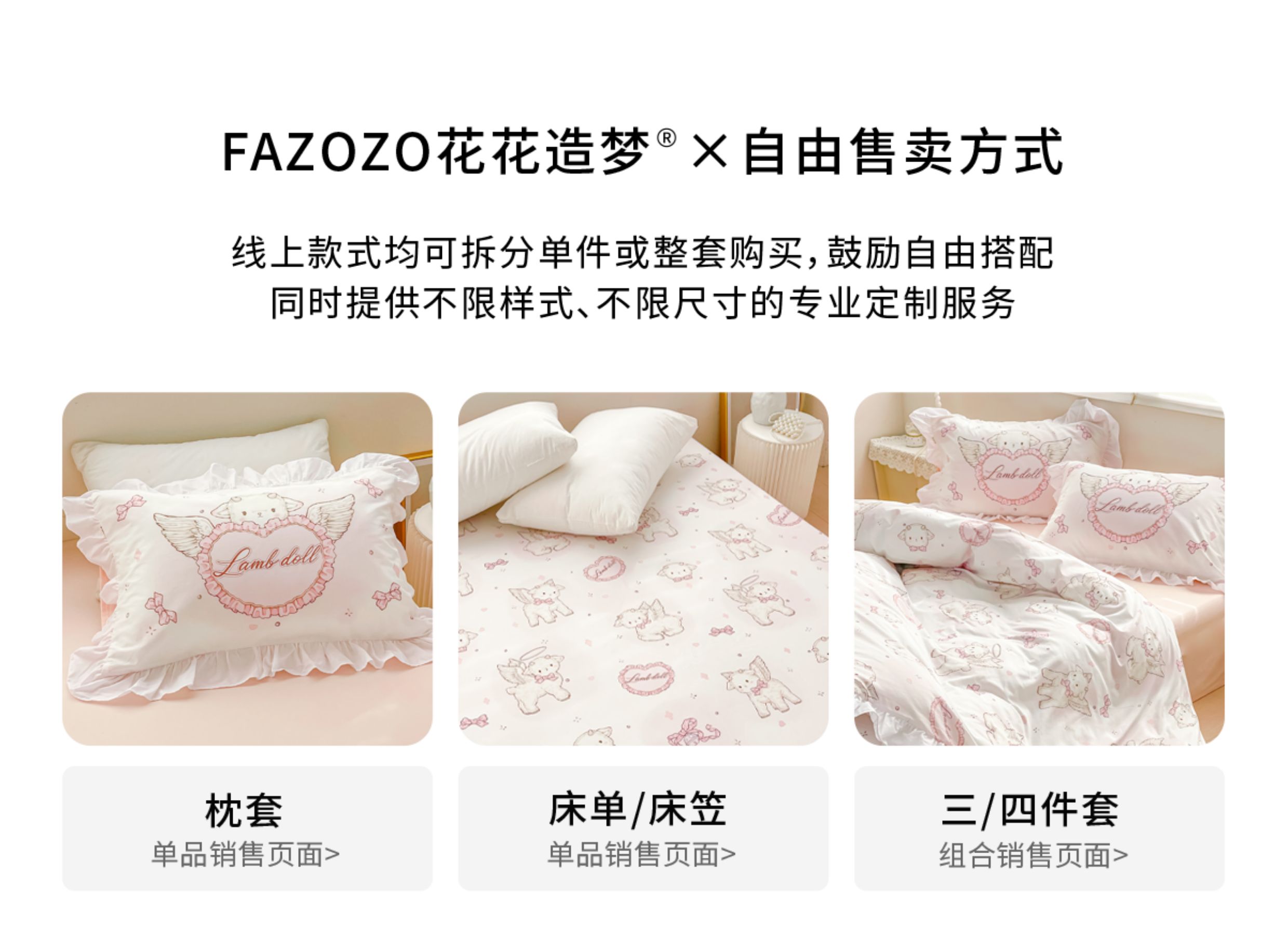 天使小羊 氛圍感原創少女粉全棉荷葉花邊被套純棉被罩單件甜美