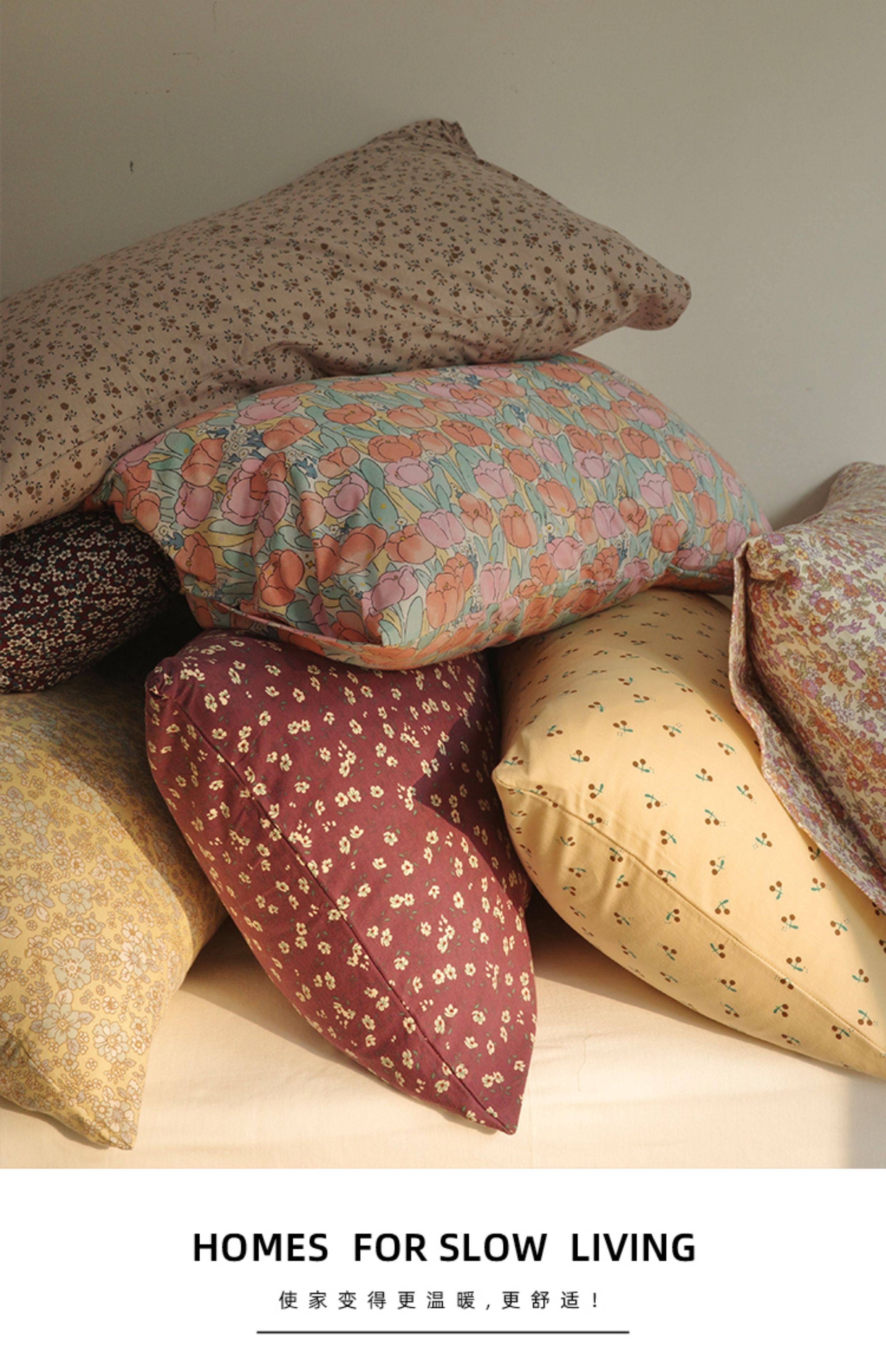 【枕套1個裝】全棉針織棉碎花小清新枕套a類純棉天竺棉單人枕頭套
