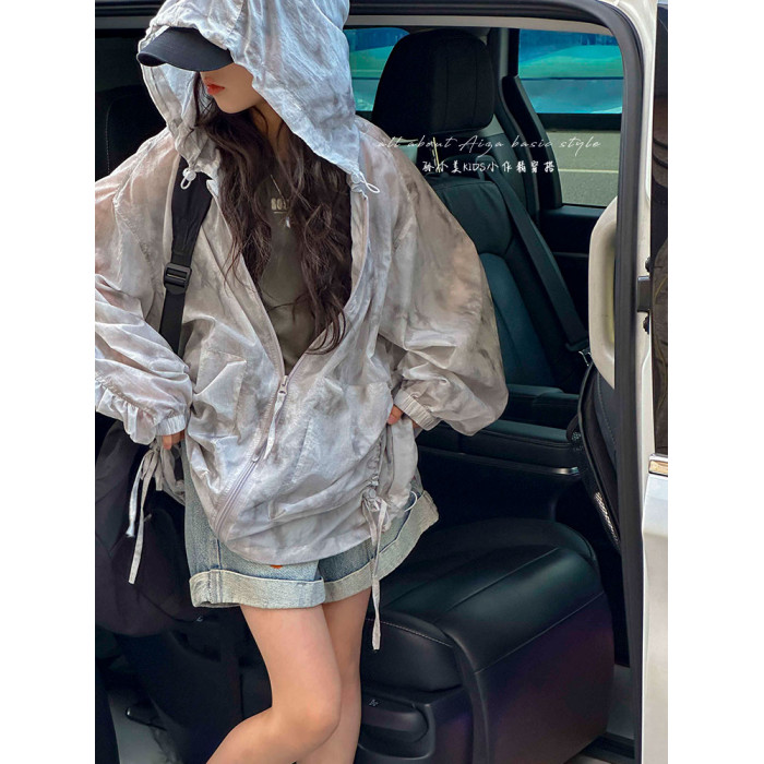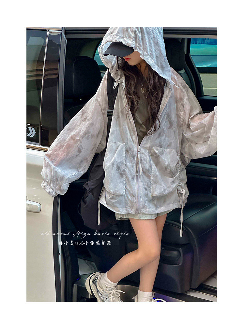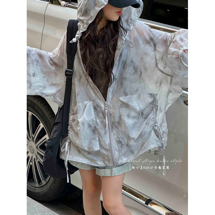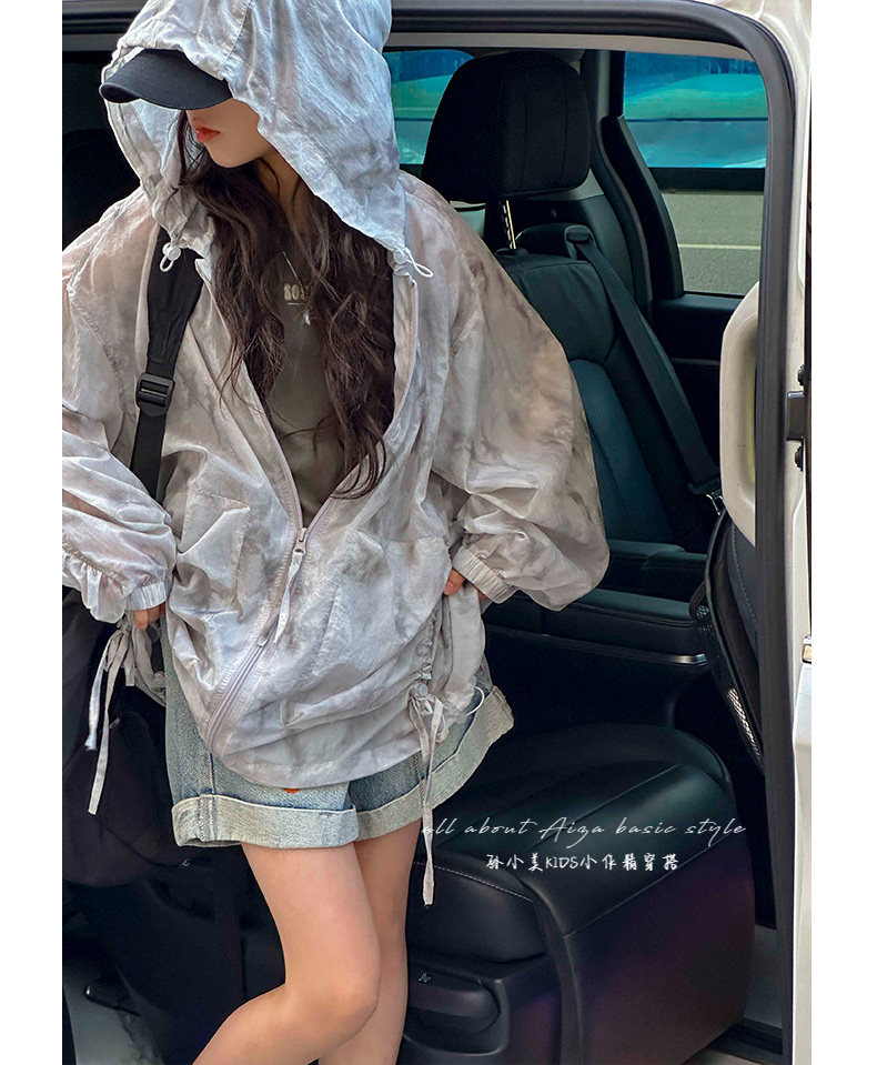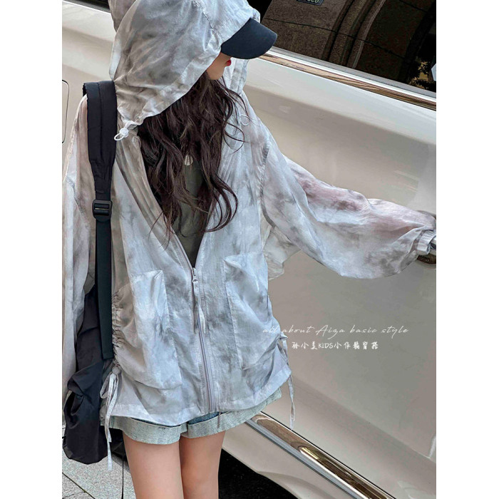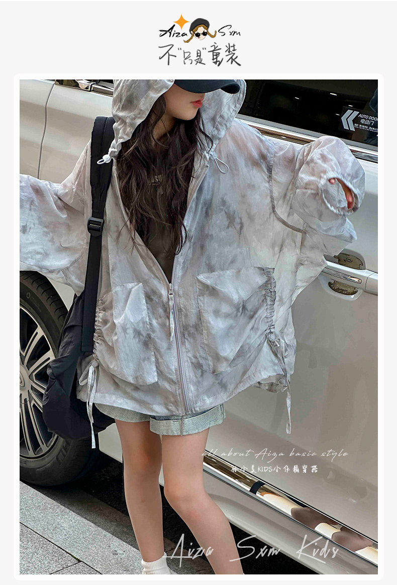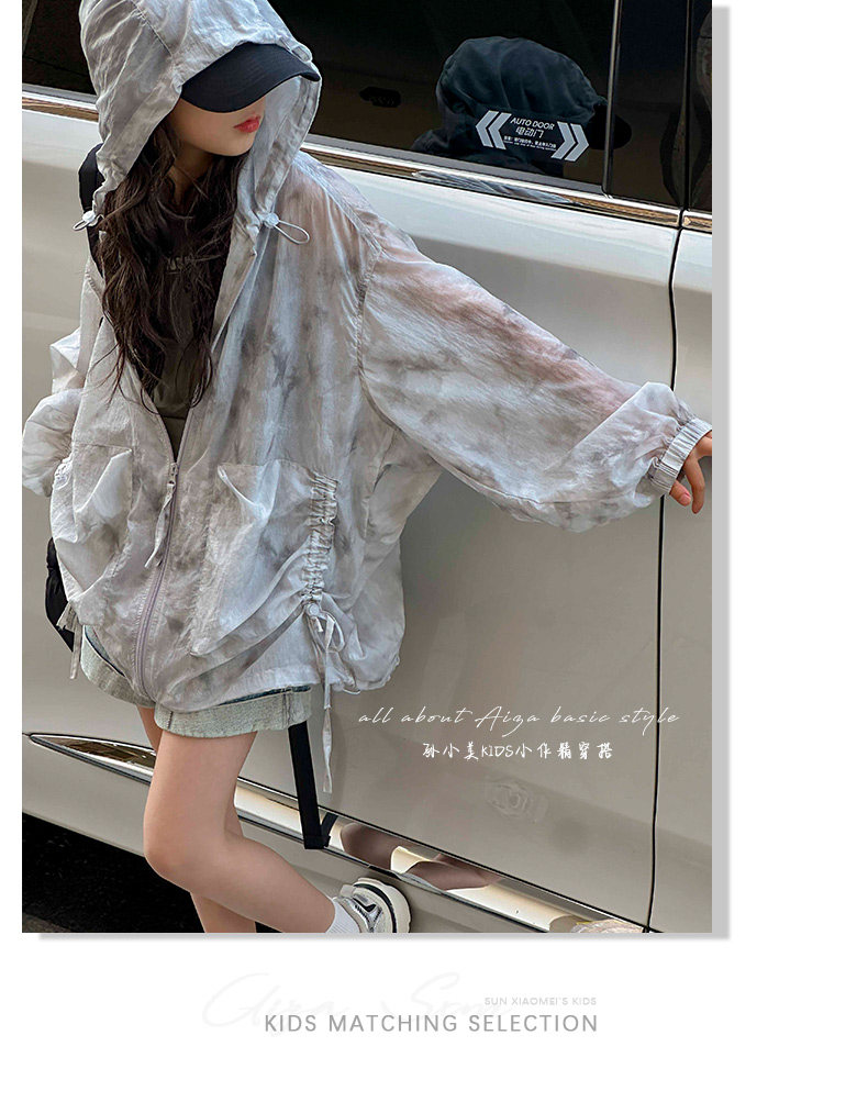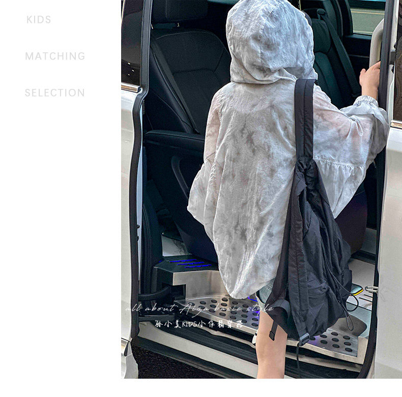 水墨畫紥染女童夏季防曬衫兒童輕薄上衣2025新款女孩防紫外線外套
