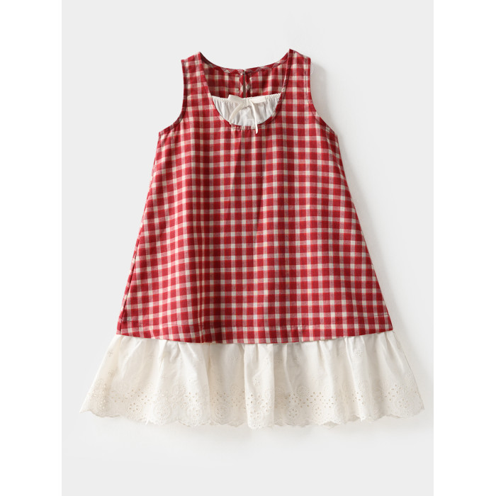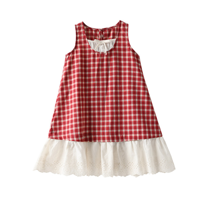 兒童圓領無袖背心裙 女童花邊連衣裙 假兩件 中大童 夏款 童裝