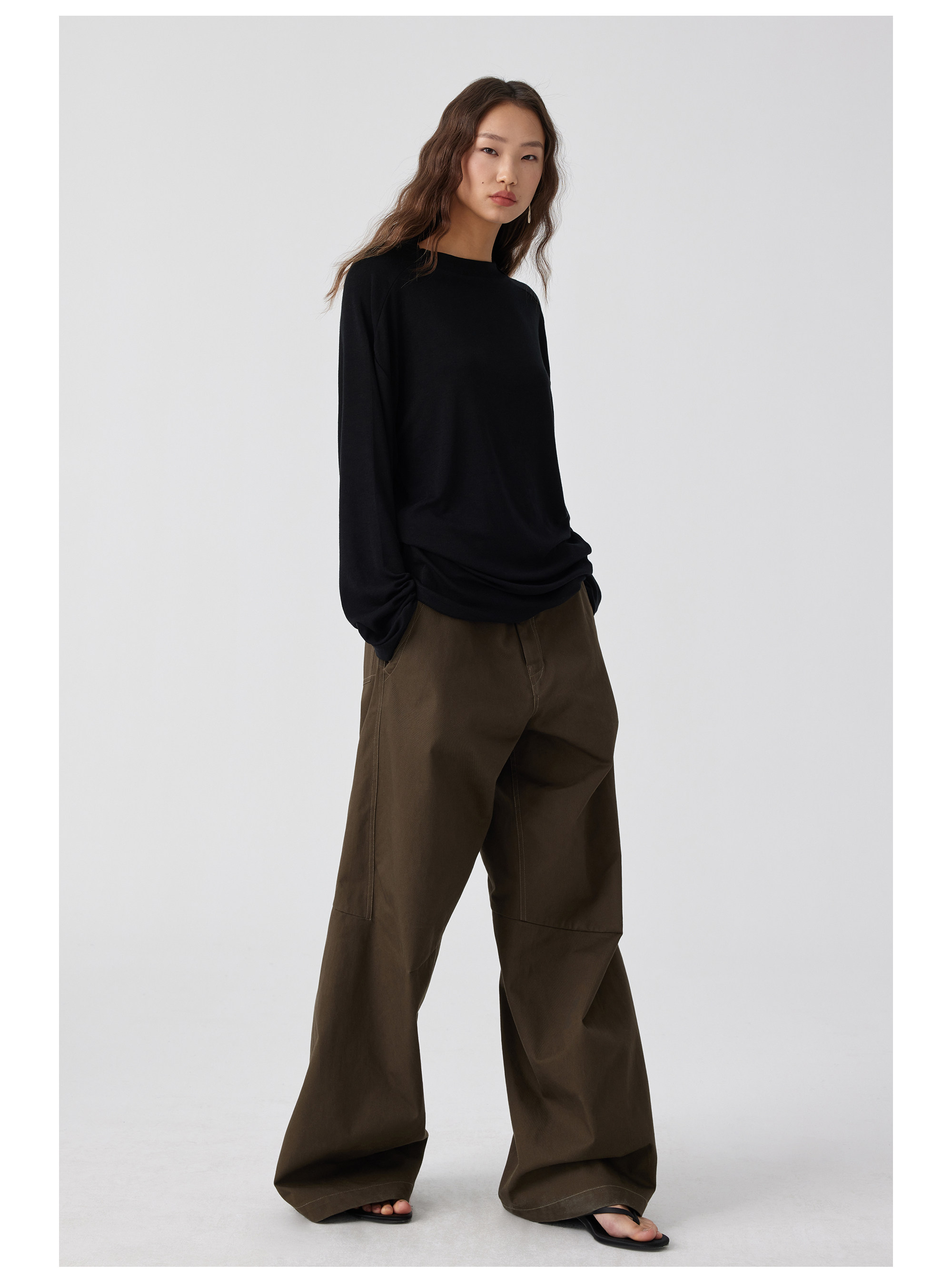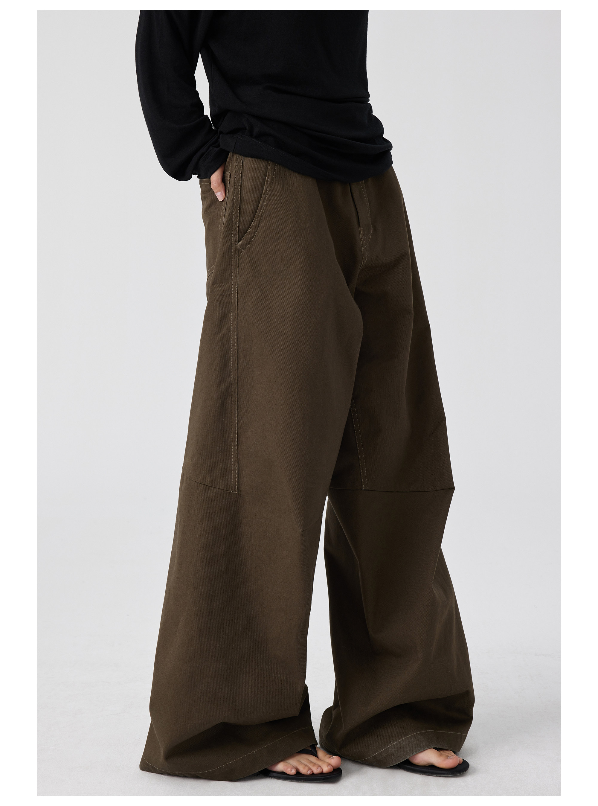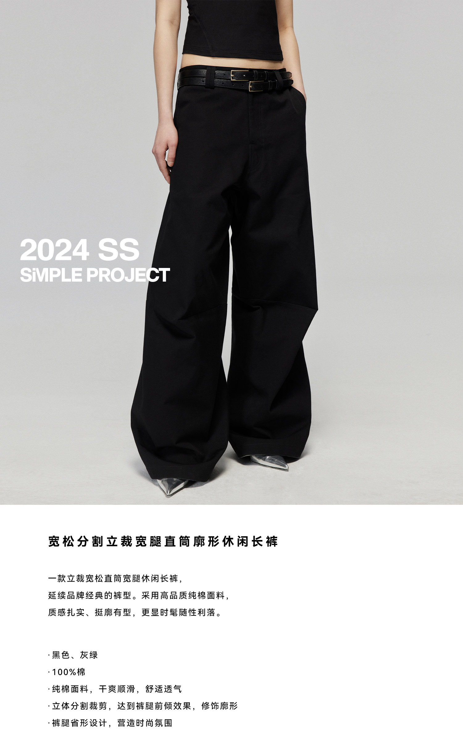 Simple Project 純棉寬鬆立體分割裁剪濶腿褲直筒廓形休閒長褲