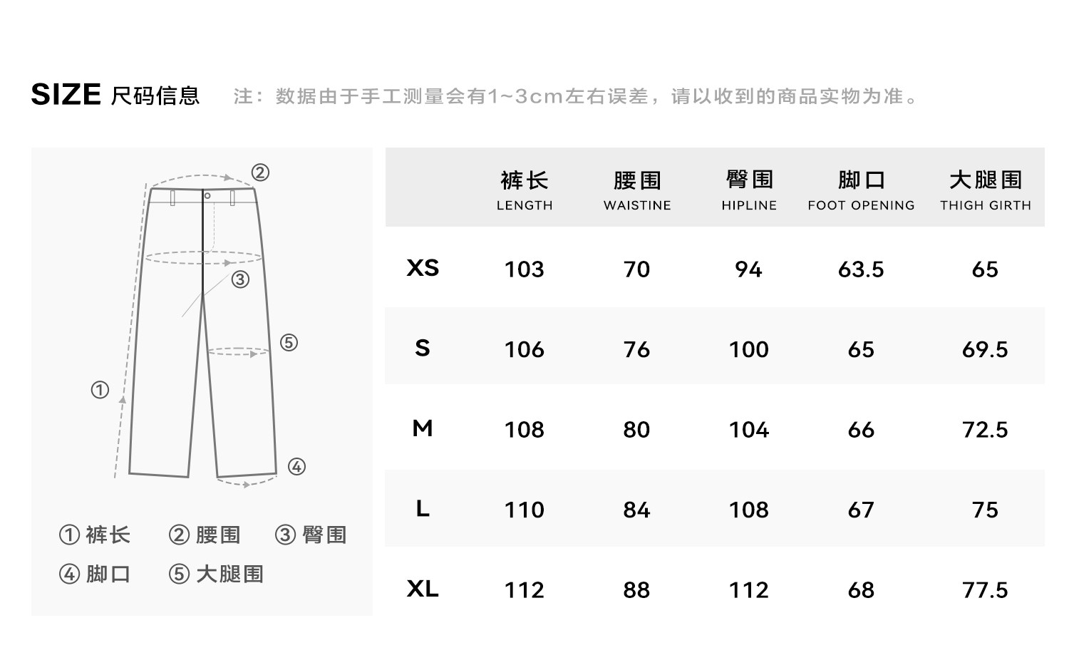 | 褲長 | 長褲 |
