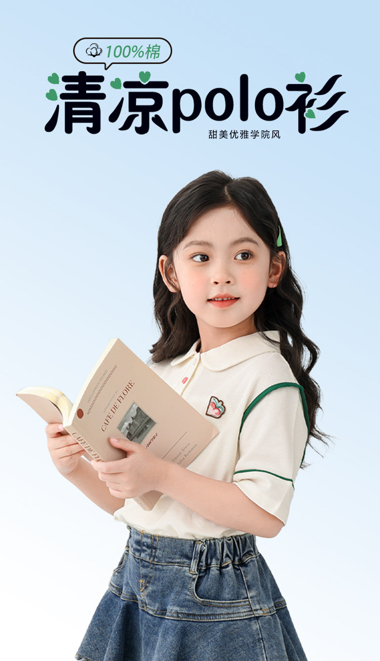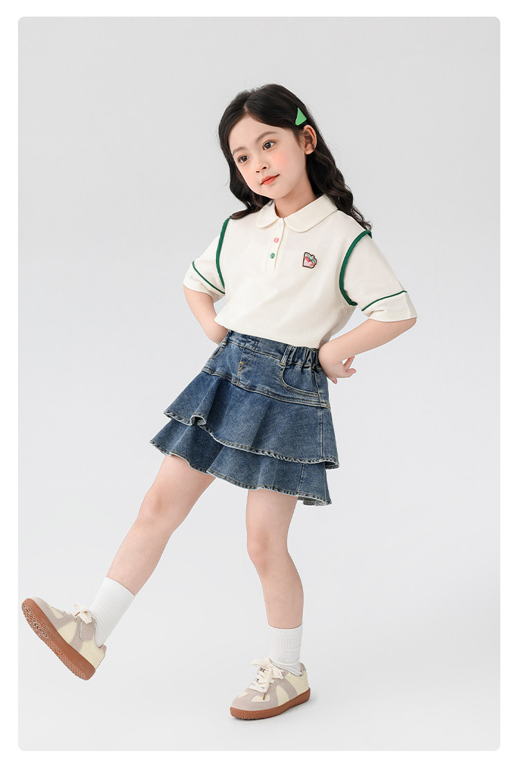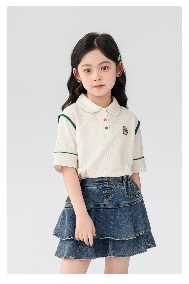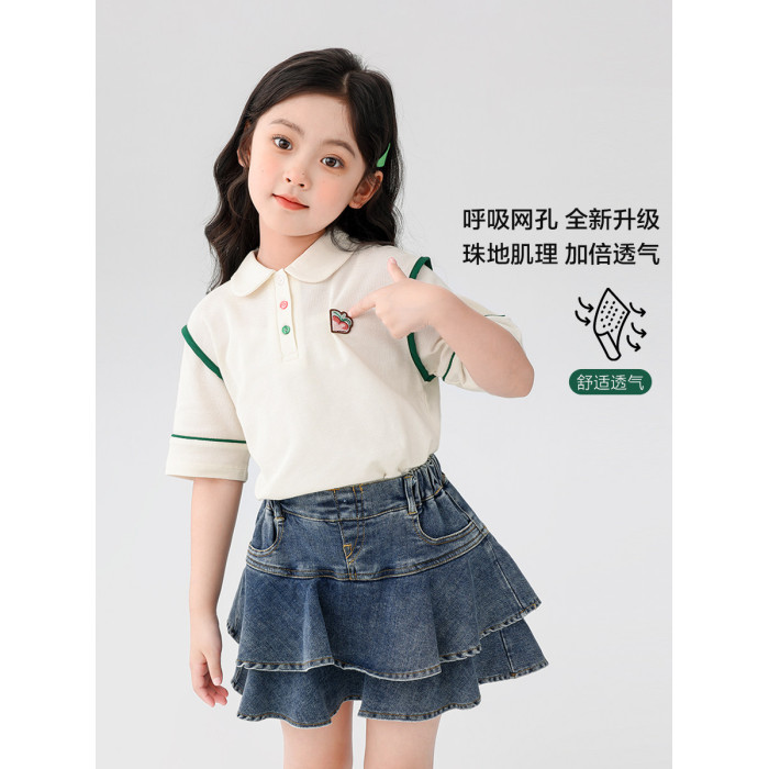 【特惠清倉】左西女童短袖T恤兒童夏季Polo衫女大童繙領上衣純棉