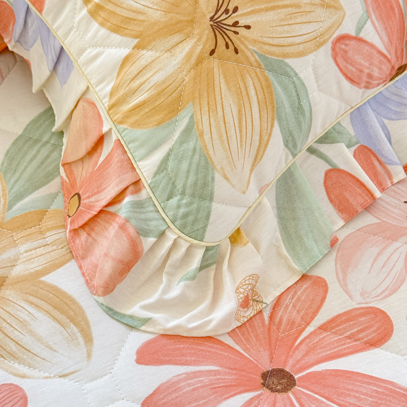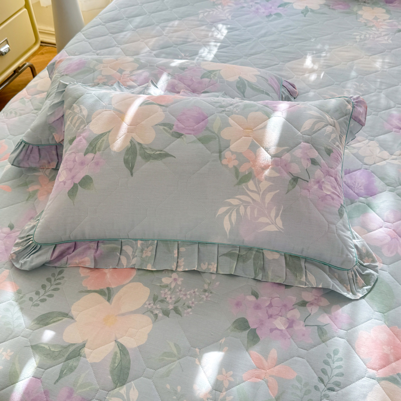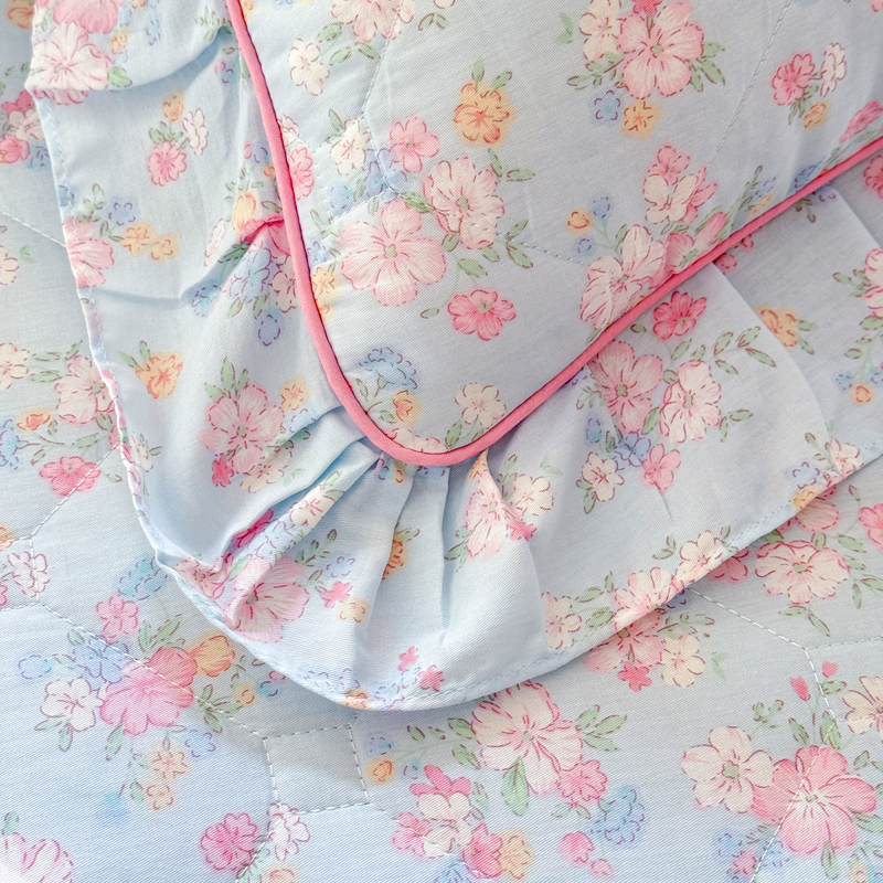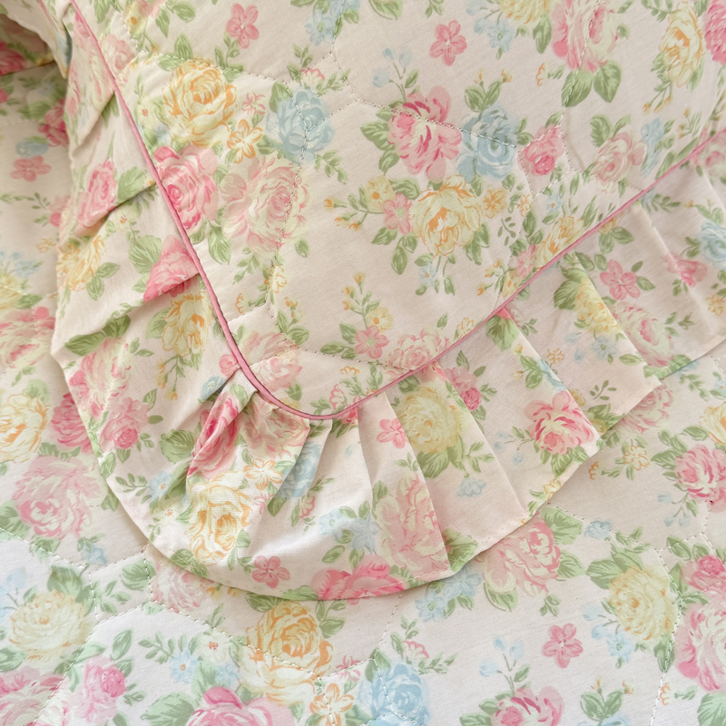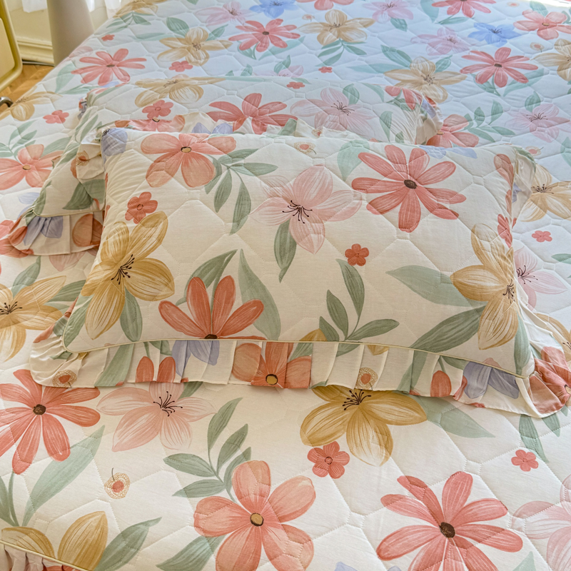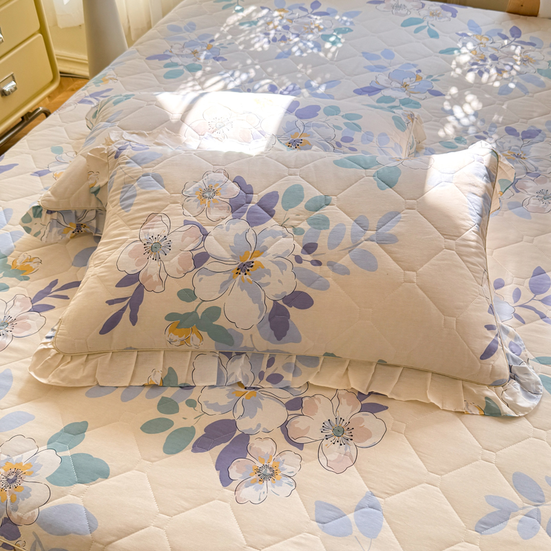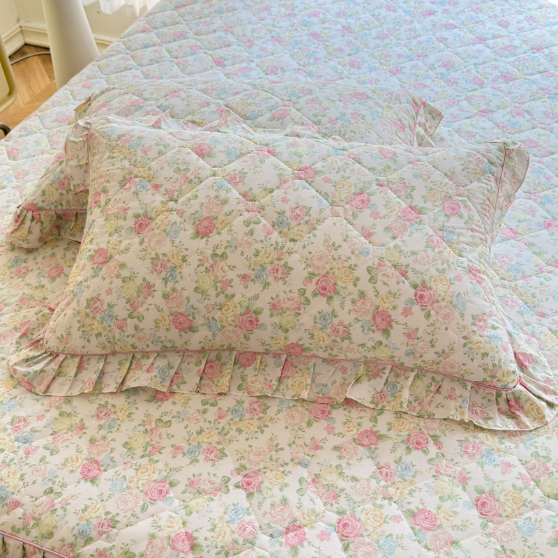 全棉夾棉加厚枕套純棉碎花荷葉花邊枕頭套48x74cm一對2隻裝枕芯罩