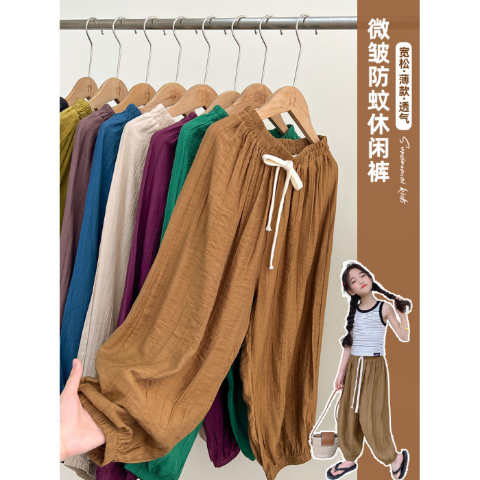 女童褲子兒童夏季防蚊褲2025新款夏天寬鬆休閒褲冰絲夏裝薄款長褲