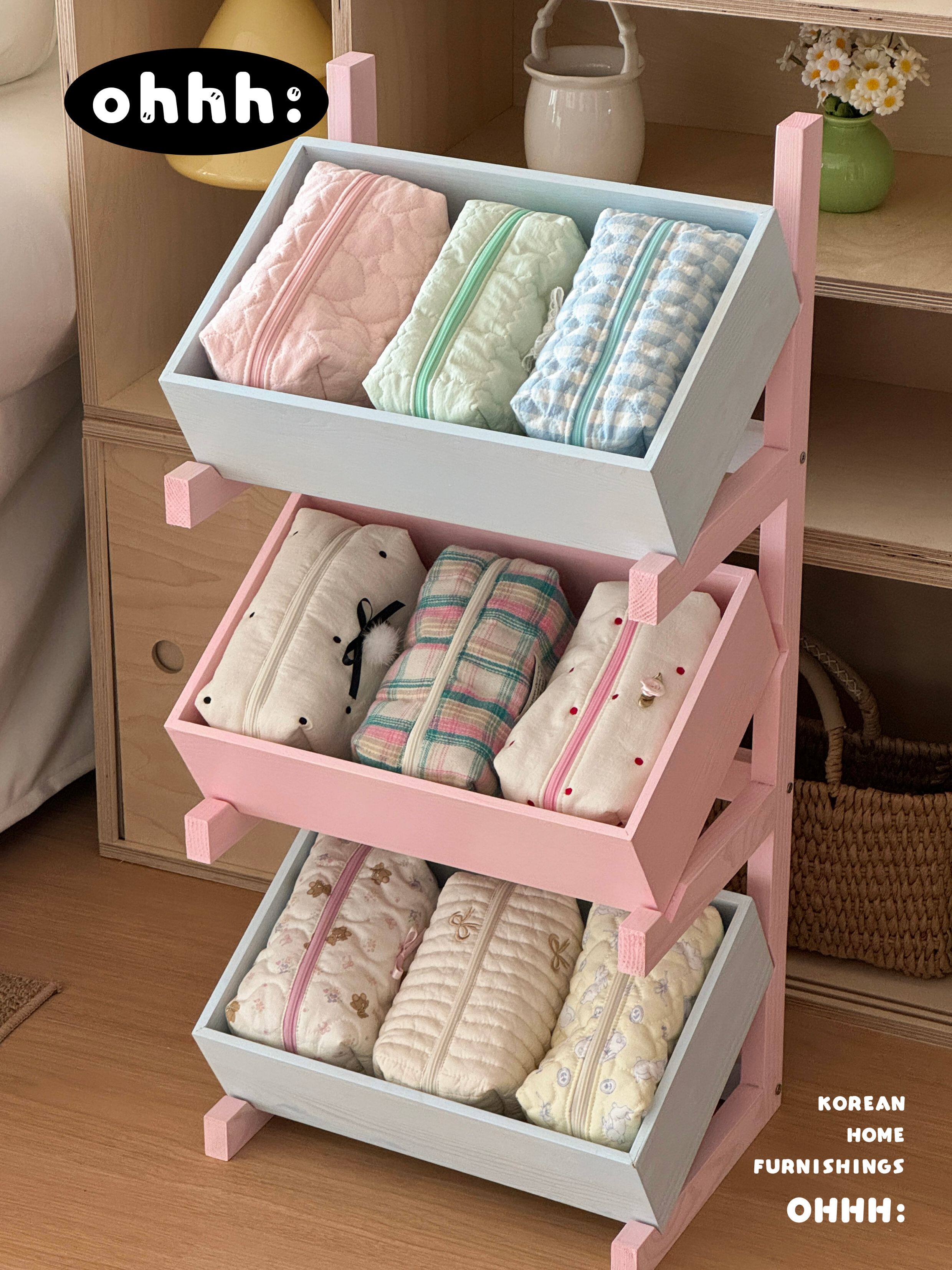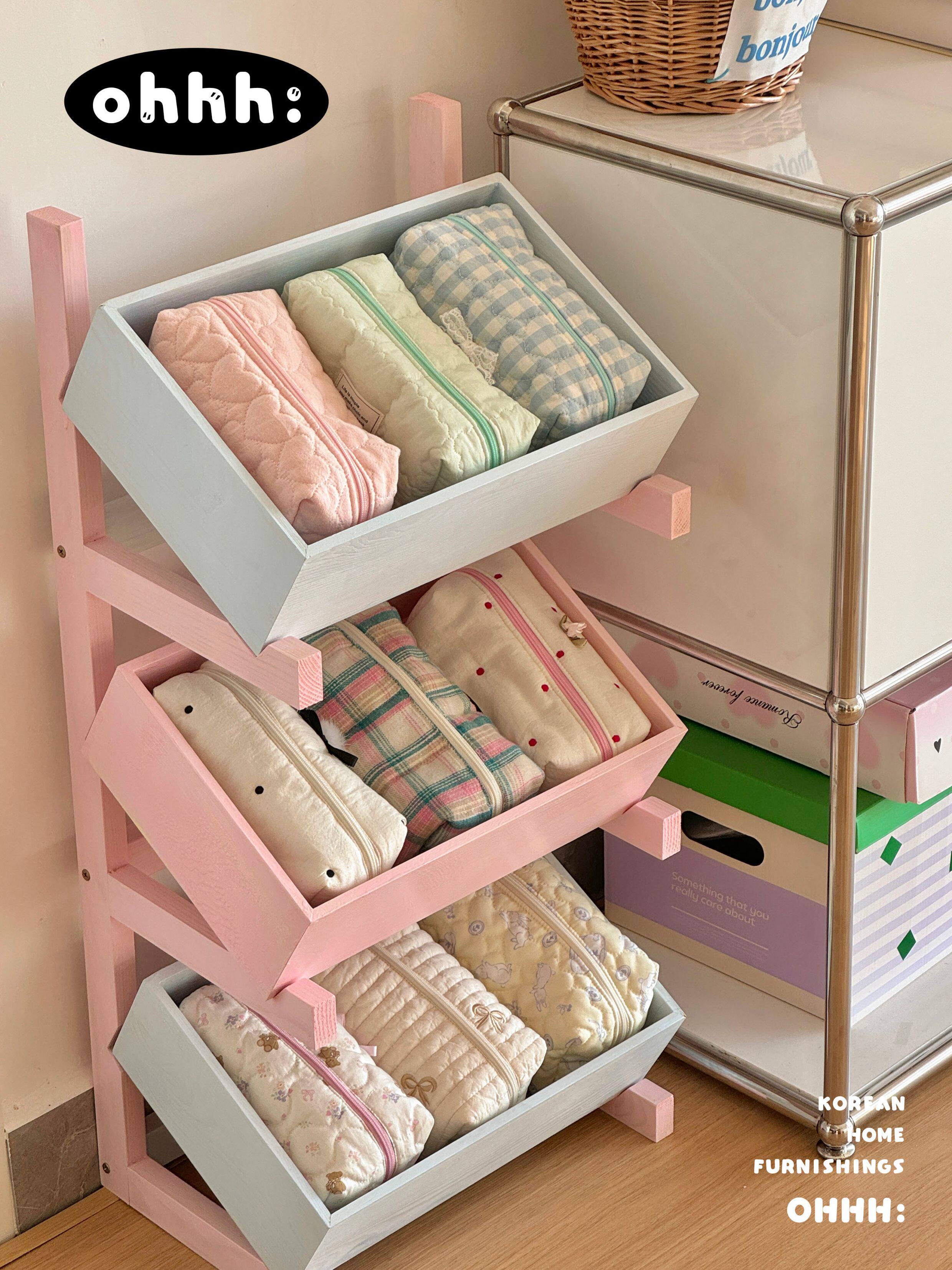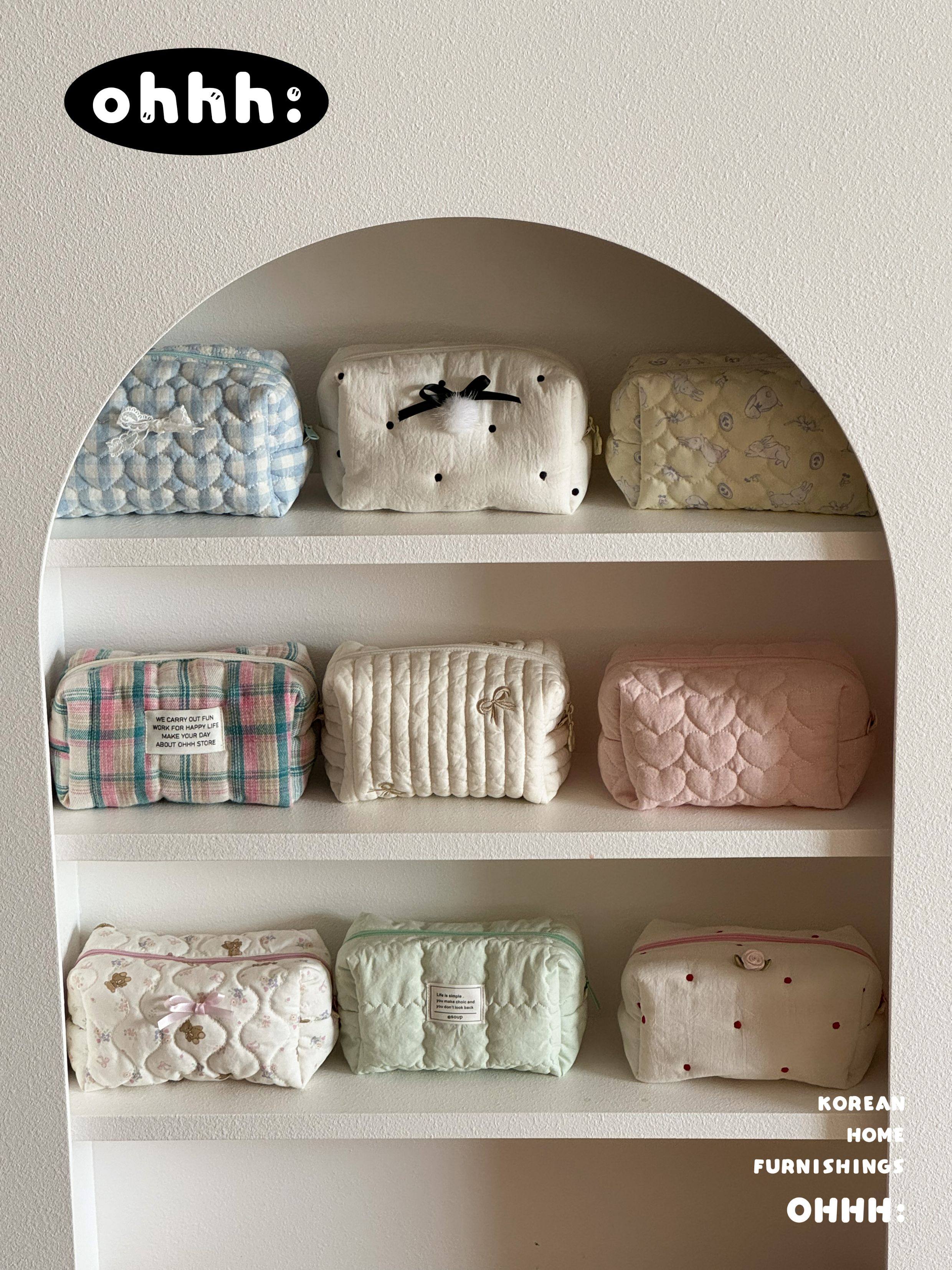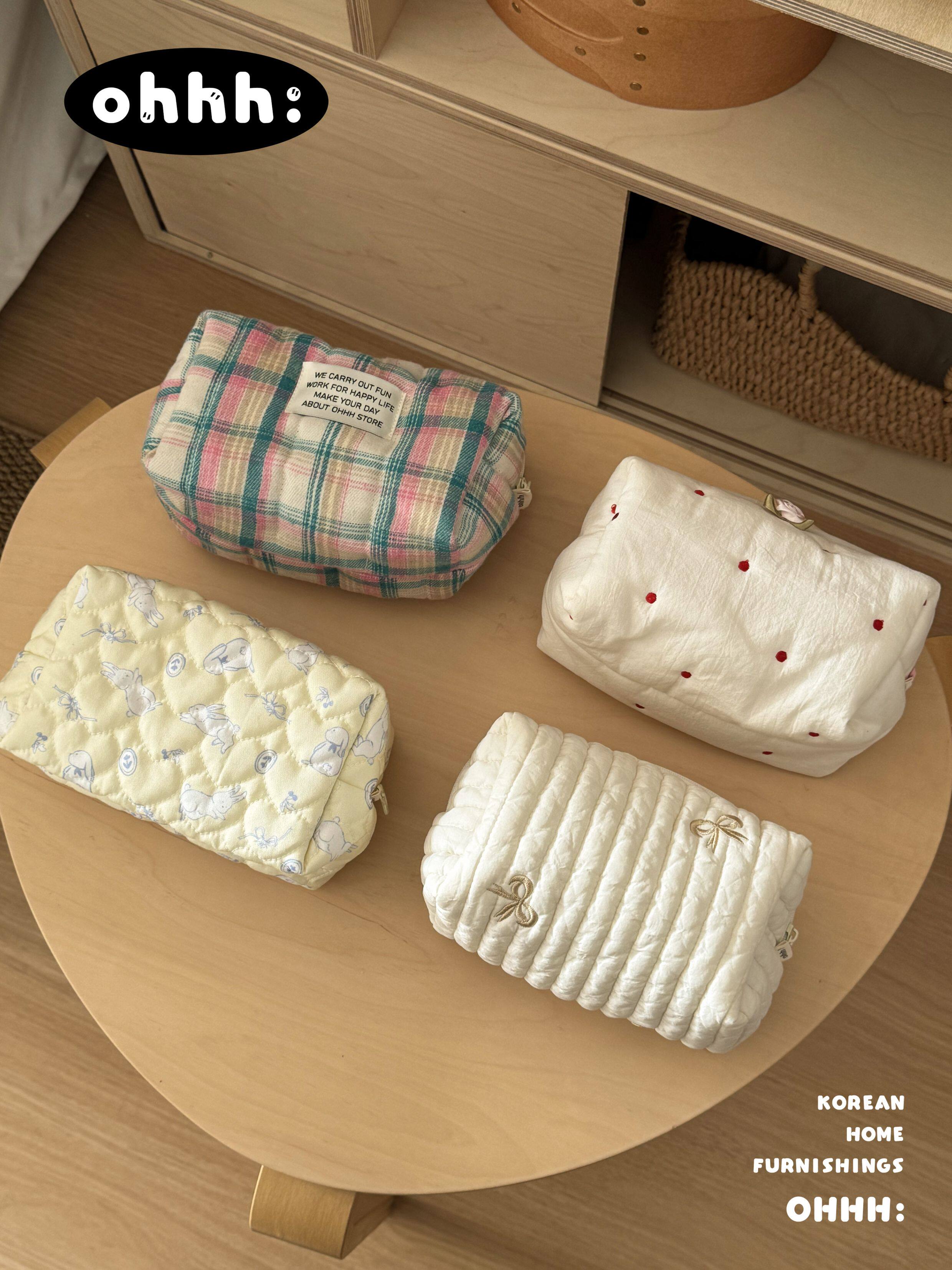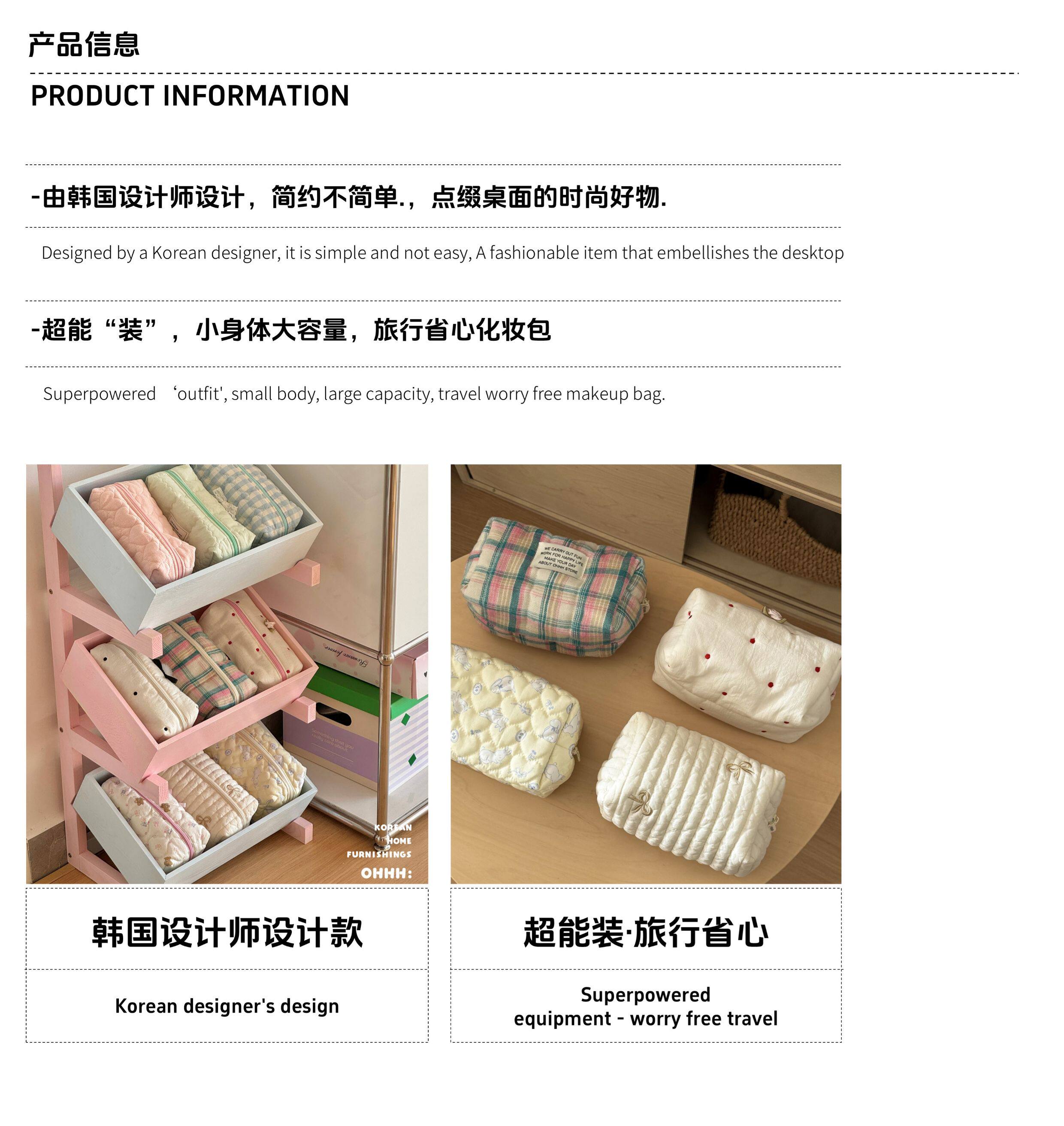 韓國進口格子化妝包旅行小包可愛甜美ins洗漱包鉛筆袋MUIKI