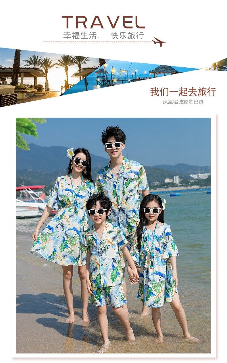 親子裝海邊度假一家三四口襯衫套裝2025新款三亞沙灘母女連衣裙夏